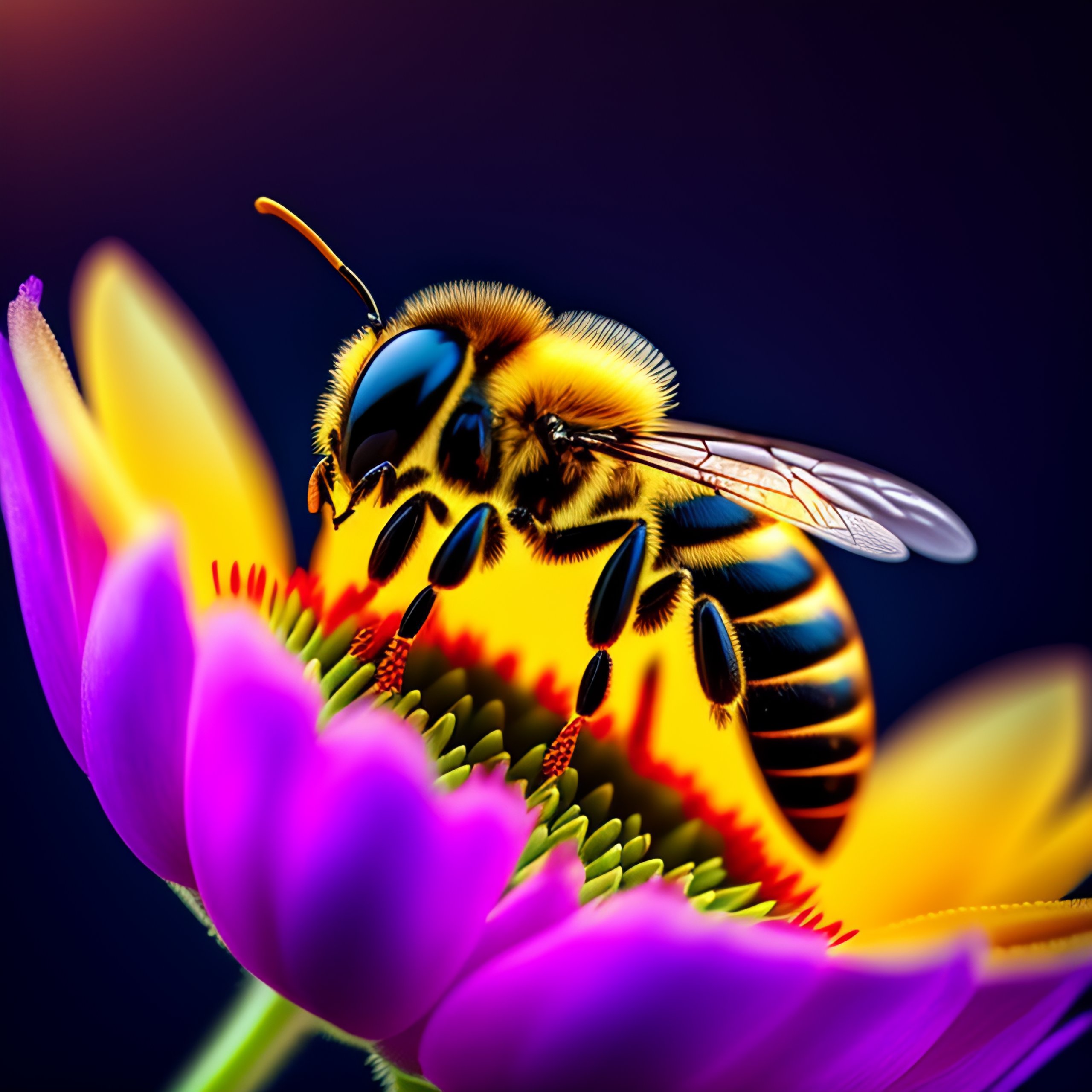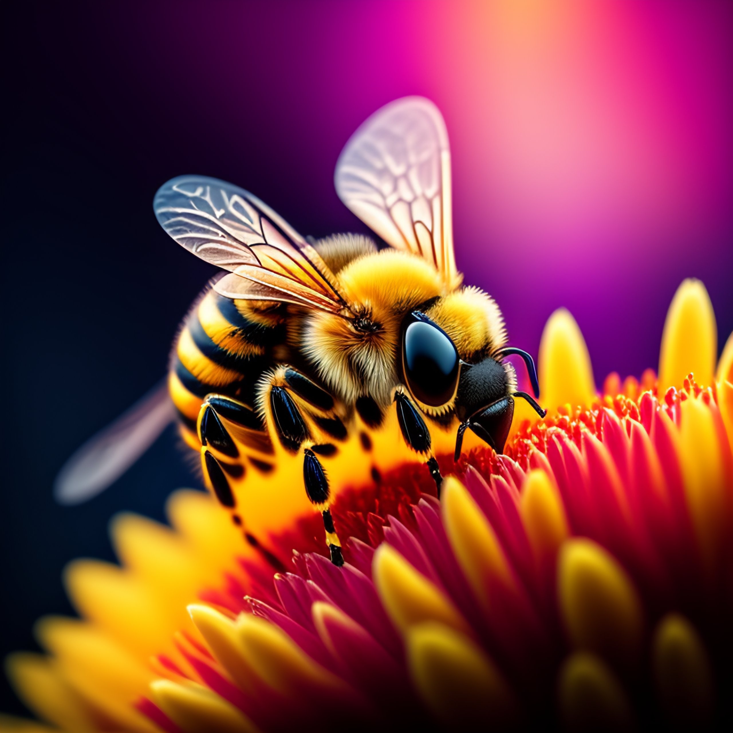 A bee on a flower, 4k resolution, soft smooth lighting, soft pastel colors, elegant, atmospheric, realistic, cinematic lighting, light atmosphere