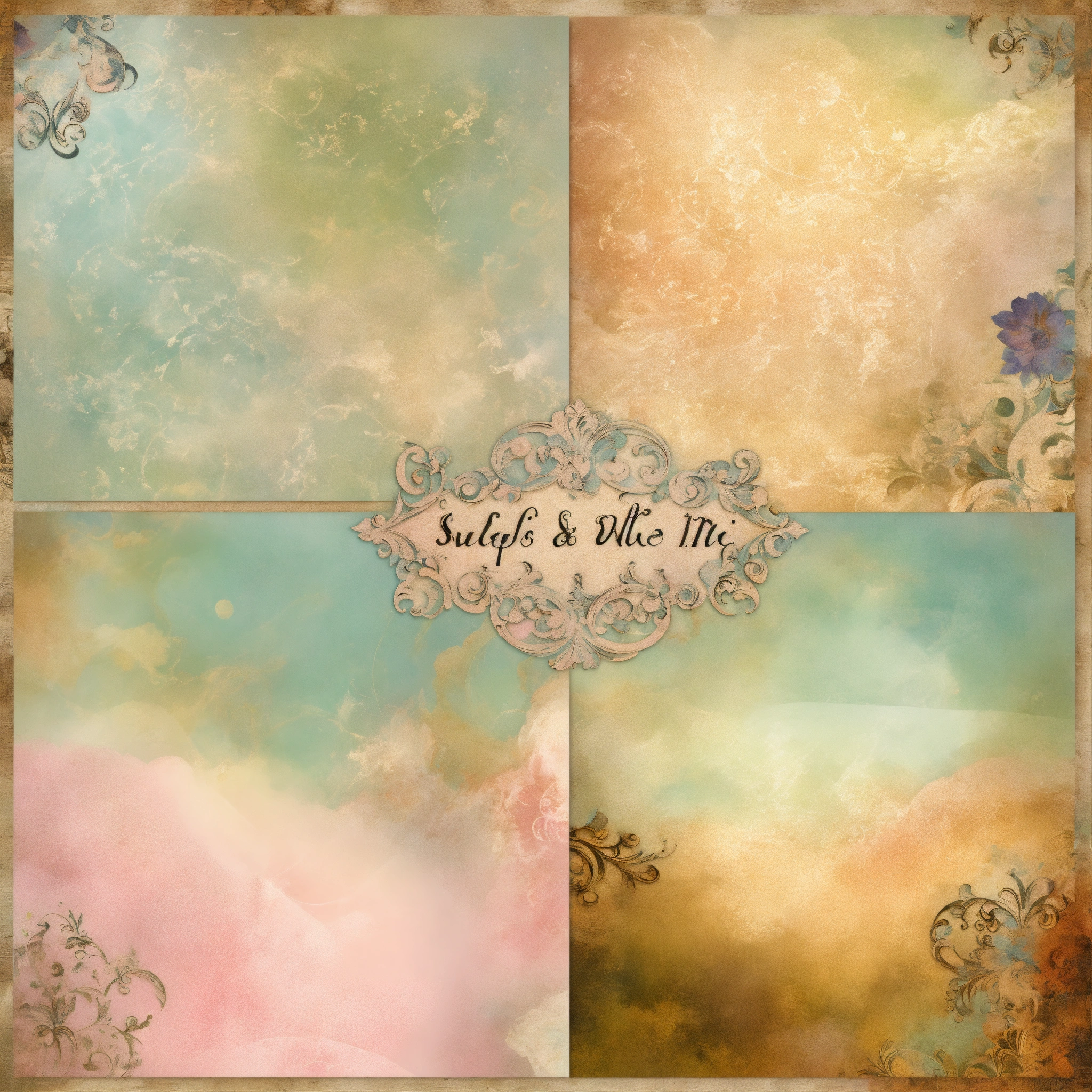 Shabby chic dreamy mist pastel junk journals vintage seamless abstract patterns, fullpage full page, ephemera digital paper, textured digital paper, scrapbook, decoupage, papercraft, antique texture swirling magical fairytale abstract art style