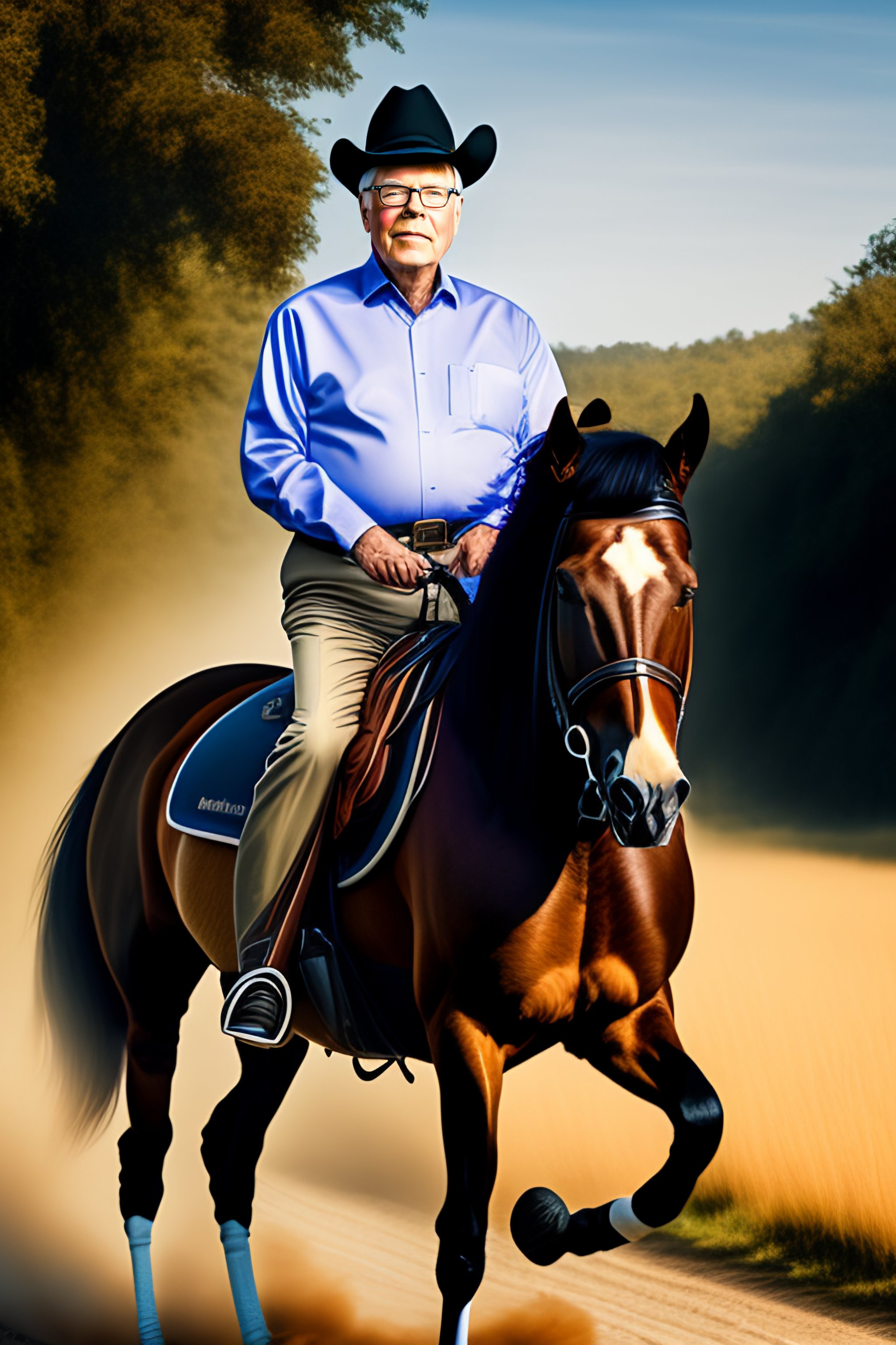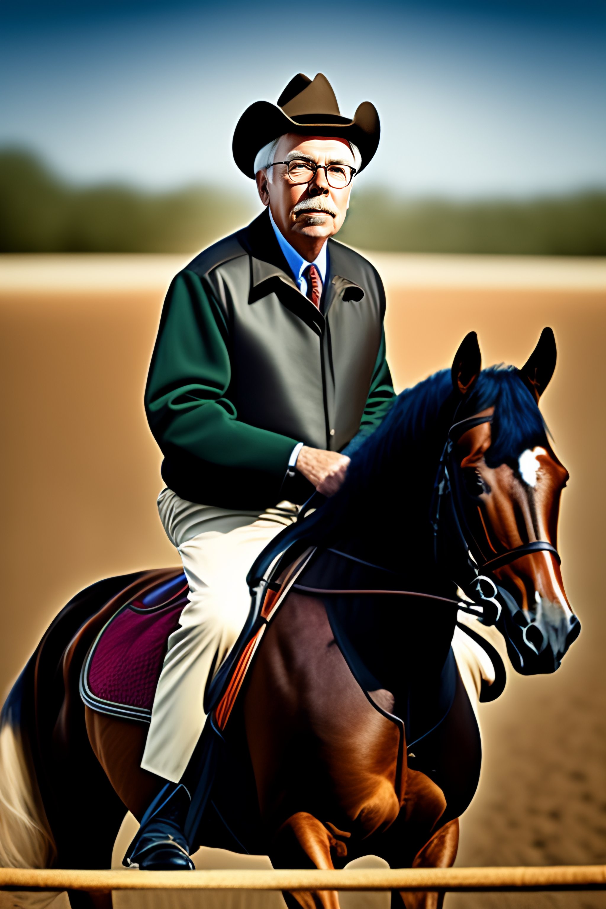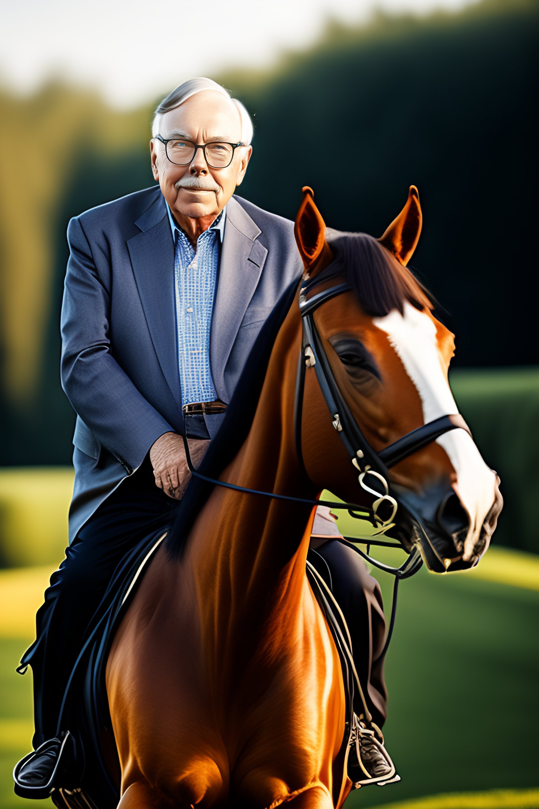 Portrait of charlie munger riding a horse