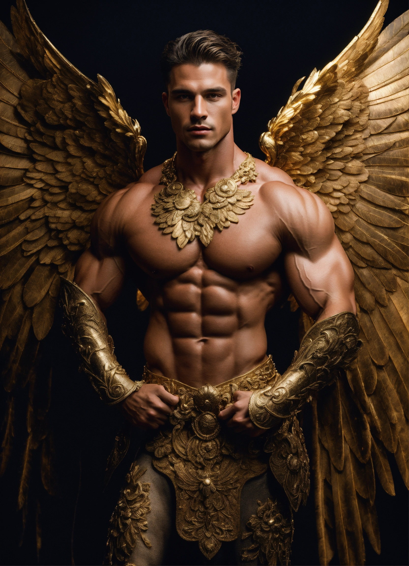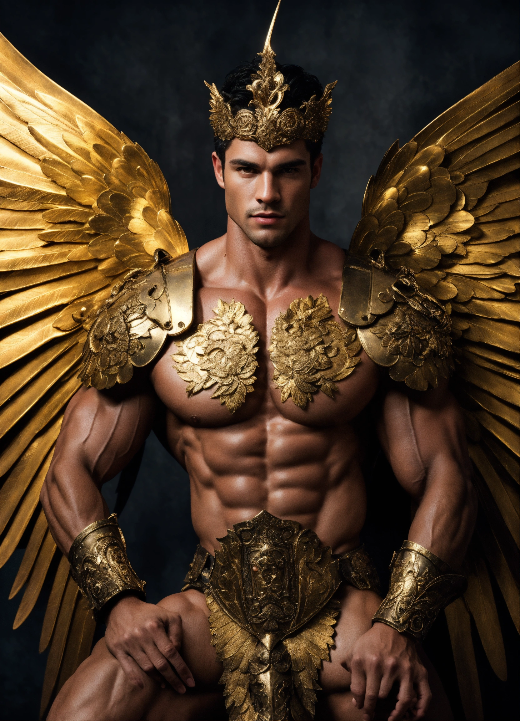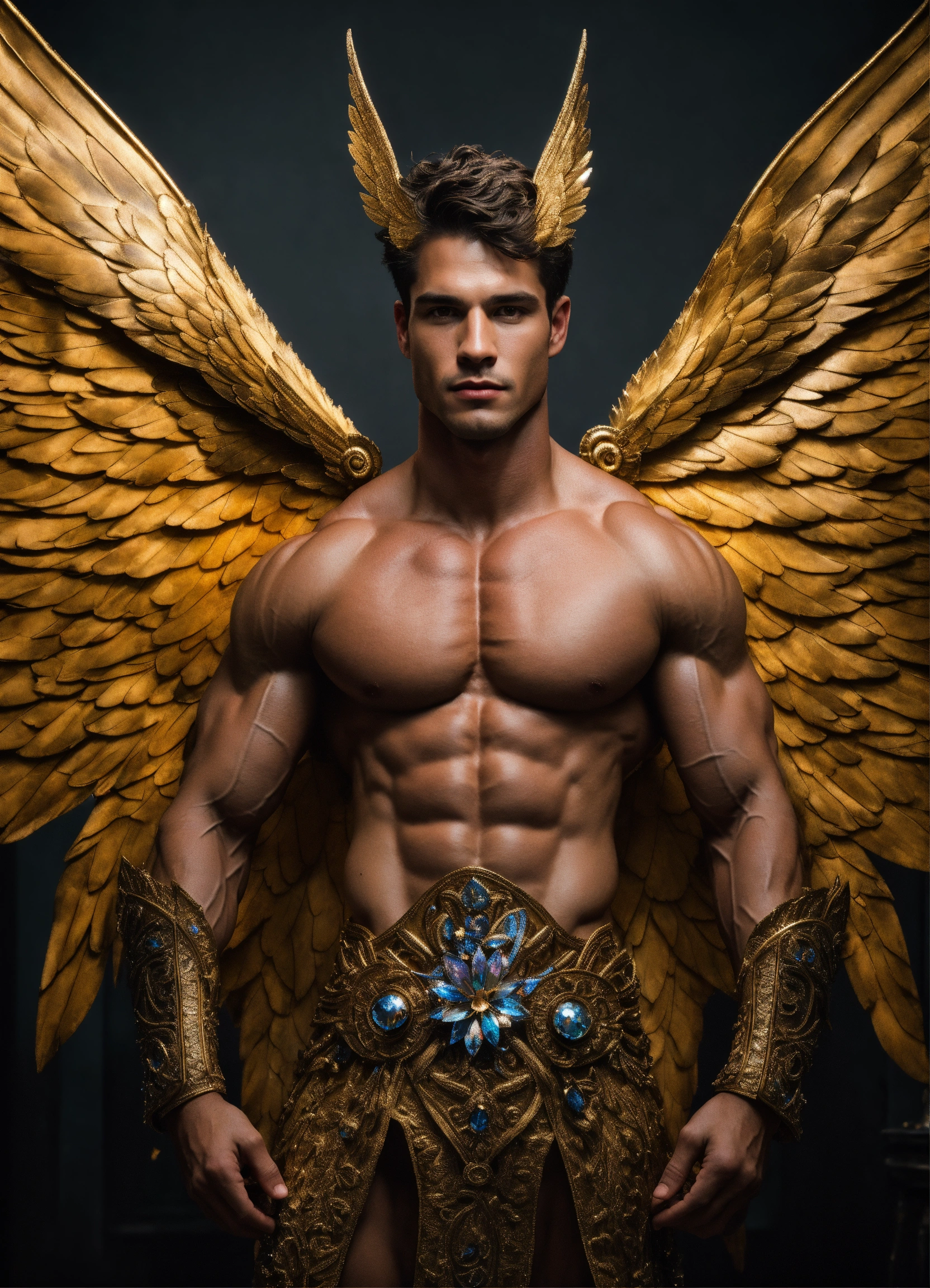 Portrait of a stunningly beautiful male fairy in symmetrical beautiful armor light, and beautiful wings, mister olympia anatomy, broad muscle legs, big delts, ripped, intricate, elegant, depth of field, zeiss lens, detailed, symmetrical, centered, fashion photoshoot, by annie leibovitz and steve mccurry, david lazar, jimmy nelsson, breathtaking, 8 k resolution, extremely detailed, beautiful, establishing shot, artistic, hyperrealistic, beautiful face, octane render, full shot