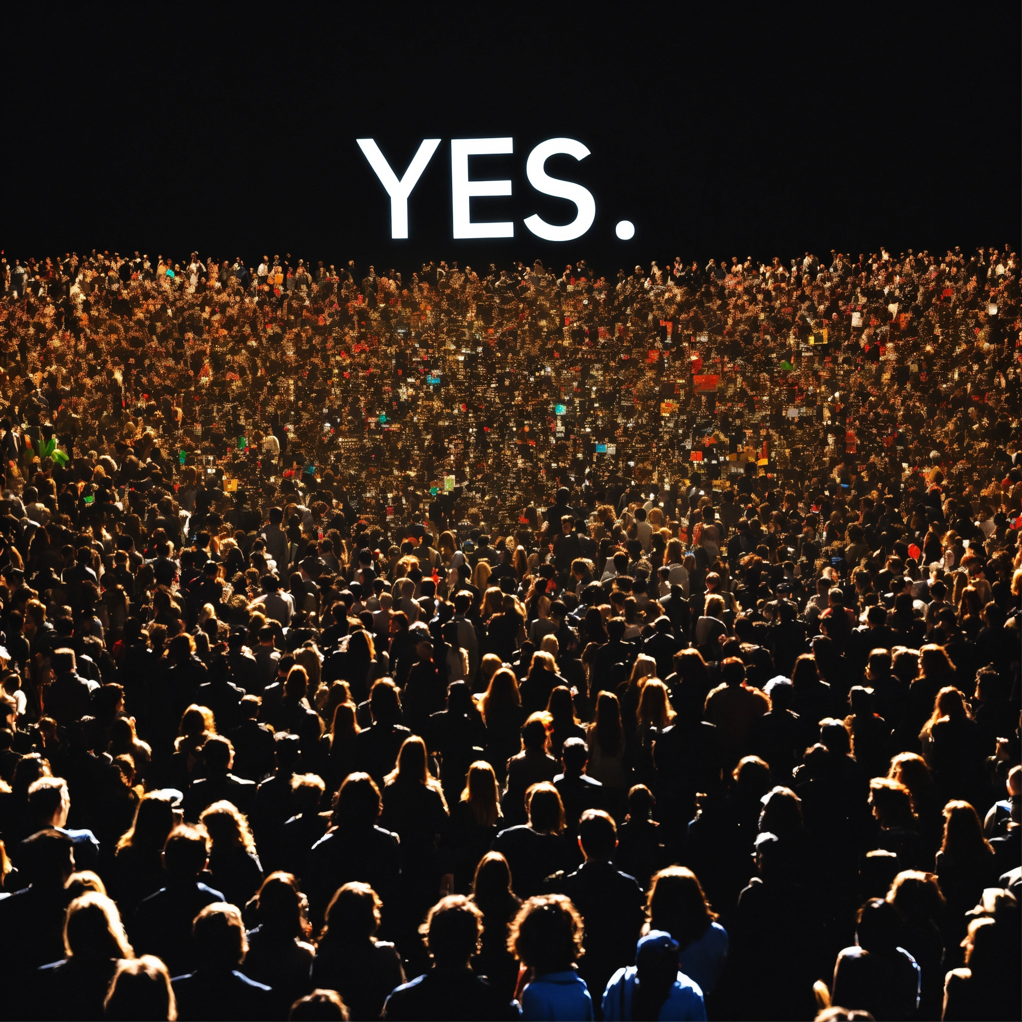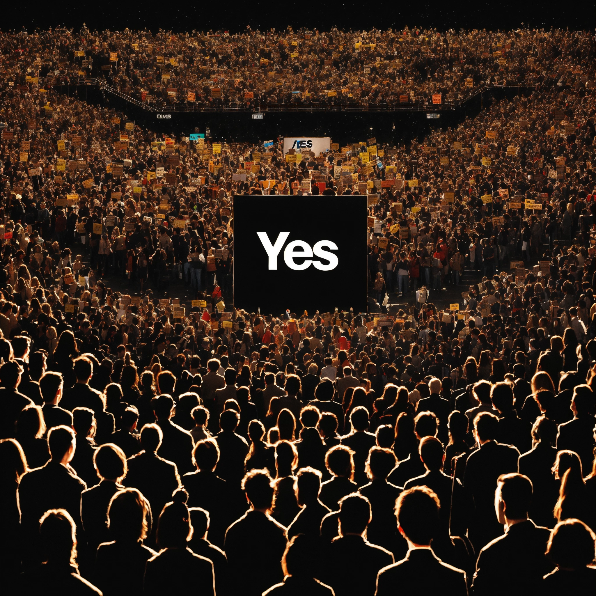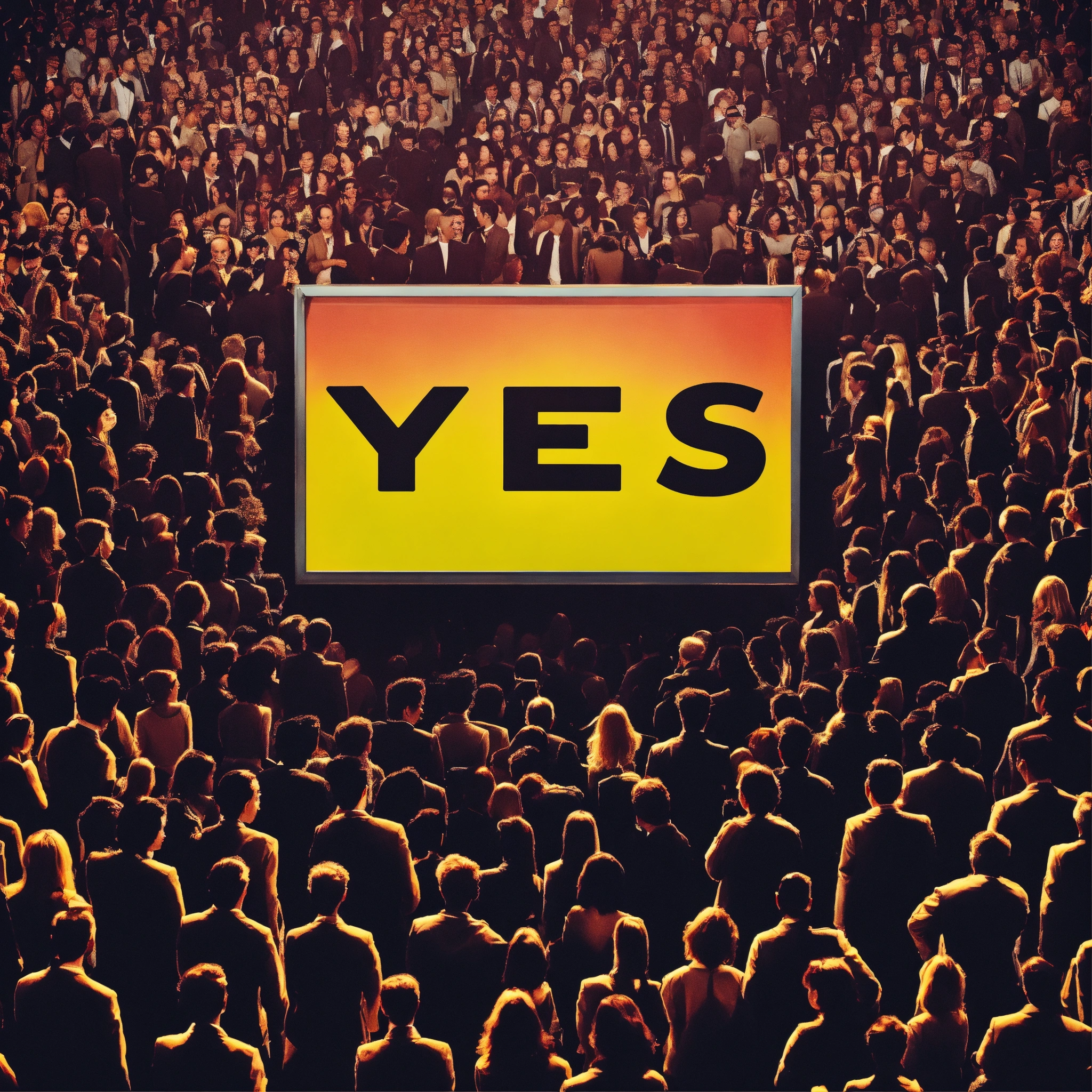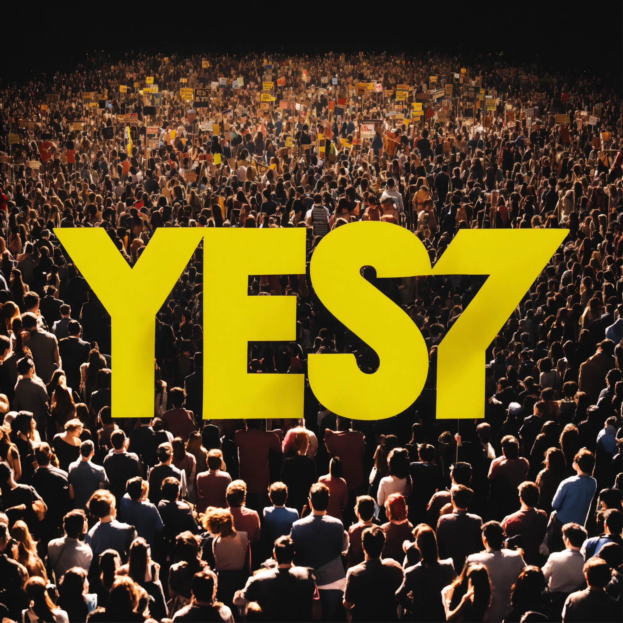 "yes" sign against the backdrop of a crowd of people