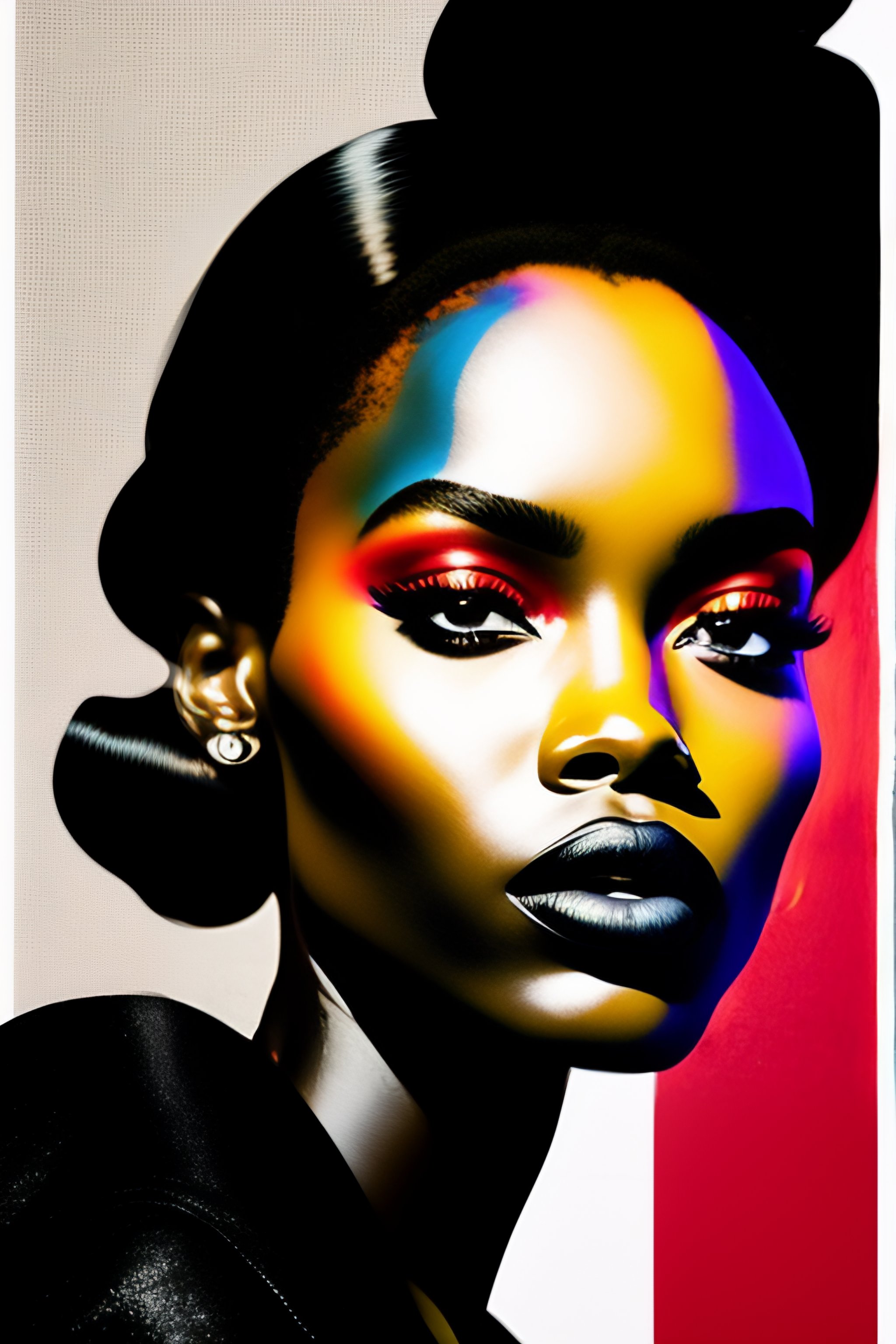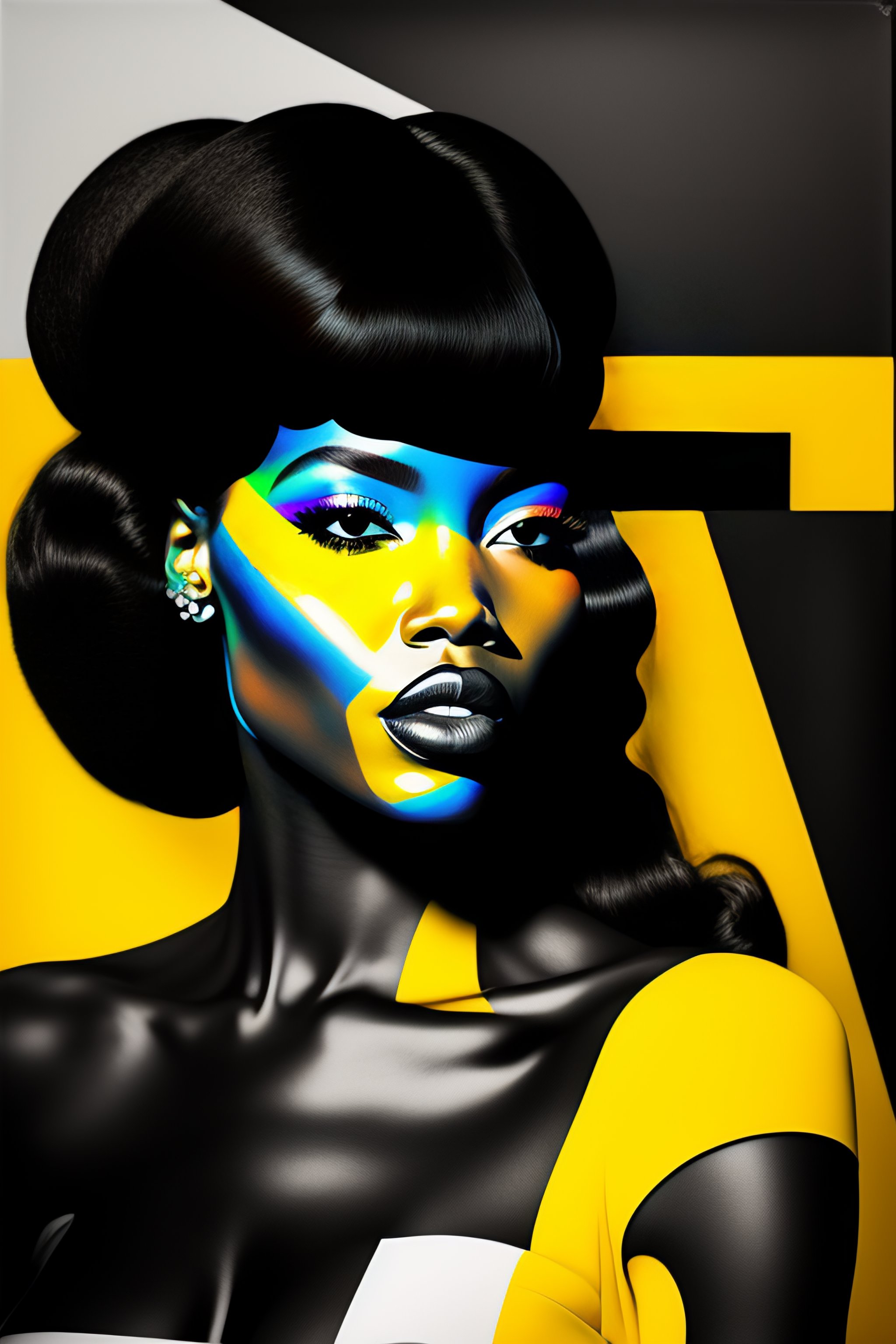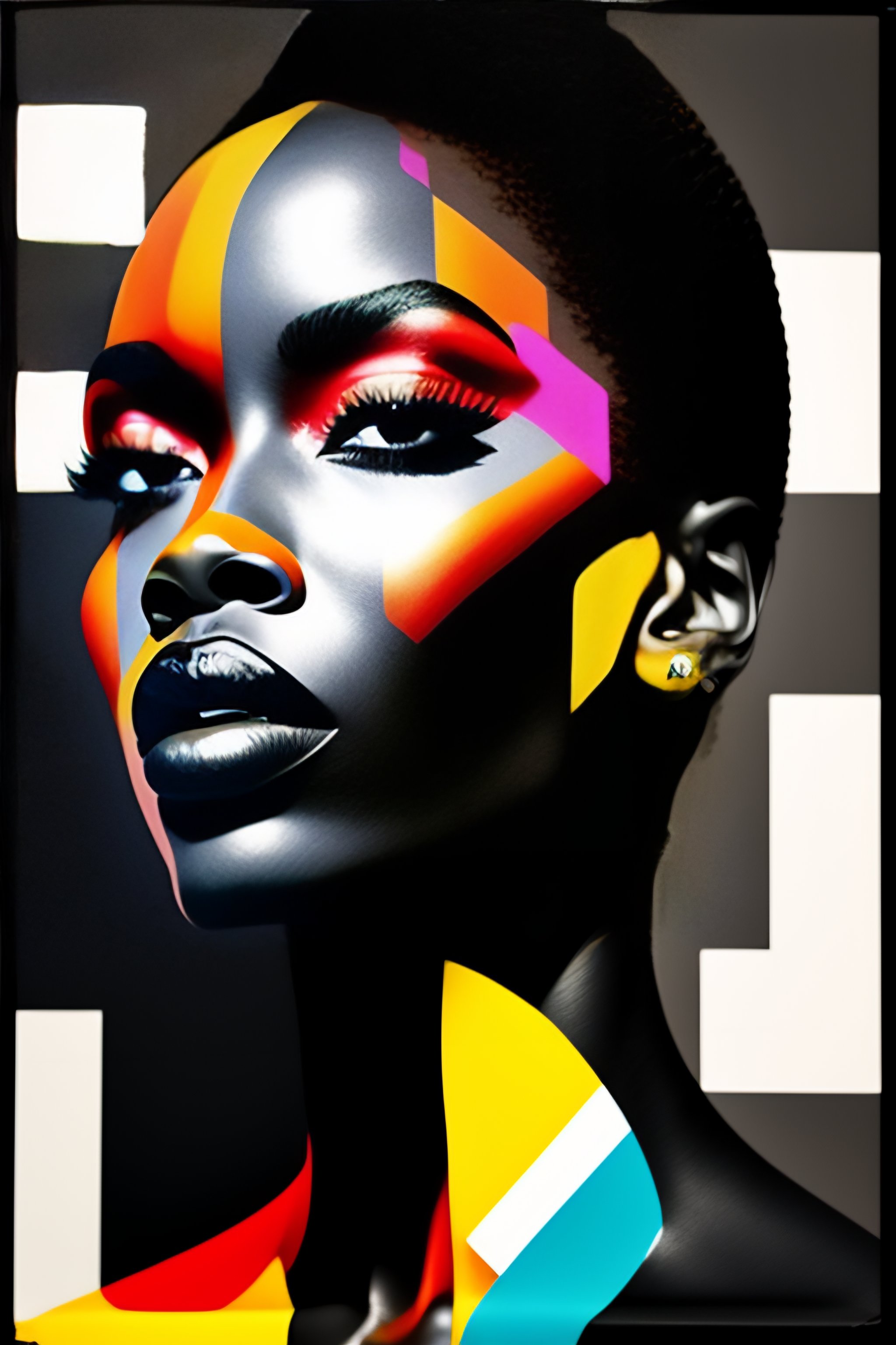 Pop art, hyper-black model in the streets of new-york, collage, goldblocks, brutalism, black and white
