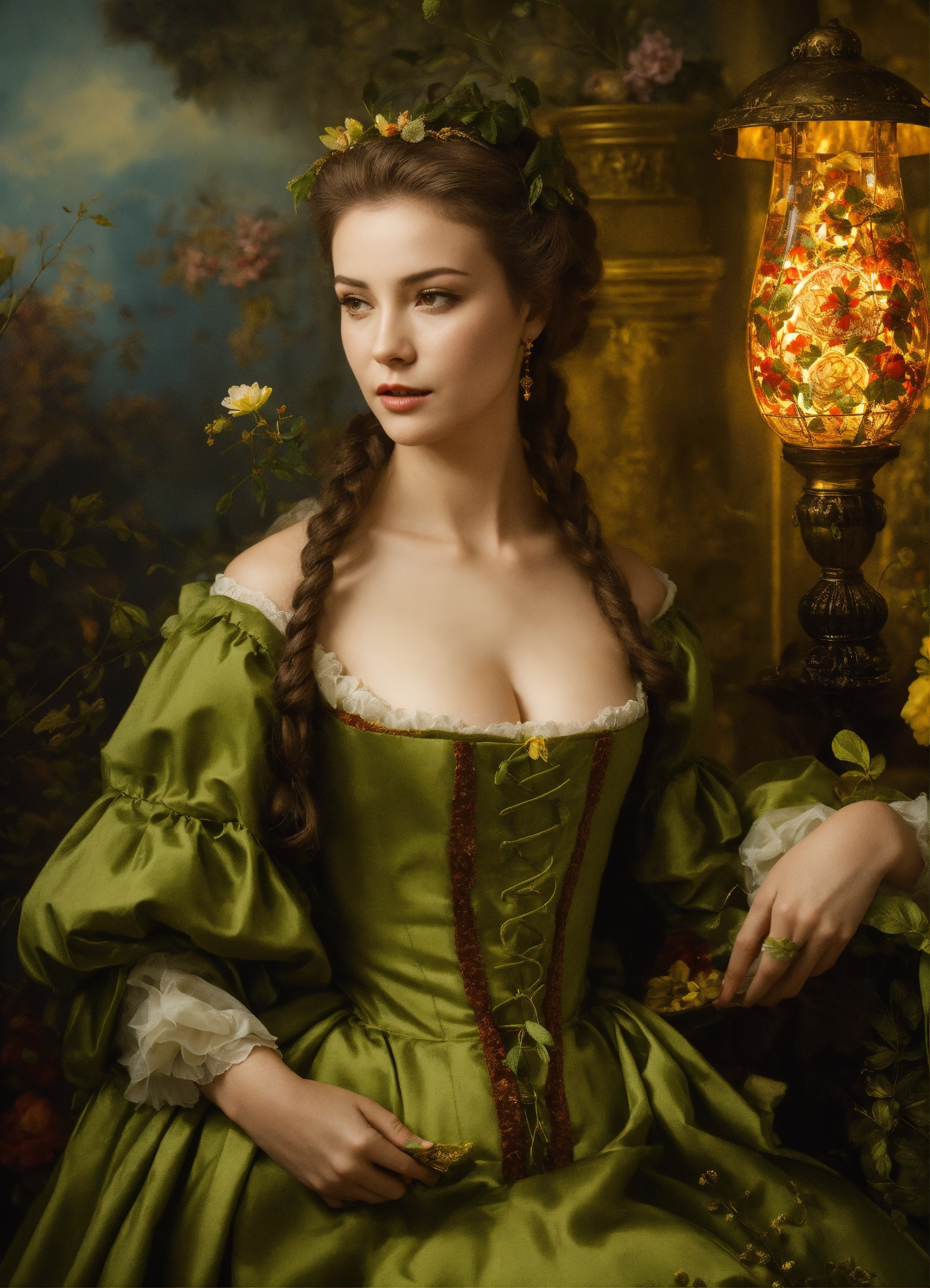 Лицо женщины с распущенными волосами на фоне океана на котором сверкают молнии