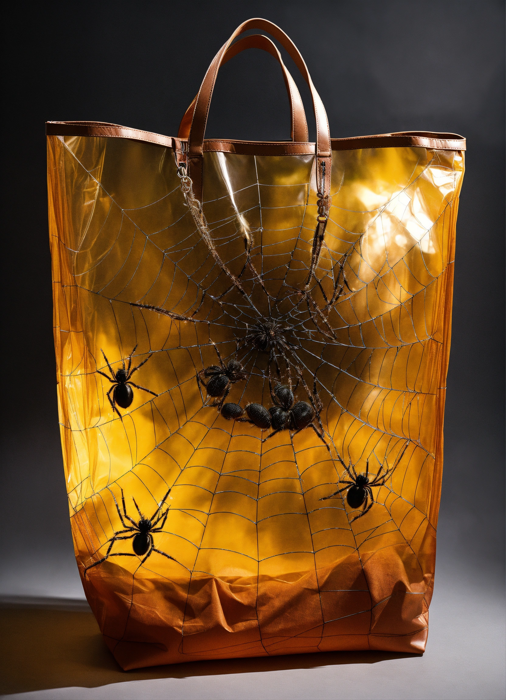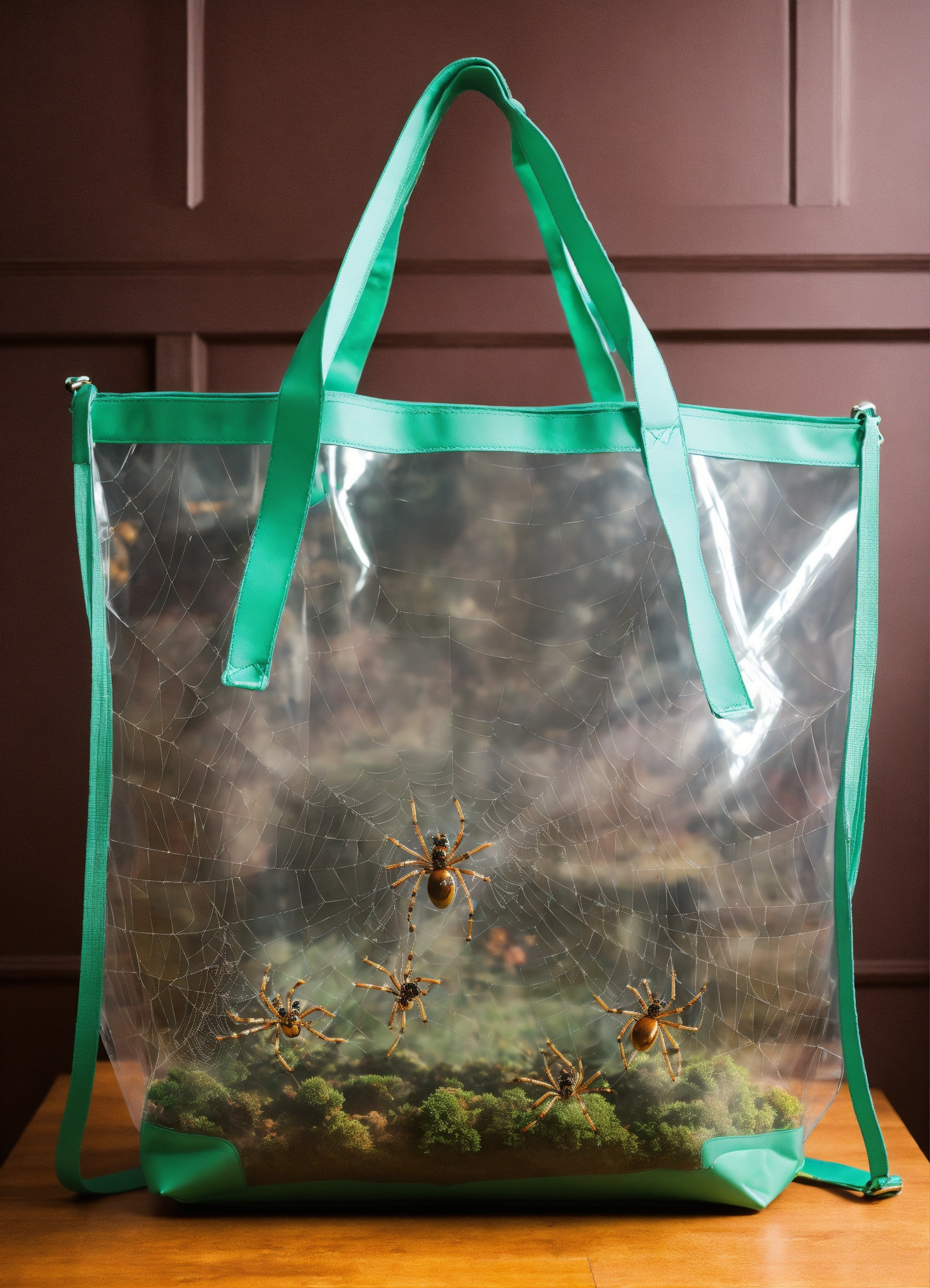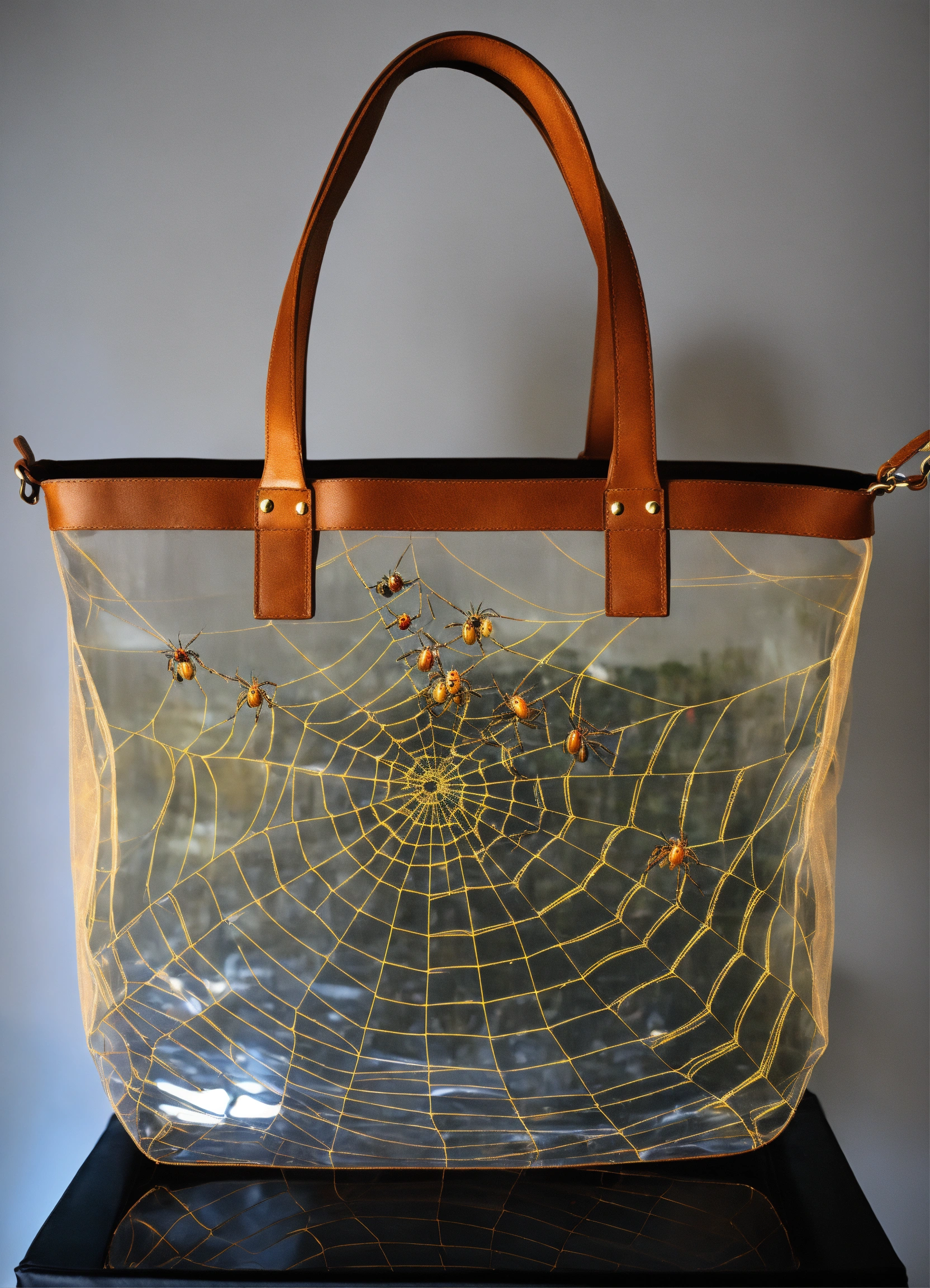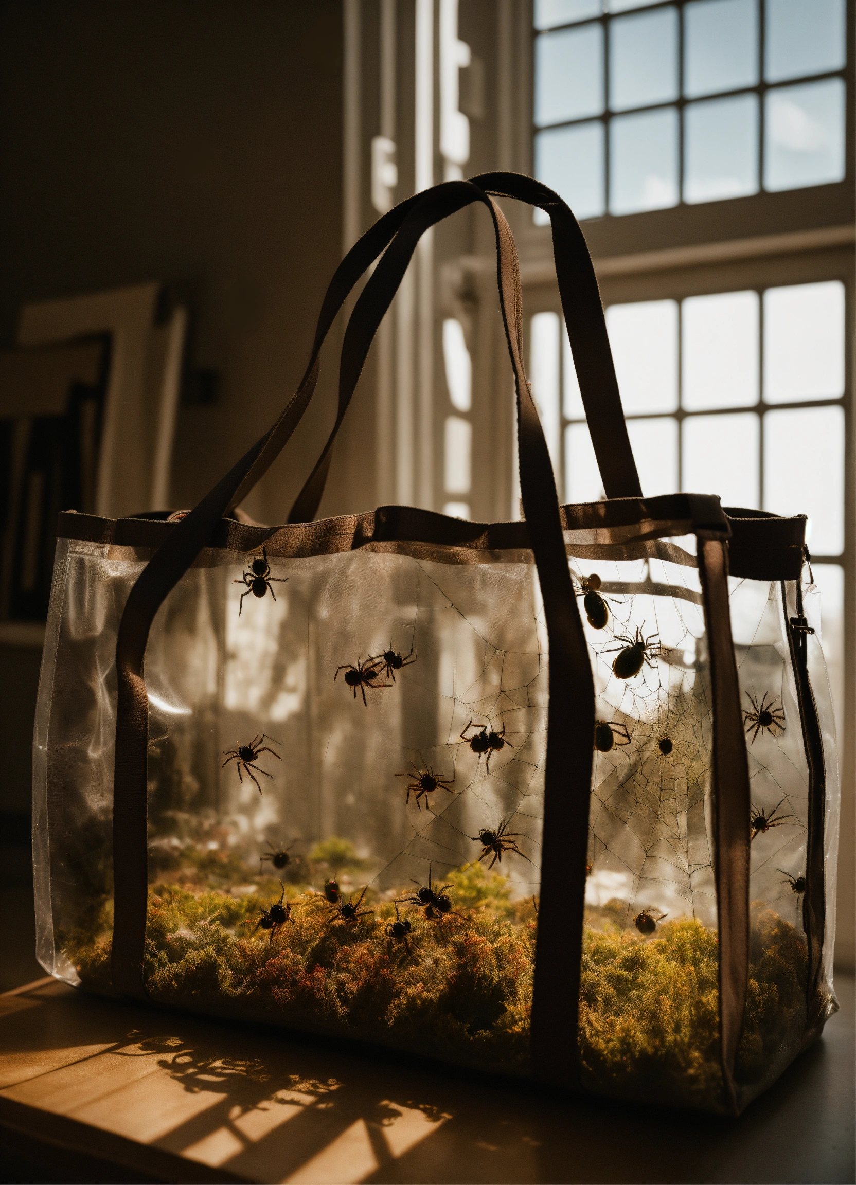 Transparent weekender tote bag full of spiders