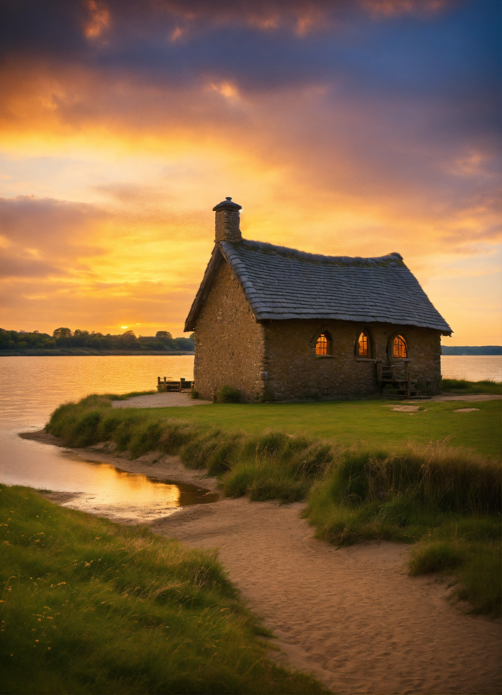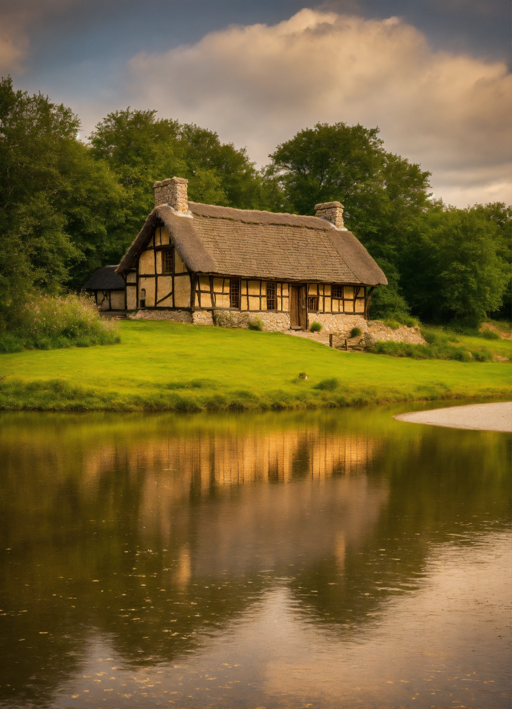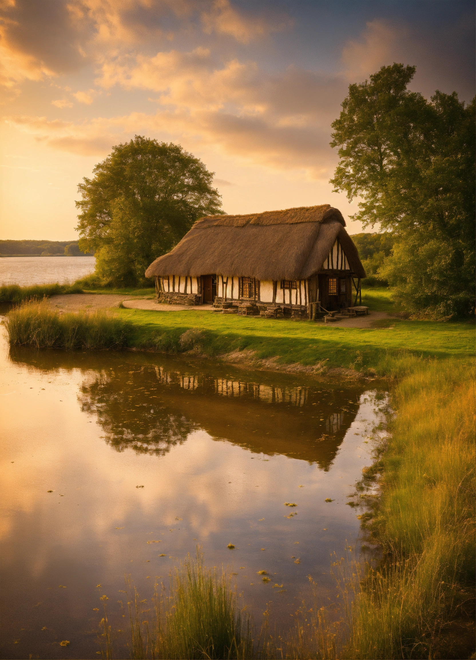 Anglo saxon house wide lake sandy shore