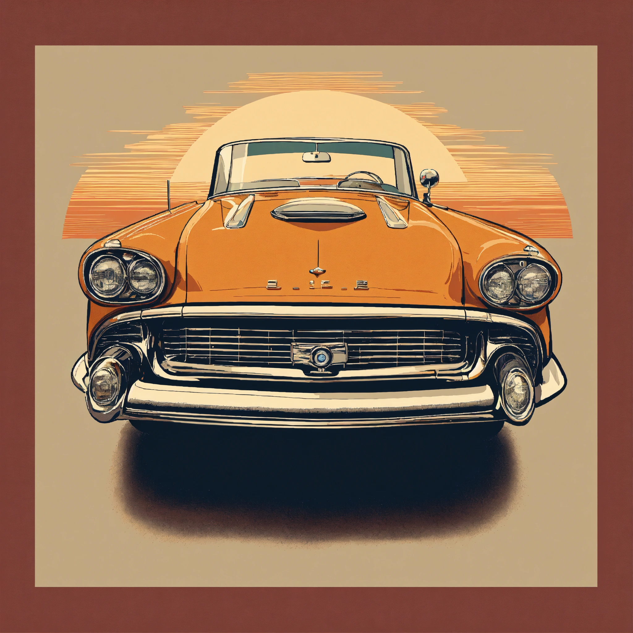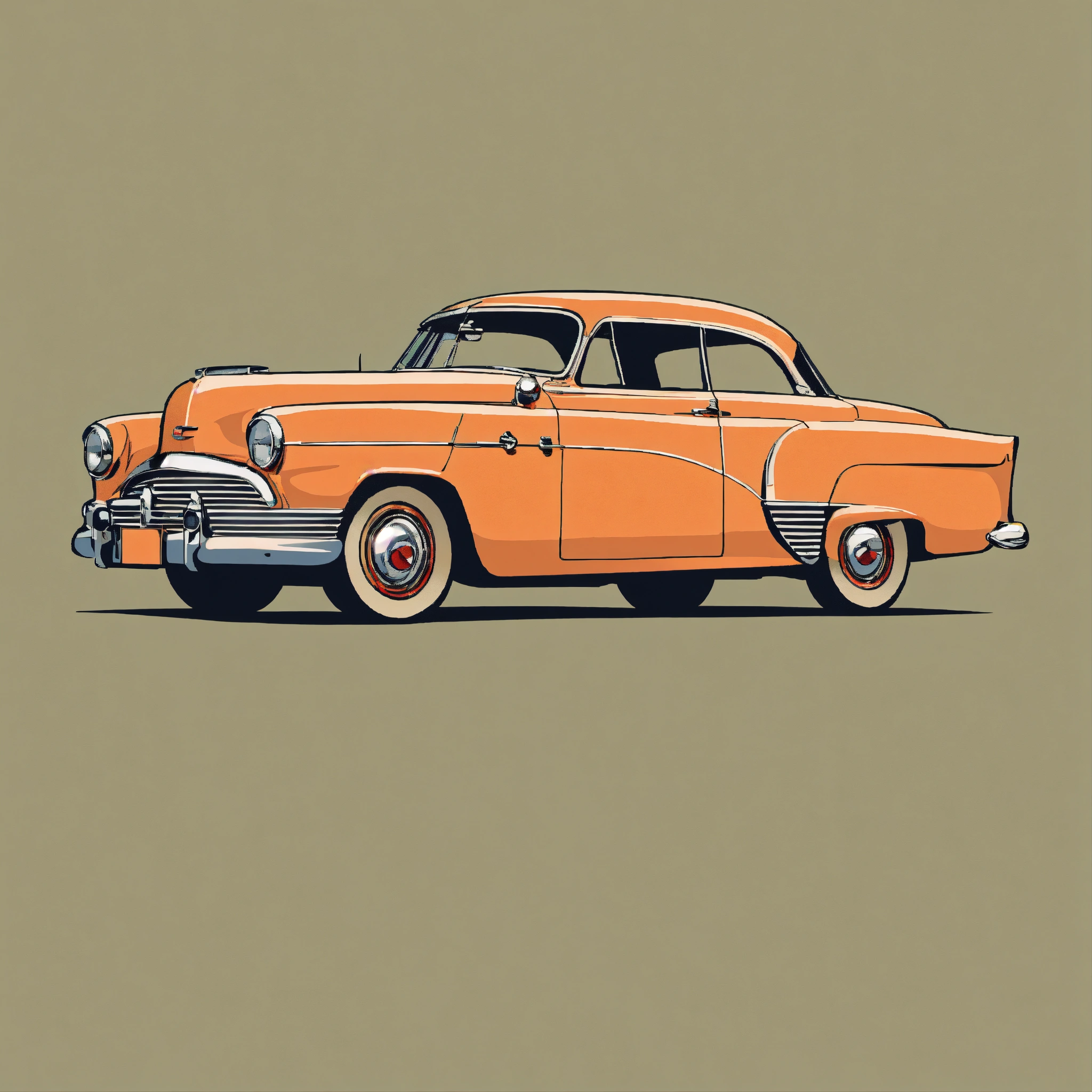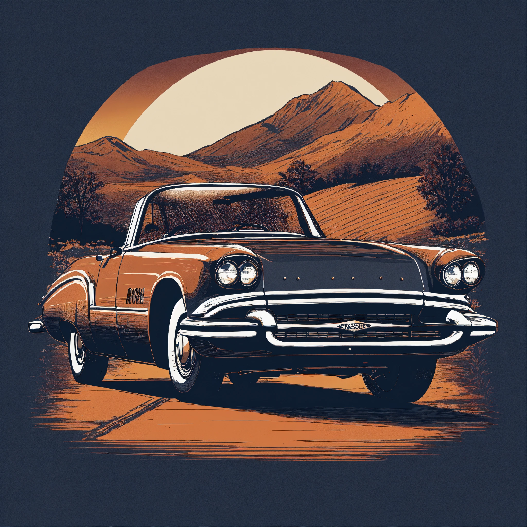 T-shirt vector illustration, centered design of a vintage car, rendered in a minimalist yet detailed style. every curve and shine on the vehicle showcases the elegance and style of a bygone era, capturing a sense of nostalgia and the open road's allure. simplistic, centered vector illustration, solid background color.