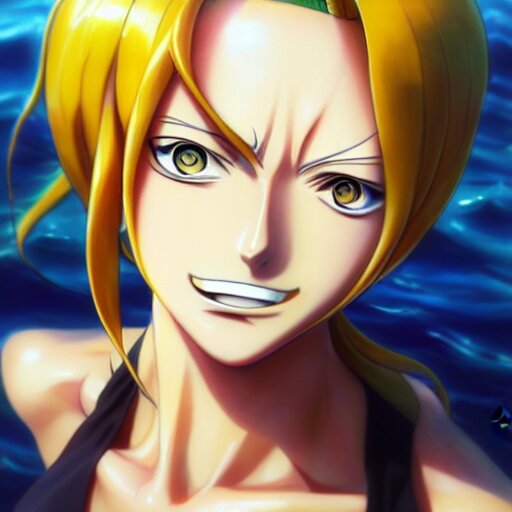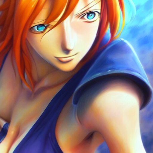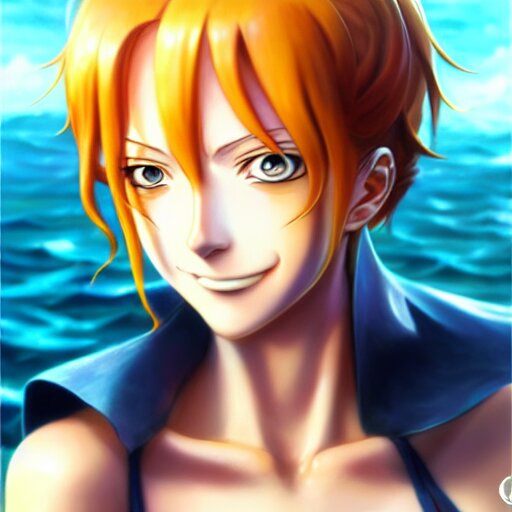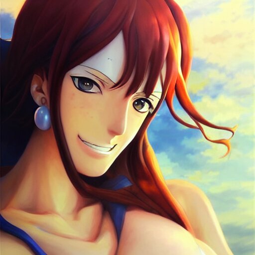Nami from one piece, beautiful body, perfect face, sharp focus, highly detailed, realistic shaded, realistic collaborative painting by cushart krenz, makoto shinkai, artgerm ilya kuvshinov rossdraws