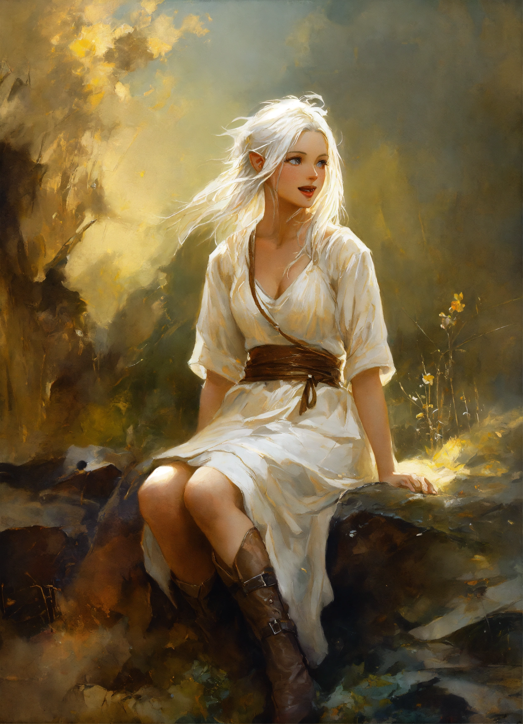 White background, "full body" a young elf girl called willow, with white hair and sky-colored eyes, wearing a off white winter dress with fur around and brown knee length boots, relief, laughing oil painting, thin smooth lines, long strokes, light delicate shades, clear contours, + 36.5 mm f0 cinematic quality, + style jeremy mann, peter elson, alex maleev, ryohei hase, rafael sanzio, pino daeni, charlie bowater, albert joseph peno, ray caesar, h.r. giger, gustave doré, stephen gammell, a masterpiece of artistic multi-layered sheets, techniques used sfumato, atmospheric perspective, acrylic painting, trends on pixiv fanbox, palette knife and brush strokes, trending on artstation, sharp focus, studio photo, intricate details, highly detailed, by greg rutkowski