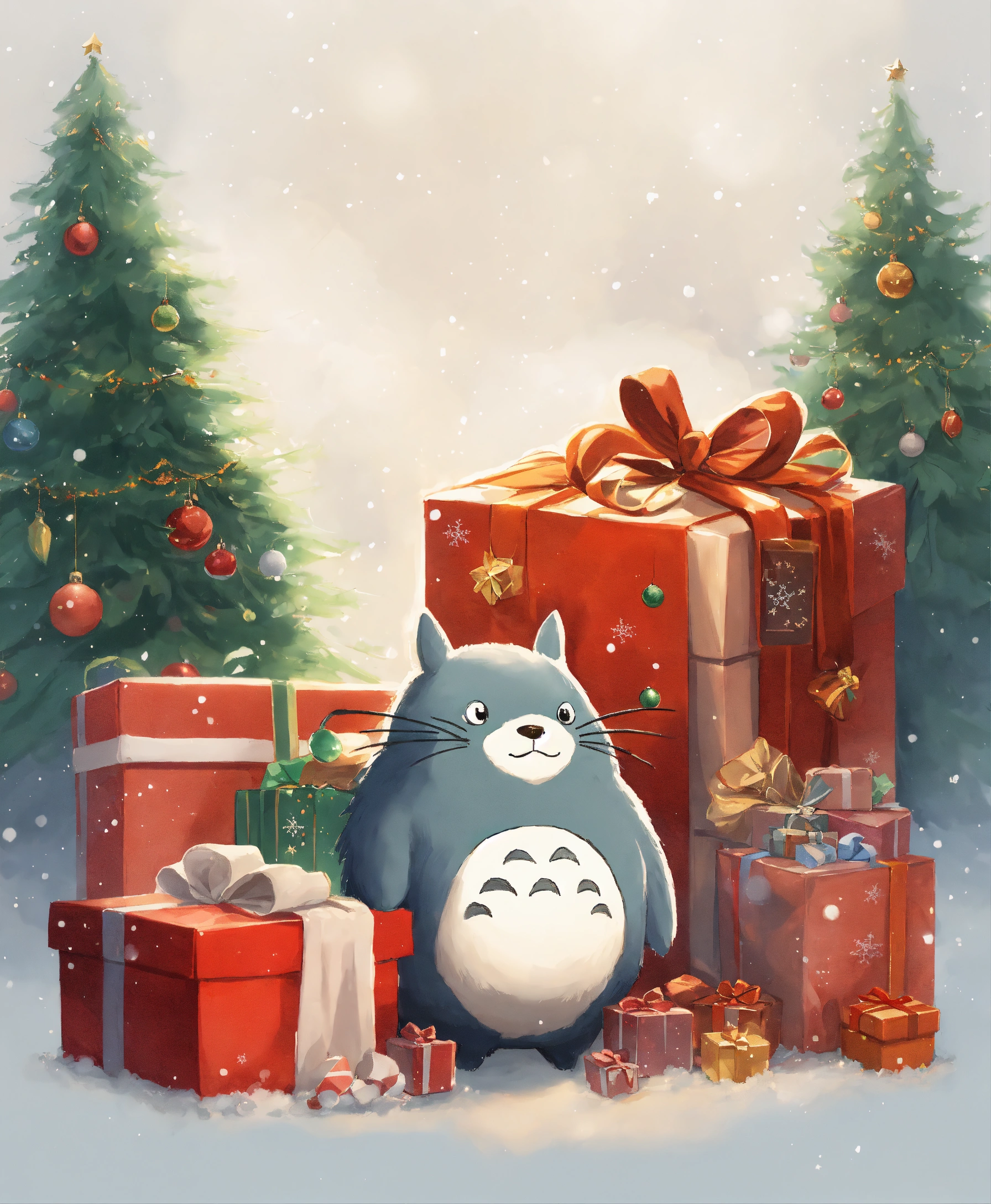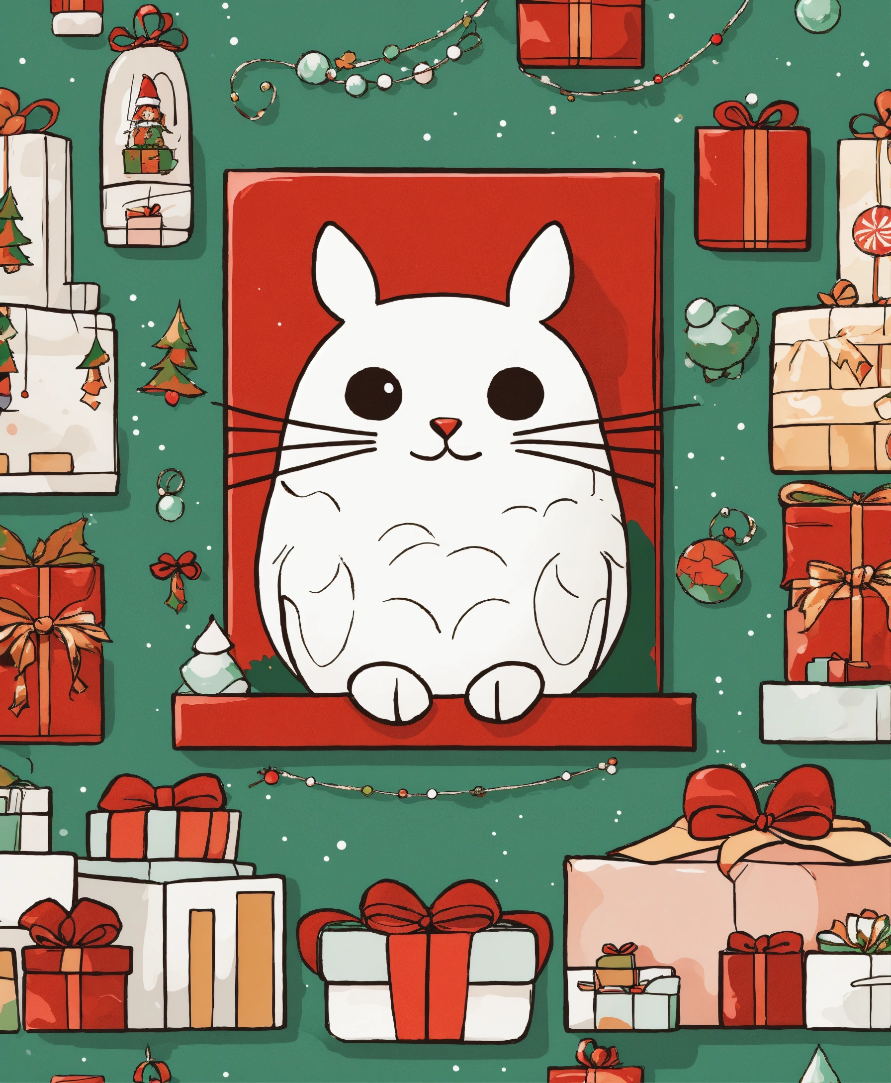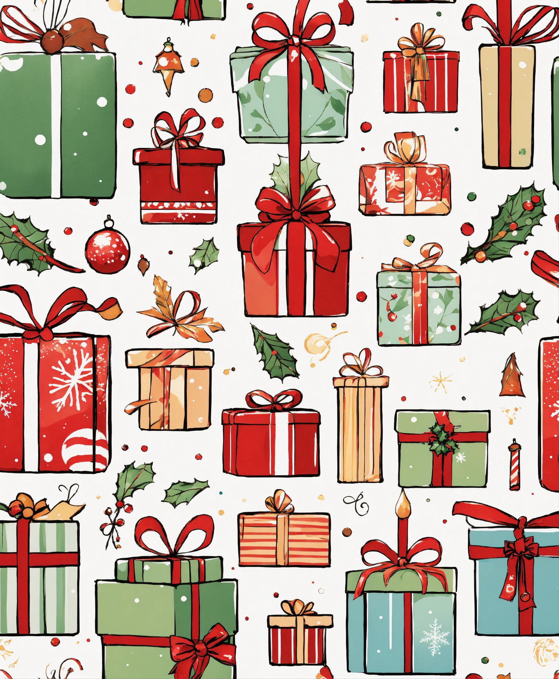 Elegant christmas presents. simple art inspired by studio ghibli's visual style. detailed, clear white background