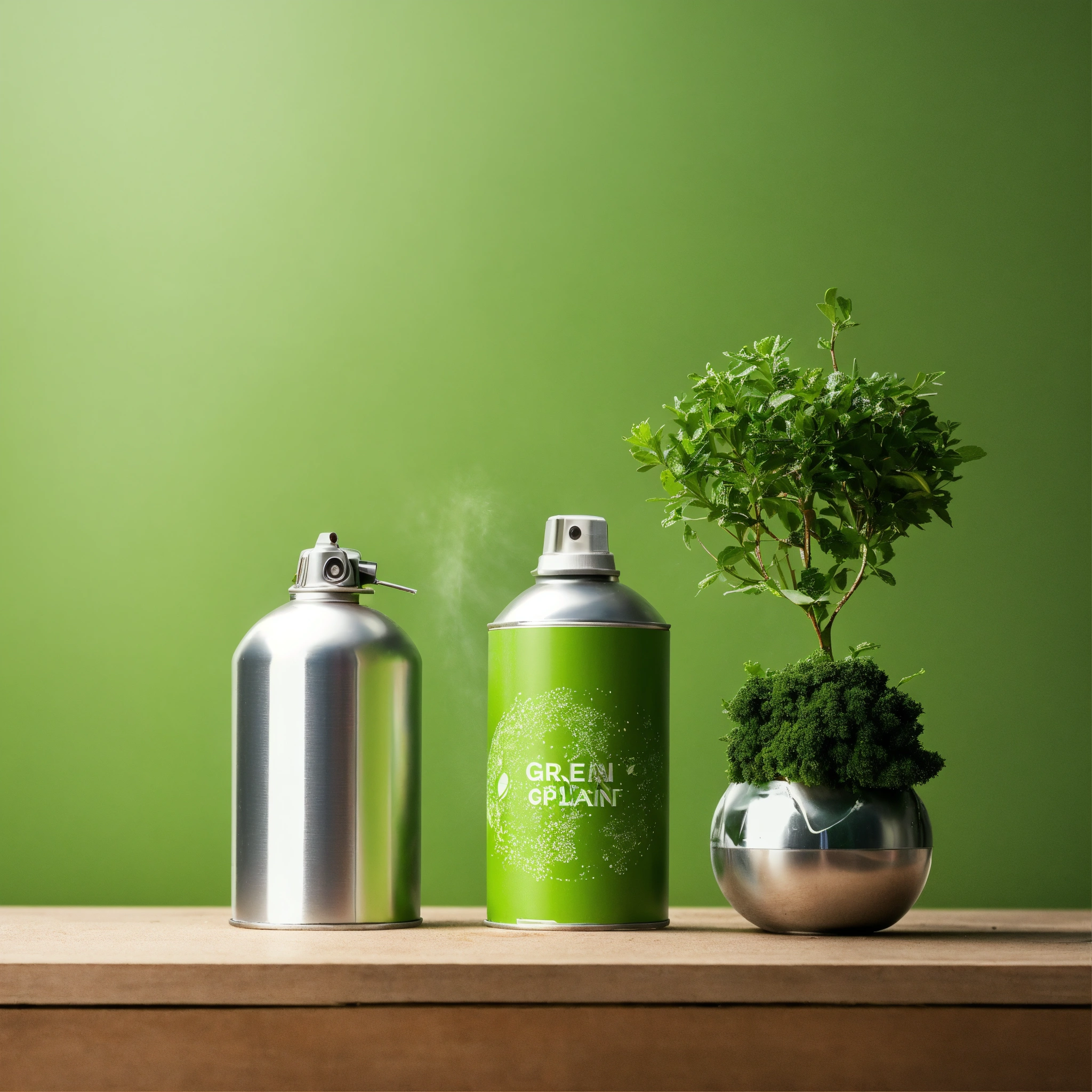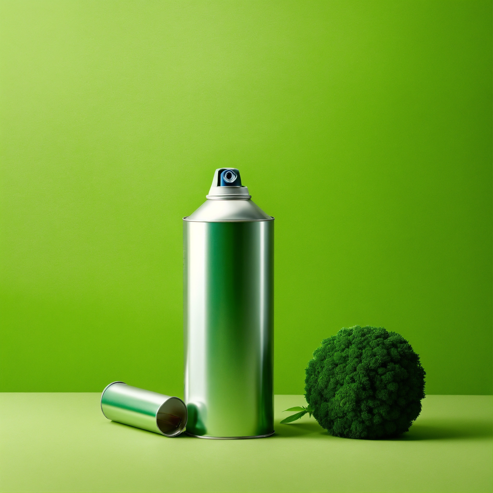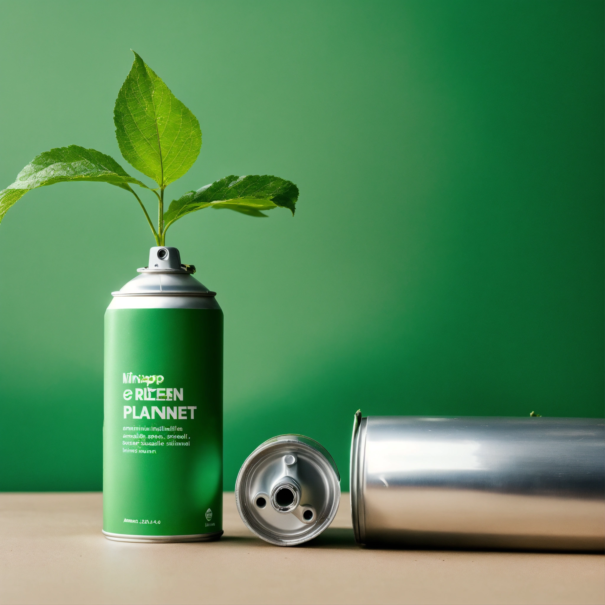 minimalistic picture of a green sustainable planet next to it an aluminum spray can