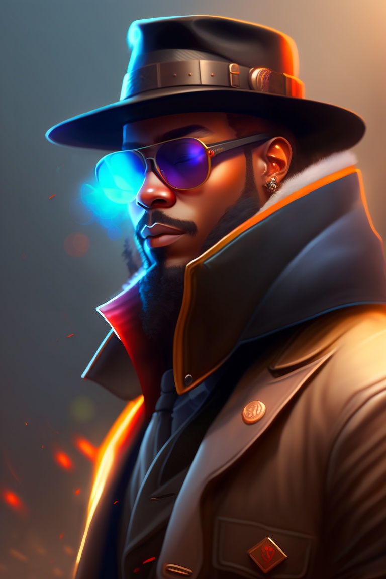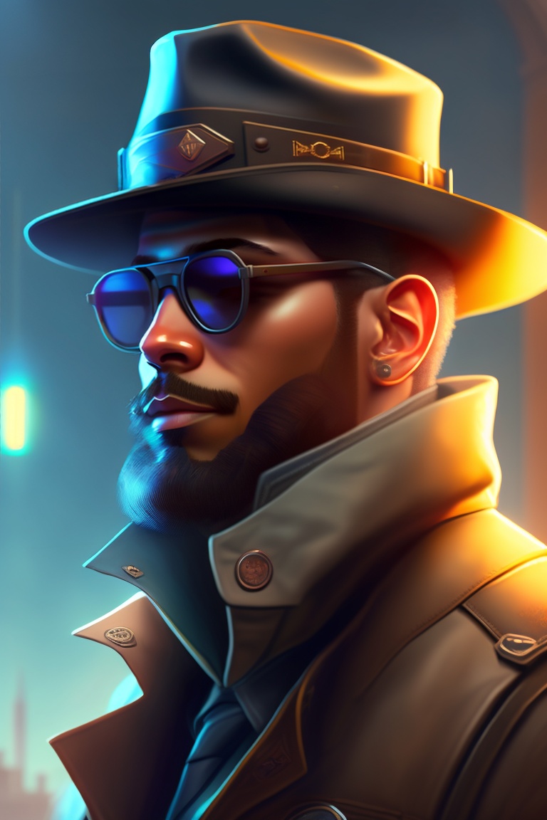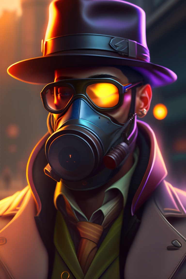 A man wearing a fedora hat, sunglasses, trenchcoat and a gas mask, a character portrait by fred a. precht, reddit contest winner, neoism, darksynth, sabattier filter, anamorphic lens flare. highly detailed portrait, digital painting, artstation, concept art, smooth, sharp focus illustration, artstation hq
