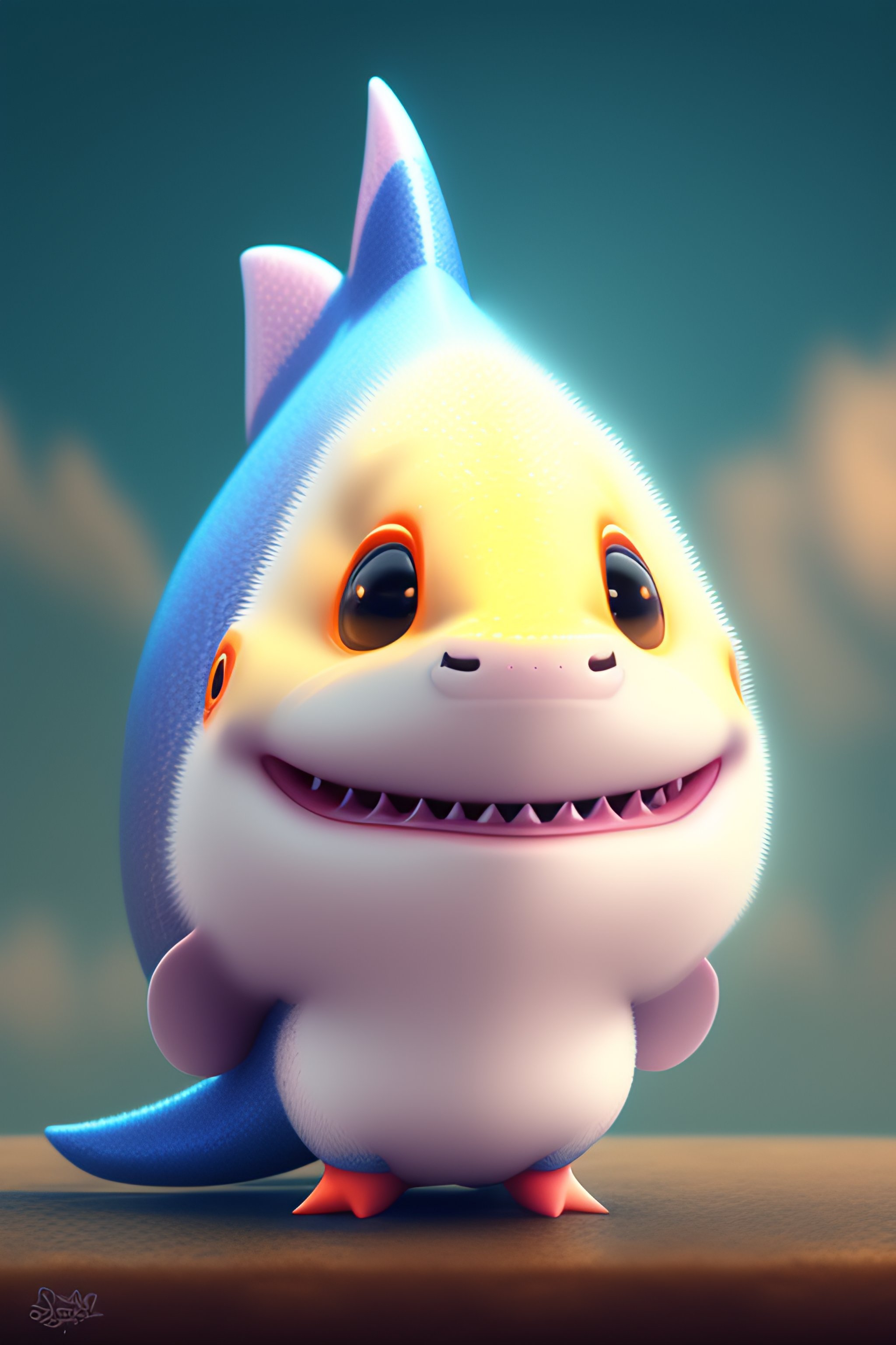 Cute and adorable cartoon fluffy baby shark, fantasy, dreamlike, surrealism, super cute, trending on artstation