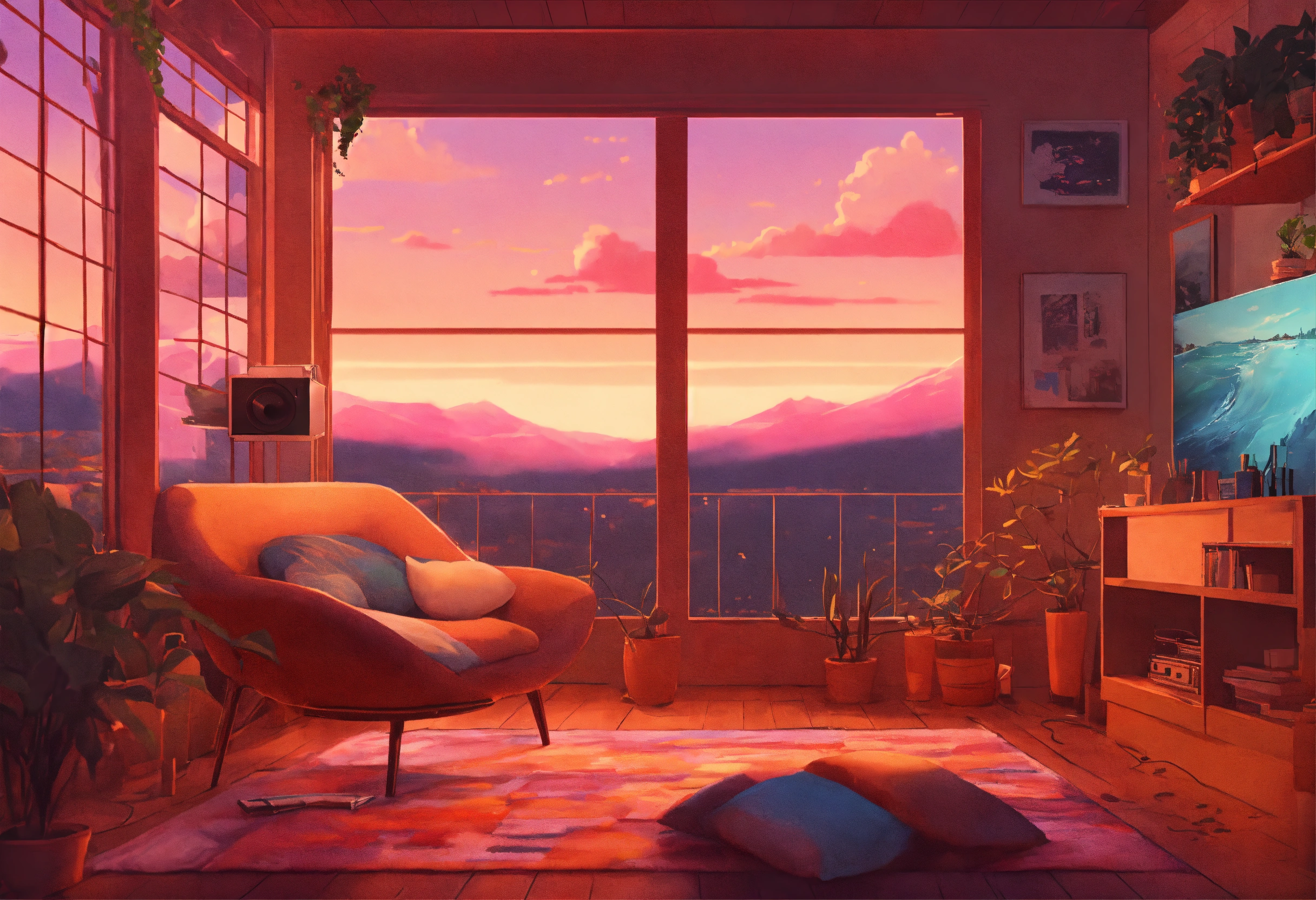 "generate a captivating youtube thumbnail for a lofi music video. the image should convey a serene and relaxed atmosphere, with elements such as a cozy room, soft lighting, and soothing visuals. the thumbnail should be visually engaging and evoke a sense of calm and tranquility to entice viewers to click and experience the relaxing sounds of the lofi music. use colors and composition that align with the soothing nature of the music. create an image that draws viewers into the world of lofi music and encourages them to click and unwind to the sounds of the video."