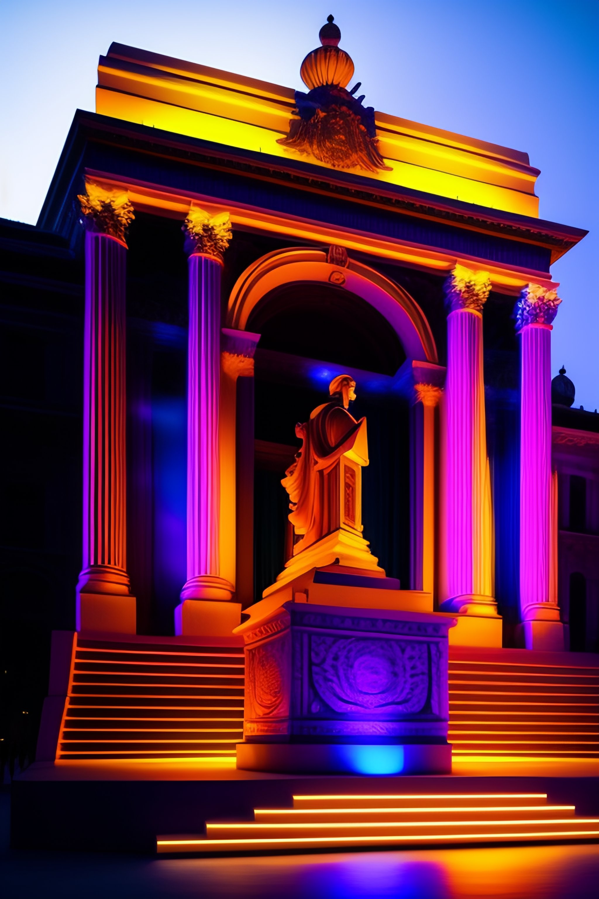 Vj, men digital artist making a projection mapping in a monument facade, cinematic. colorfull, 8k very detailled, photographic, realistic, projector light