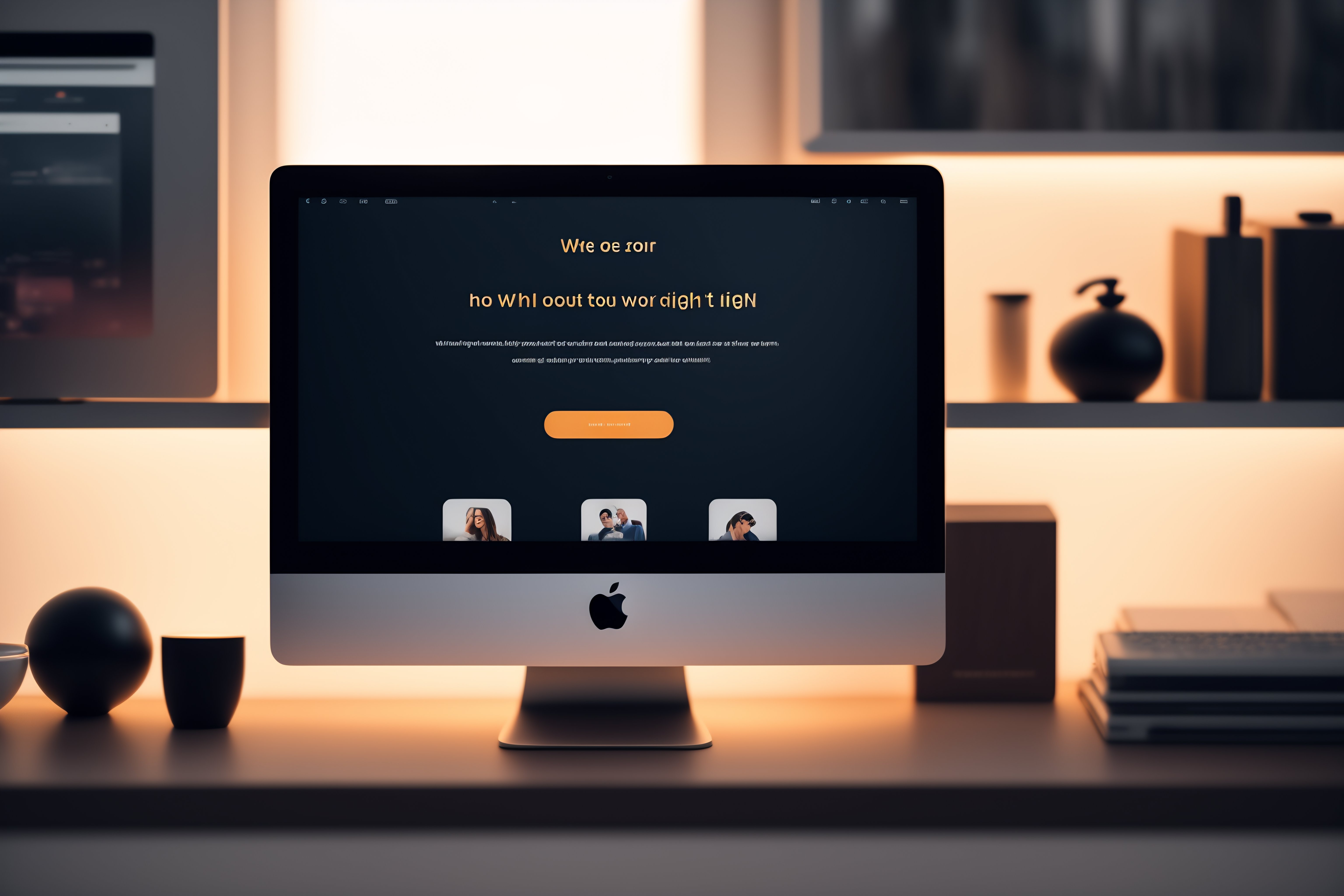Website light ui with big call to action button on a mac