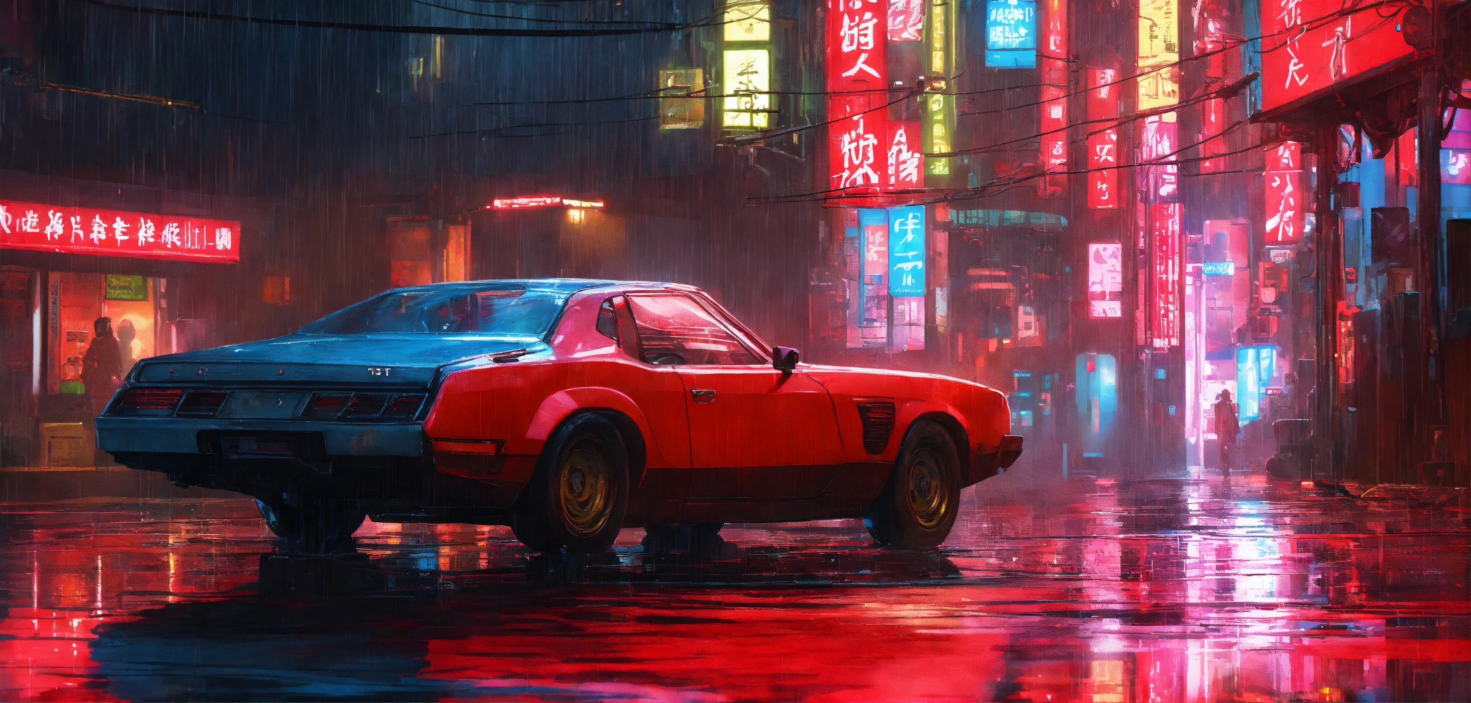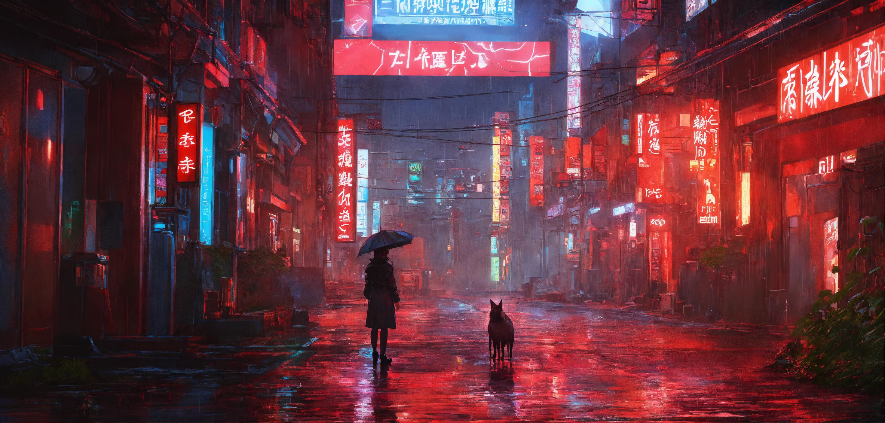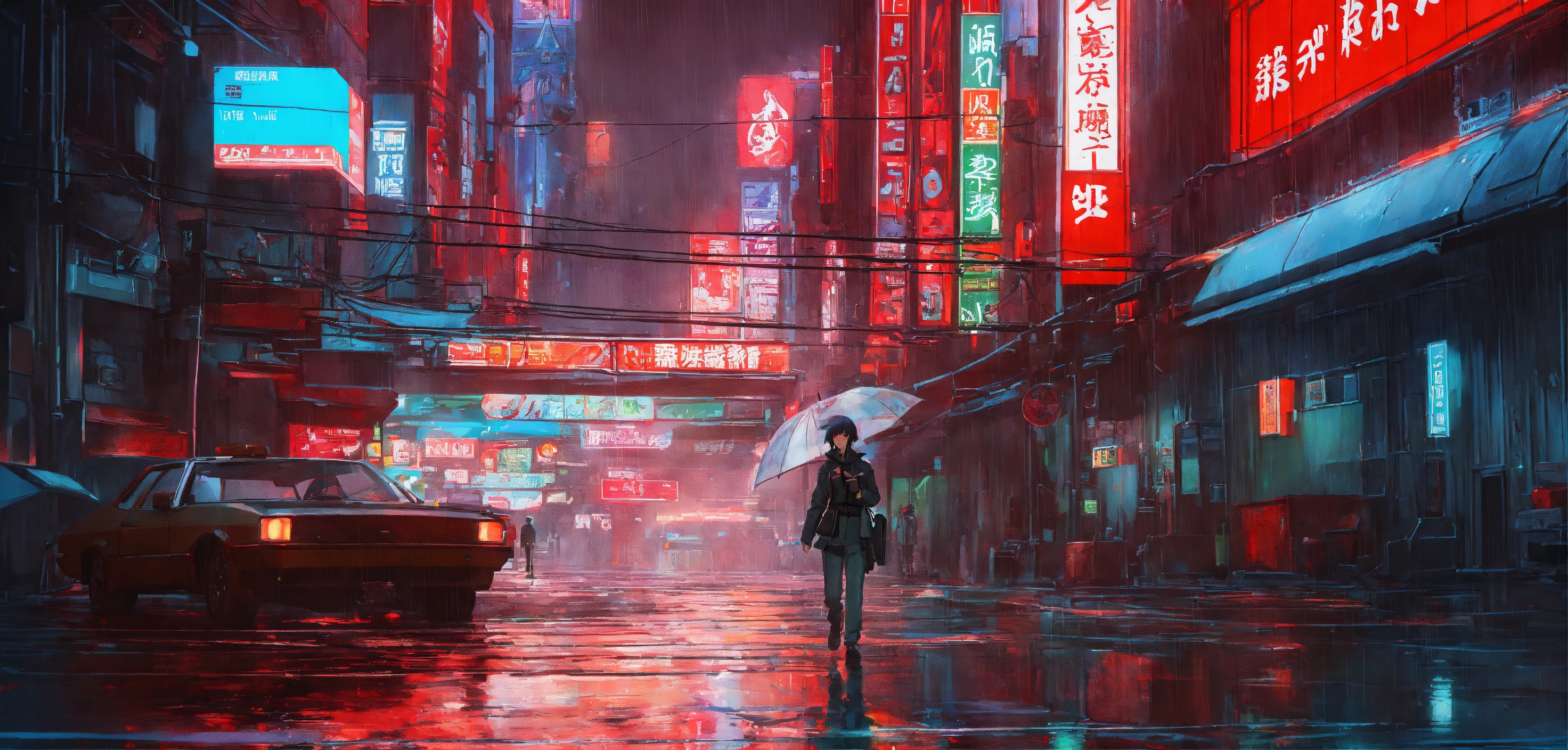 Anime art of ghost in the shell, detailed scene, red, perfect face, intricately detailed photorealism, trending on artstation, neon lights, rainy day, ray-traced environment, vintage 90's anime artwork.
