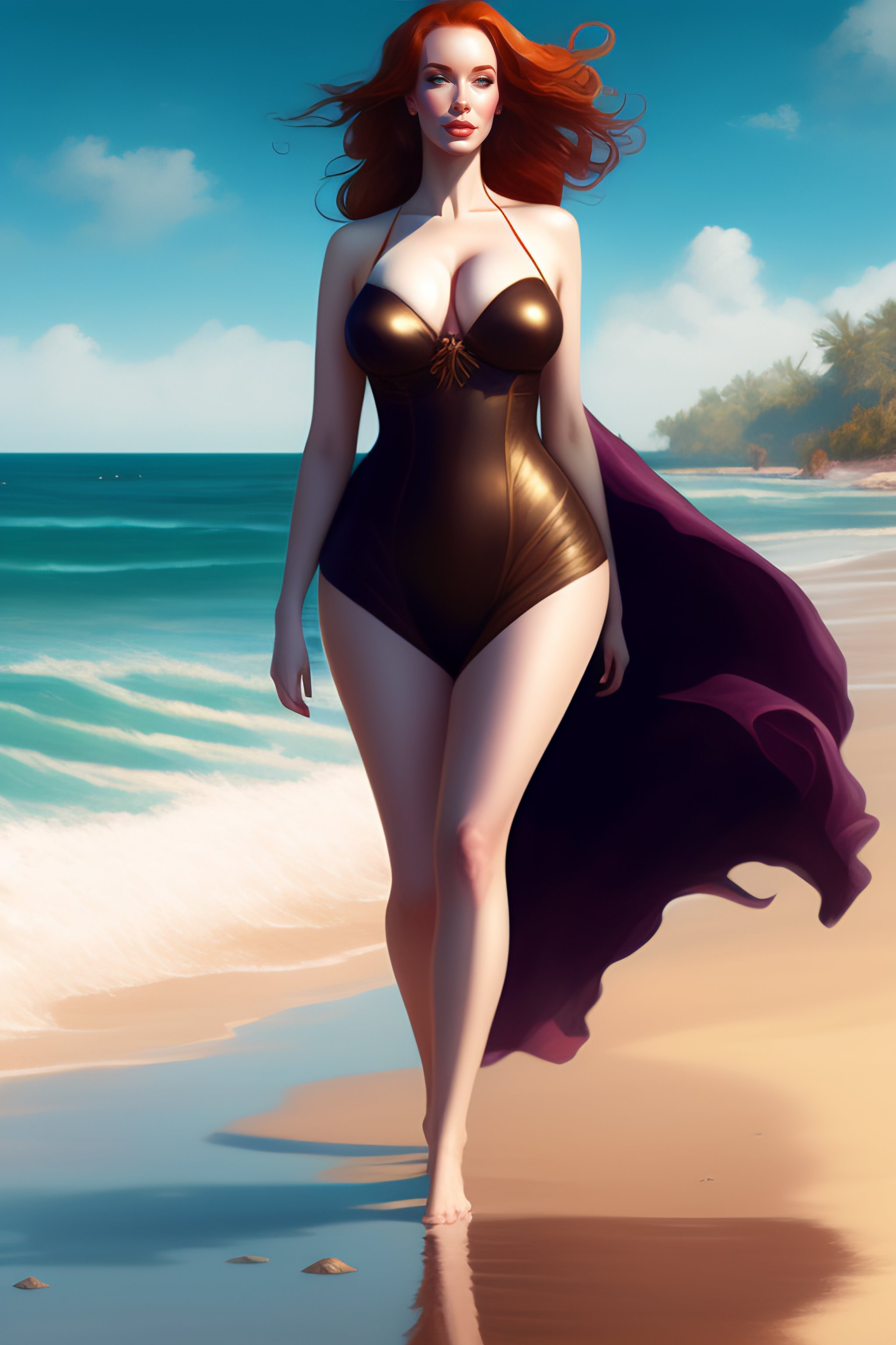 Christina hendricks walking to pool, full body, bikini, barefoot, feet, ultrarealism, jordan grimmer, greg rutkowski, artgerm, artstation
