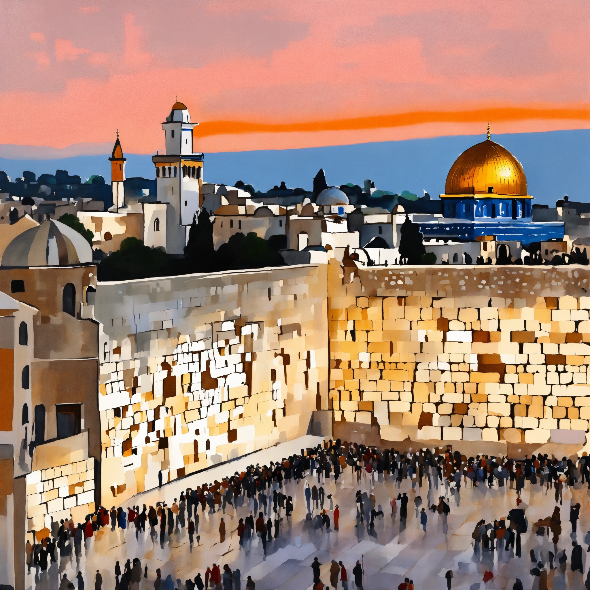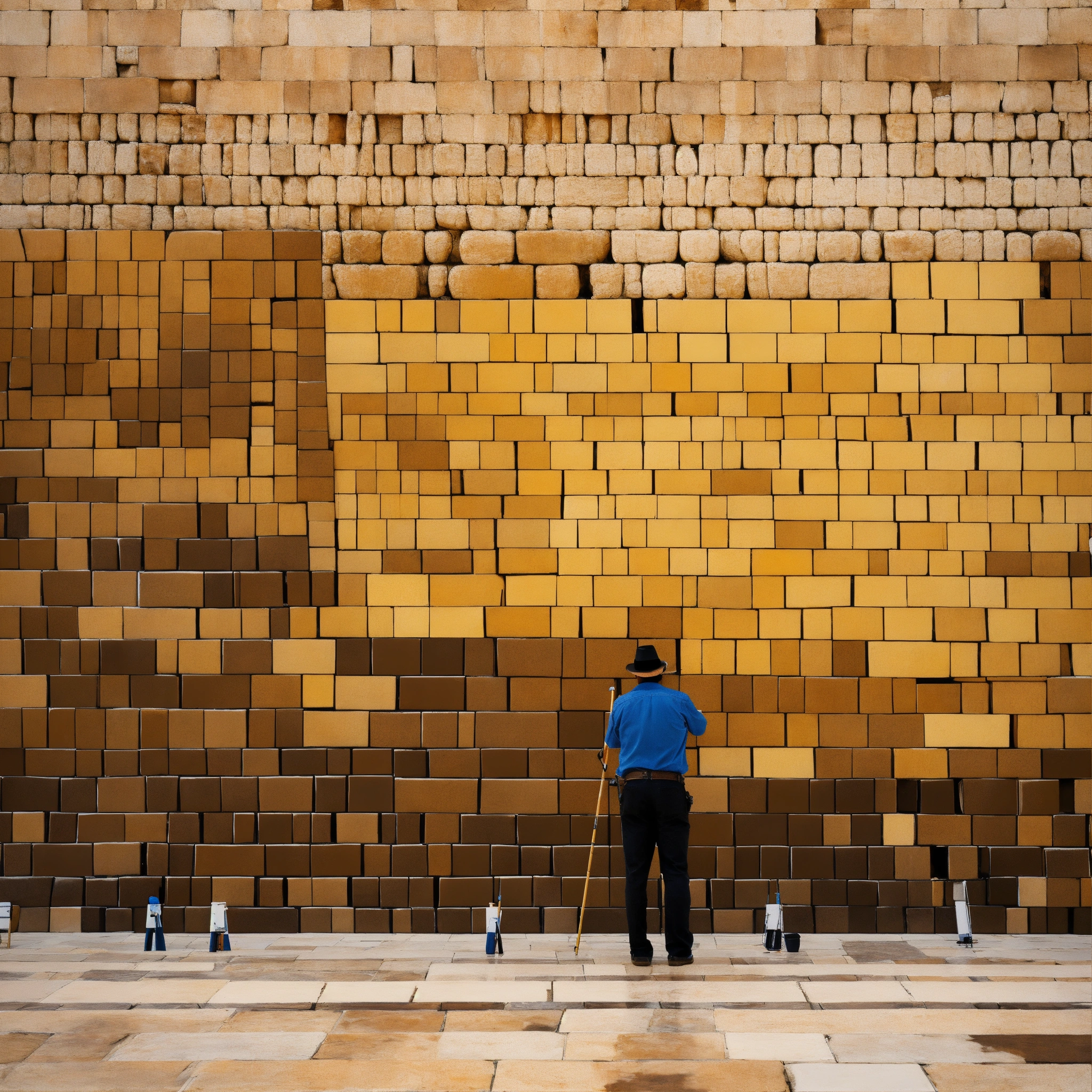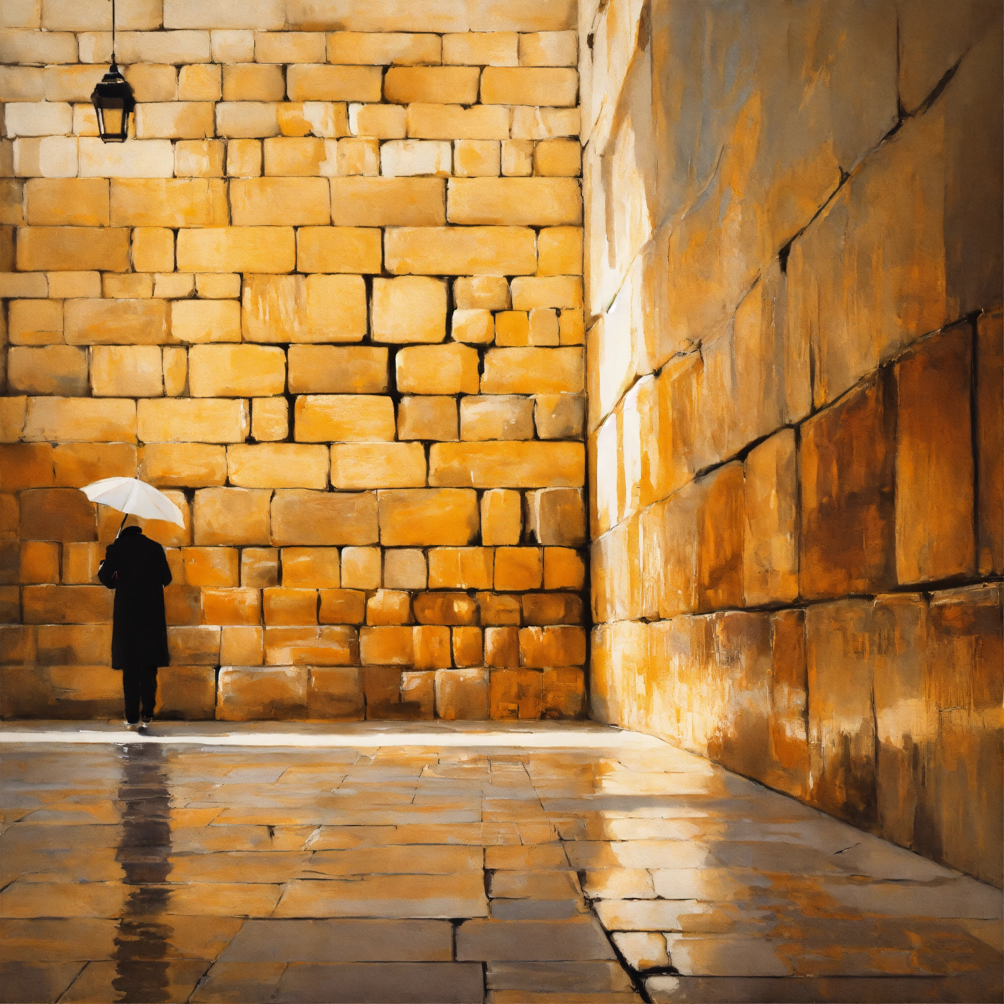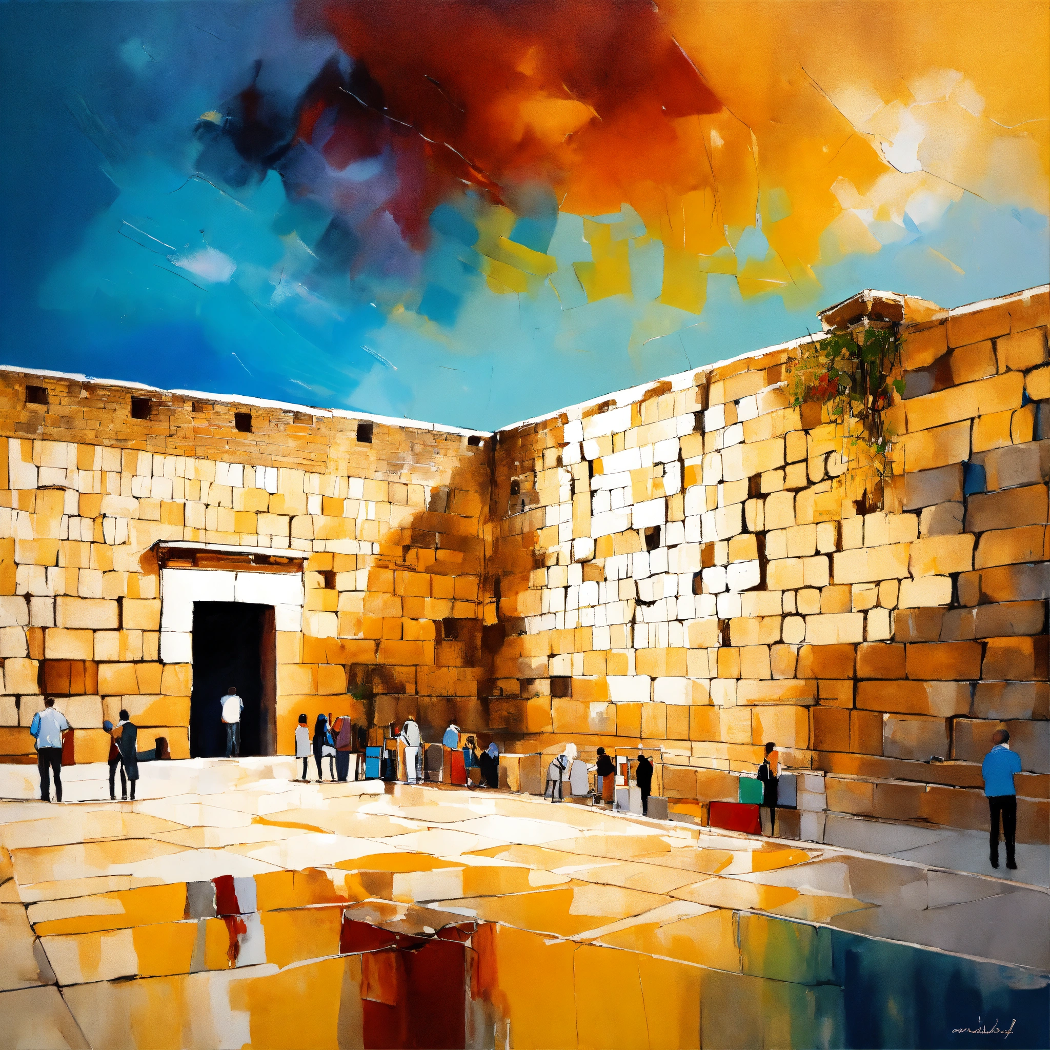 Create for me a minimalistic abstract painting of the western wall in jerusalem, so that they can see the painting with a brush.
