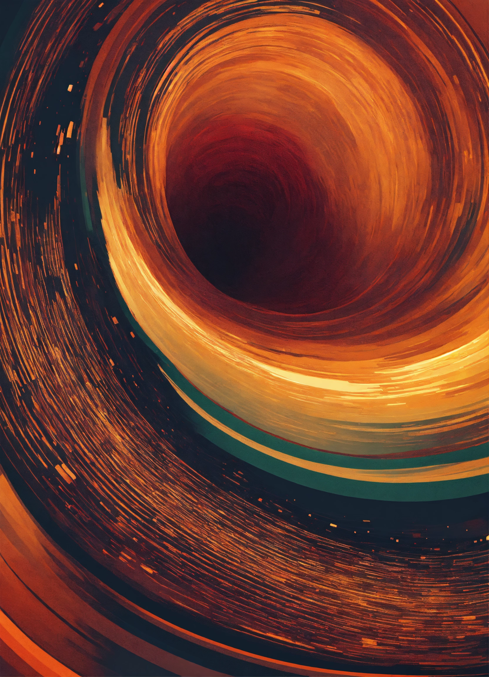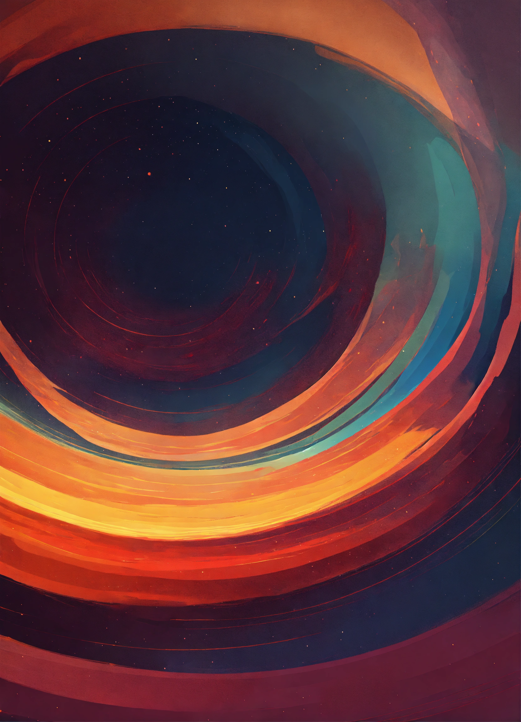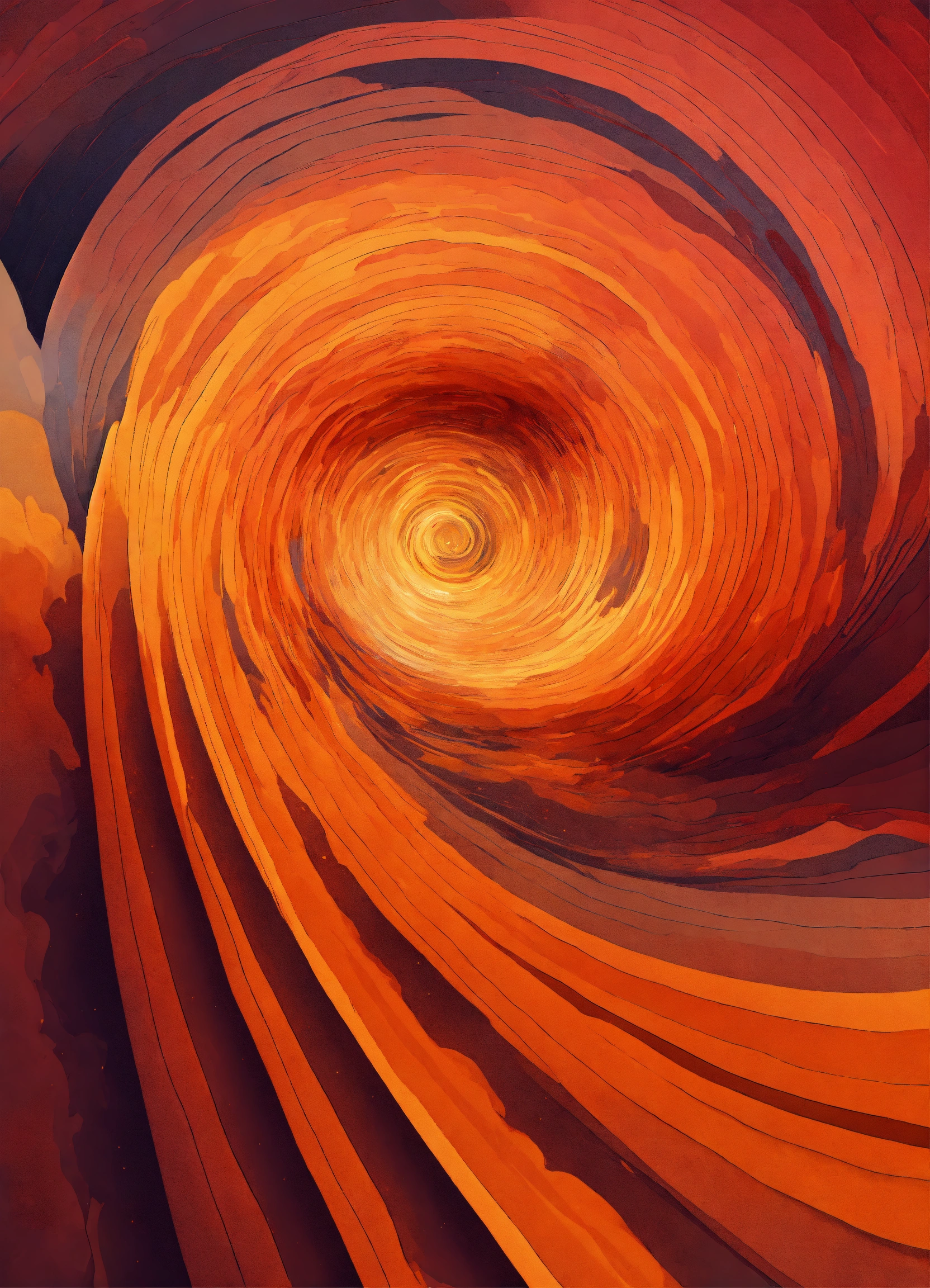 Minimalist and abstract digital art of celestial vortex in warm colours and high resolution