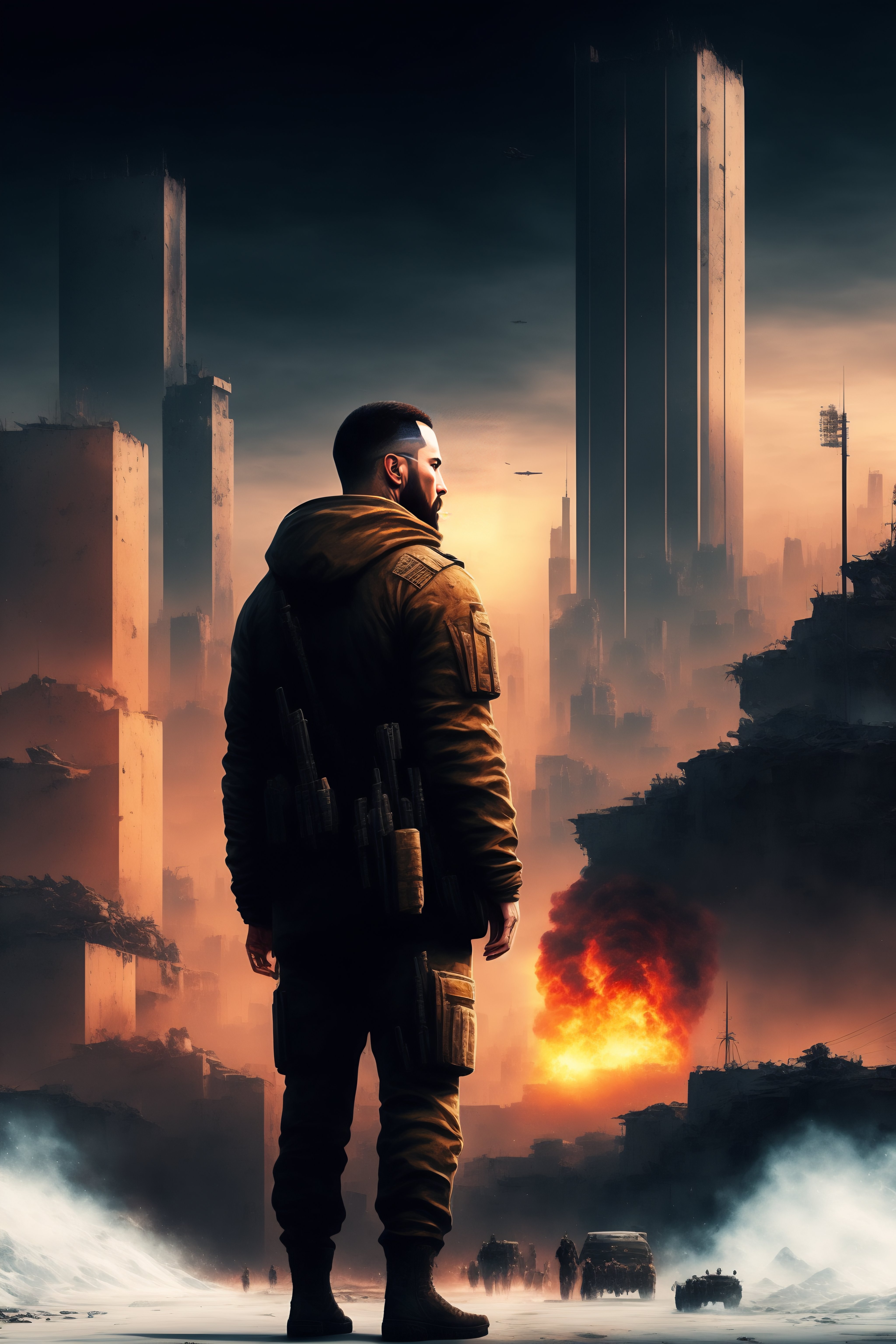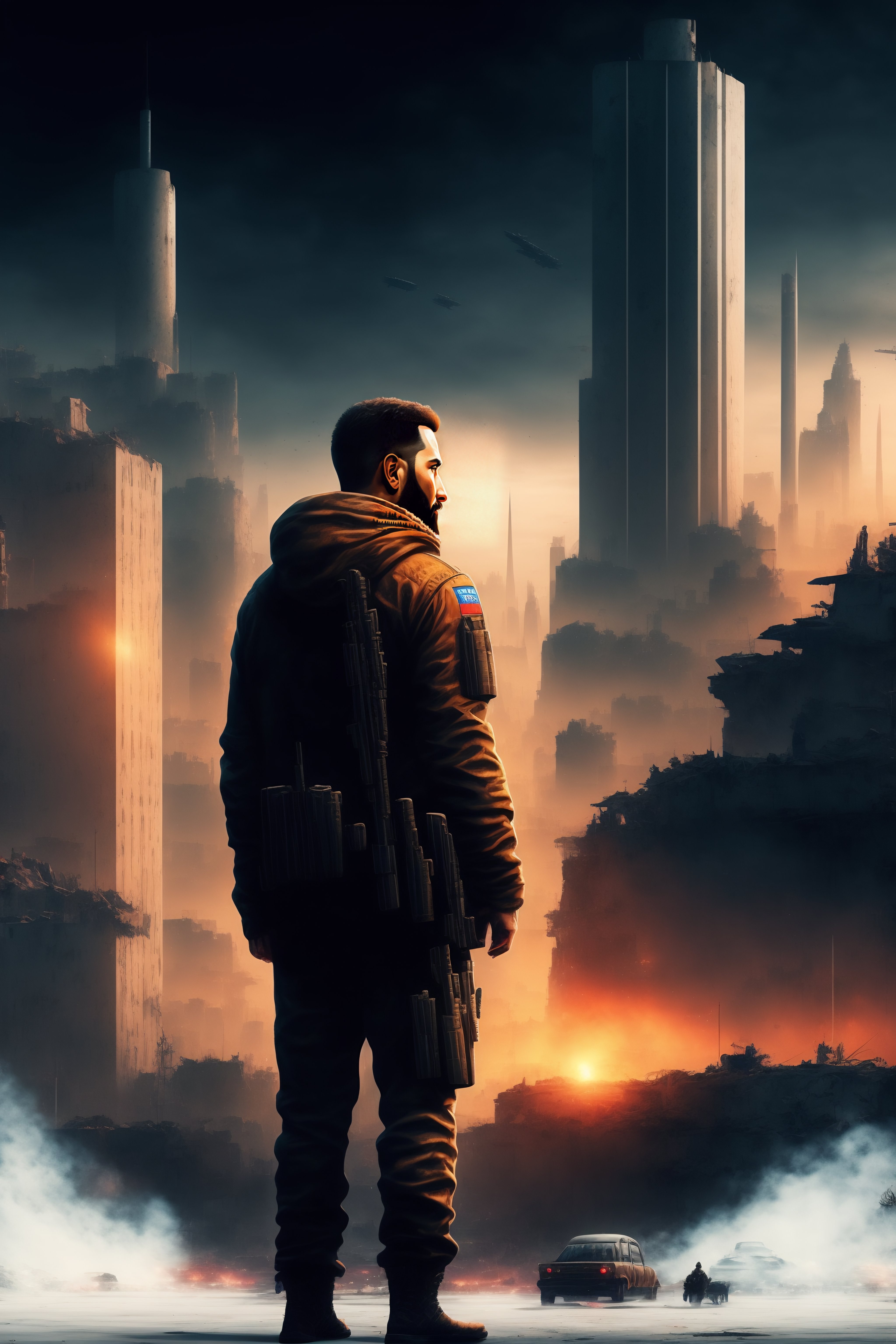 Tshirt art that says welcome to tarkov with a russian vibe and a bombed city in the background