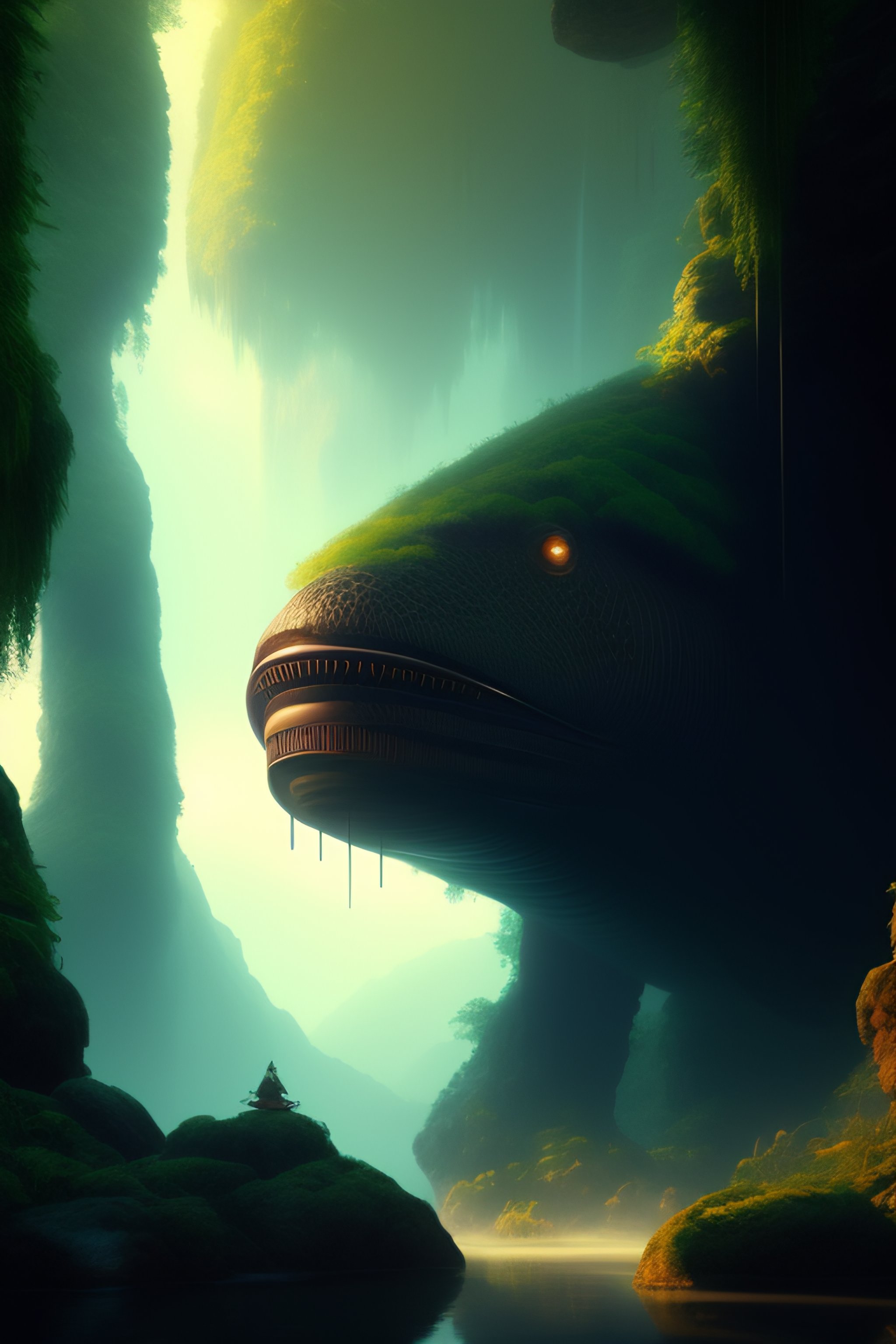 A giant cyclops greek mythology one eye and the big mouth on its belly at rainforest, fantasy, elegant, crisp 8 k line art, digital painting, artstation, unreal engine, octane render, concept art, matte, sharp focus, hyper realistic lighting, illustration, art by zdzisław beksinski