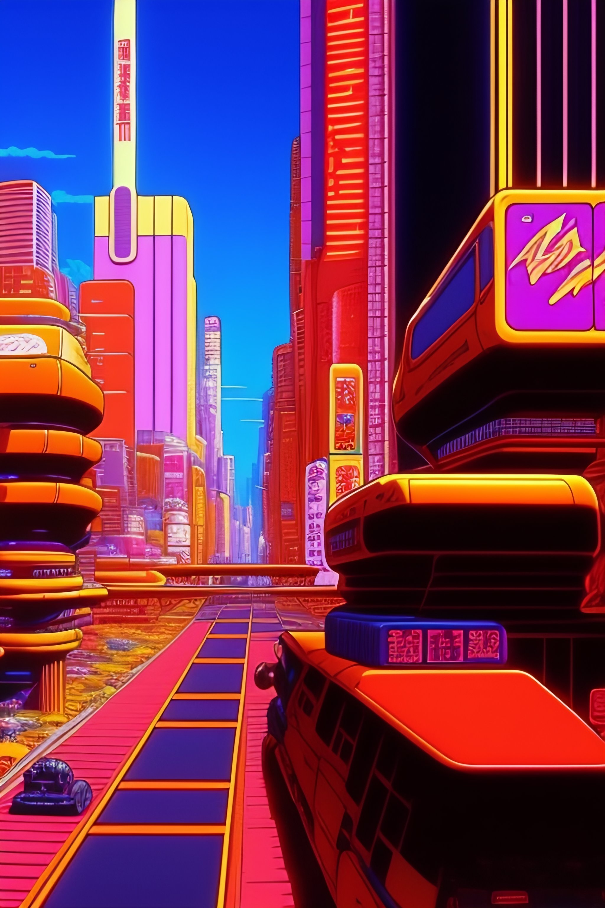 Vintage anime screenshot from akira, 90’s anime aesthetic. a stunning maximalist cityscape of tokyo. make it wallpaper for macbook 16'