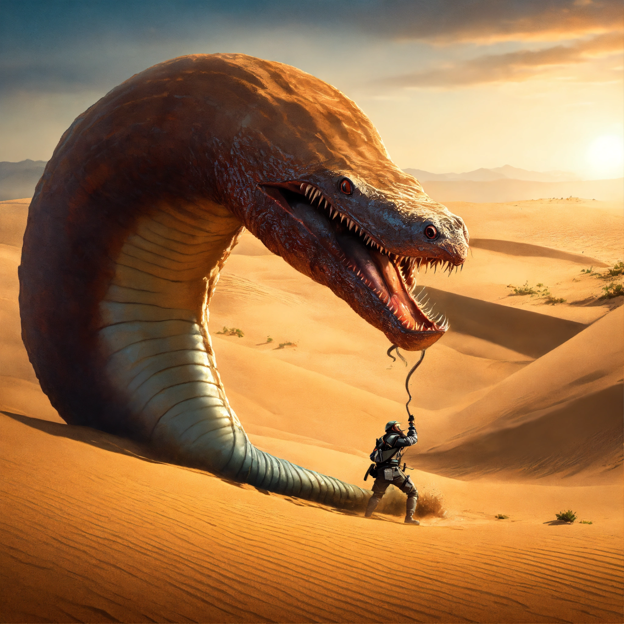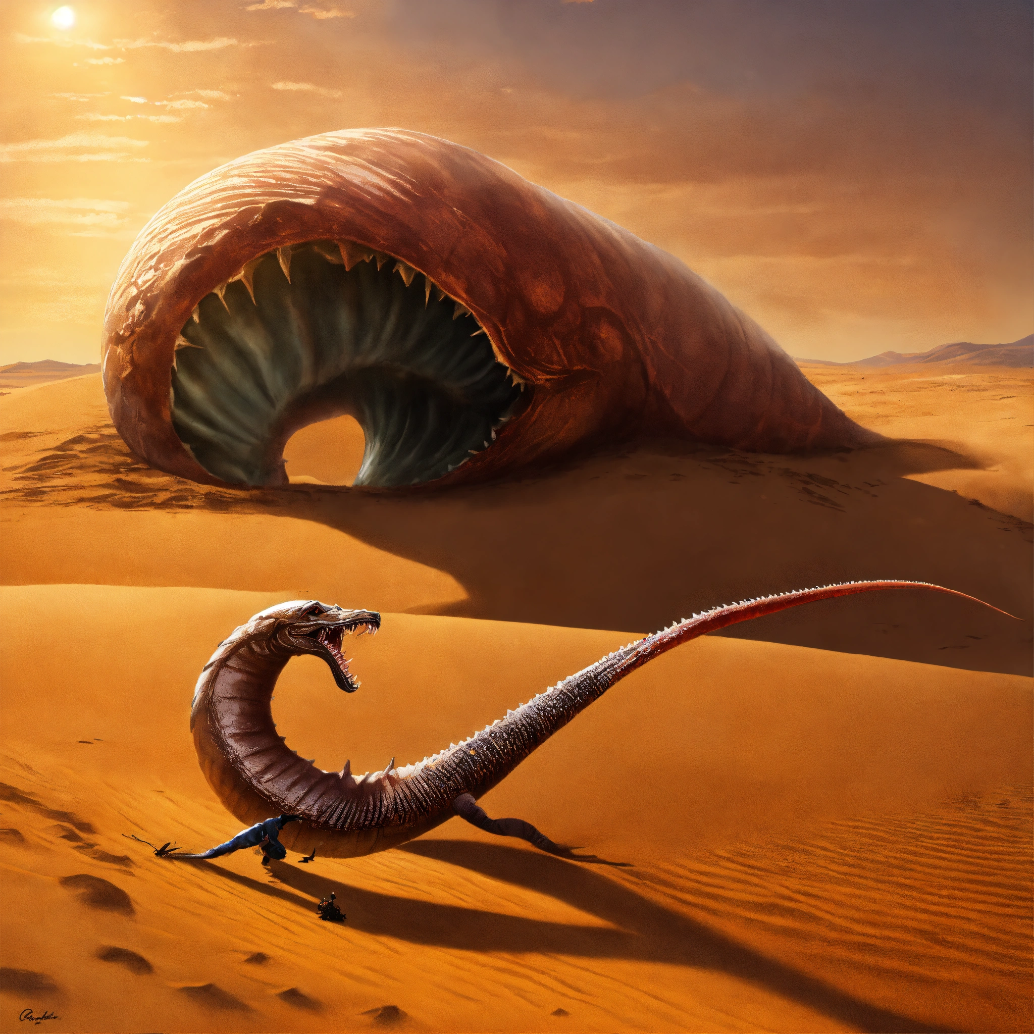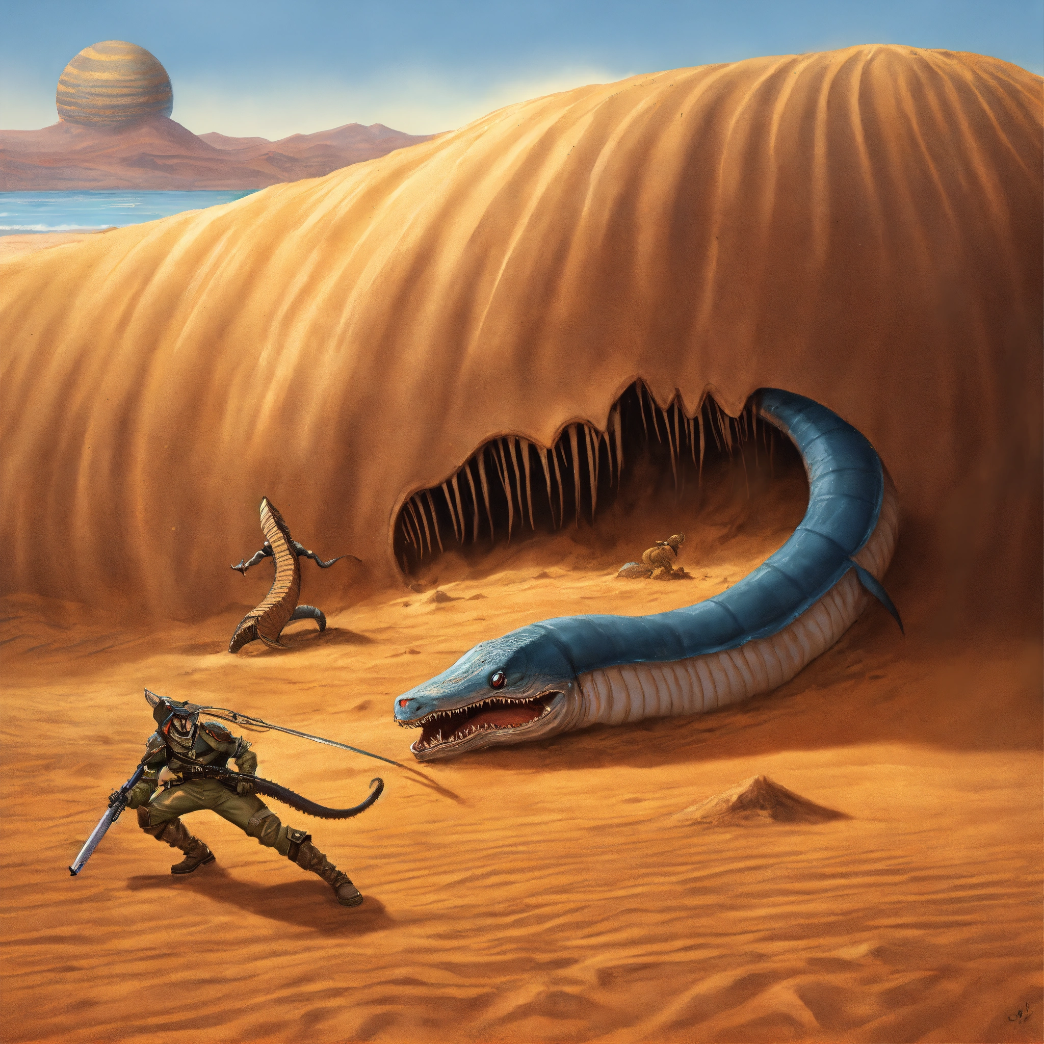 A dune sandworm fighting a graboid sandworm