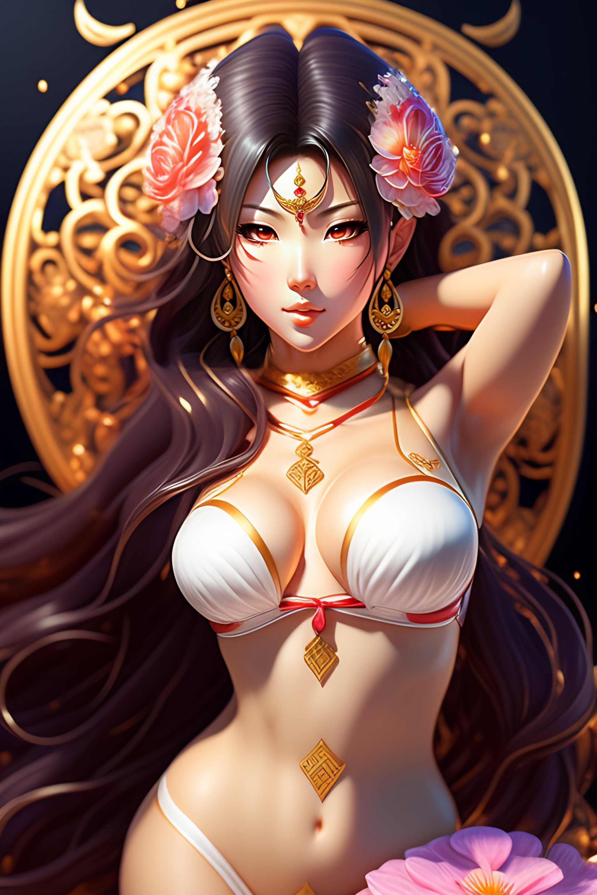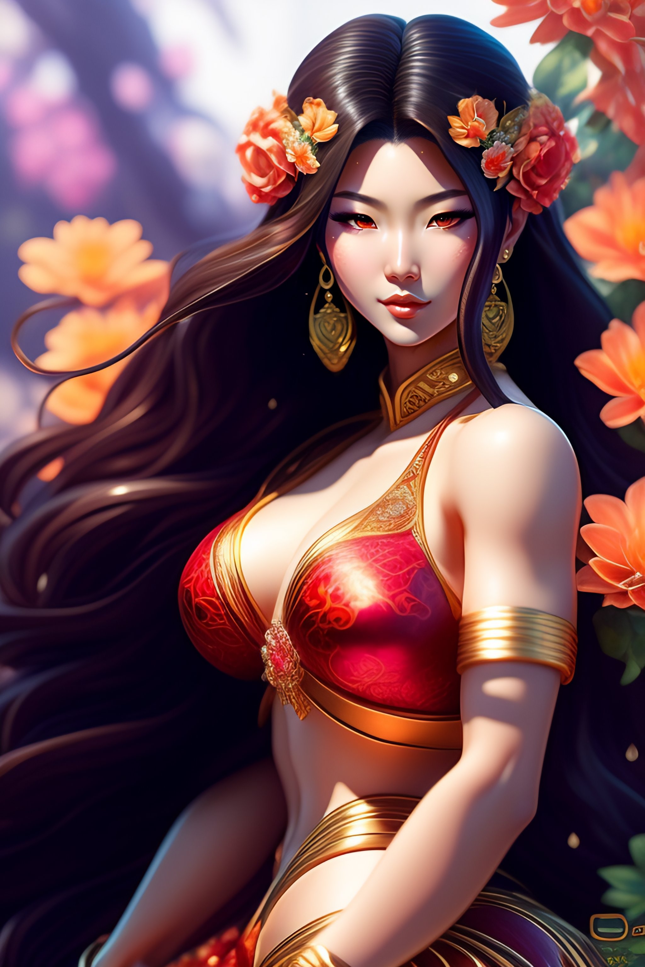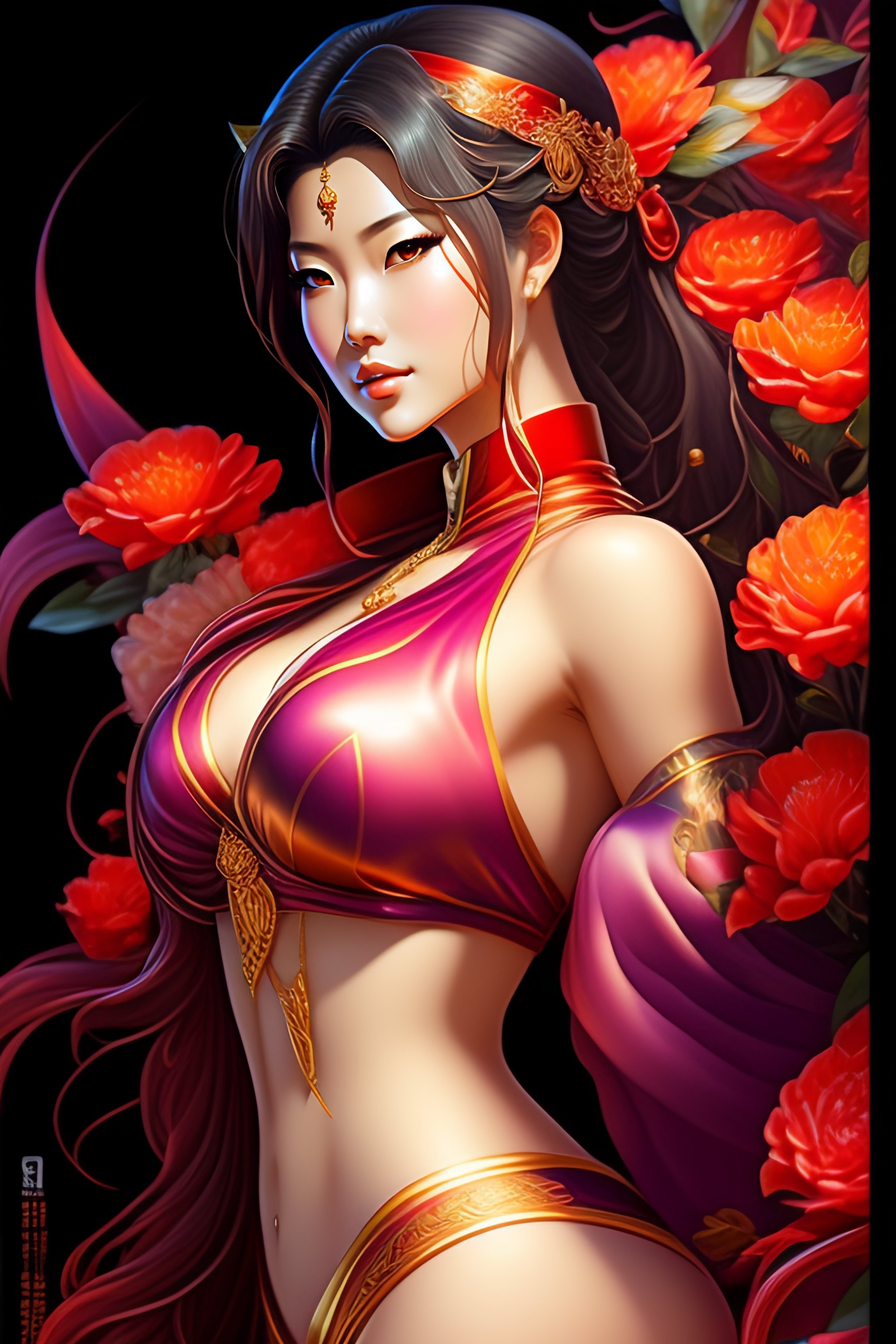 A masterpiece ultrarealistic ultradetailed anime portrait of mai shiranui. full body shot, intricate, elegant, by stanley artgerm lau, alphonse mucha, rossdraws, andrei riabovitchev, yoshitaka amano. in style of hayao miyazaki. flower background my james jeand and takashi murakami.