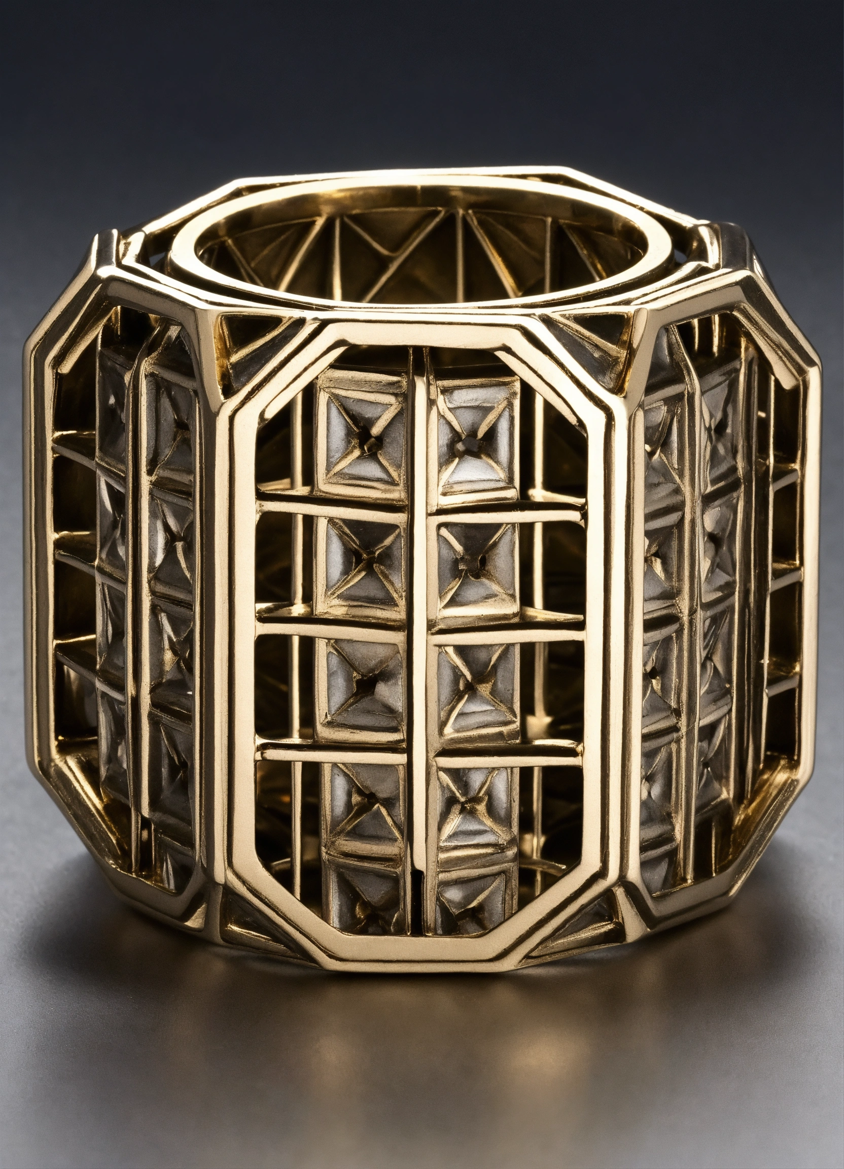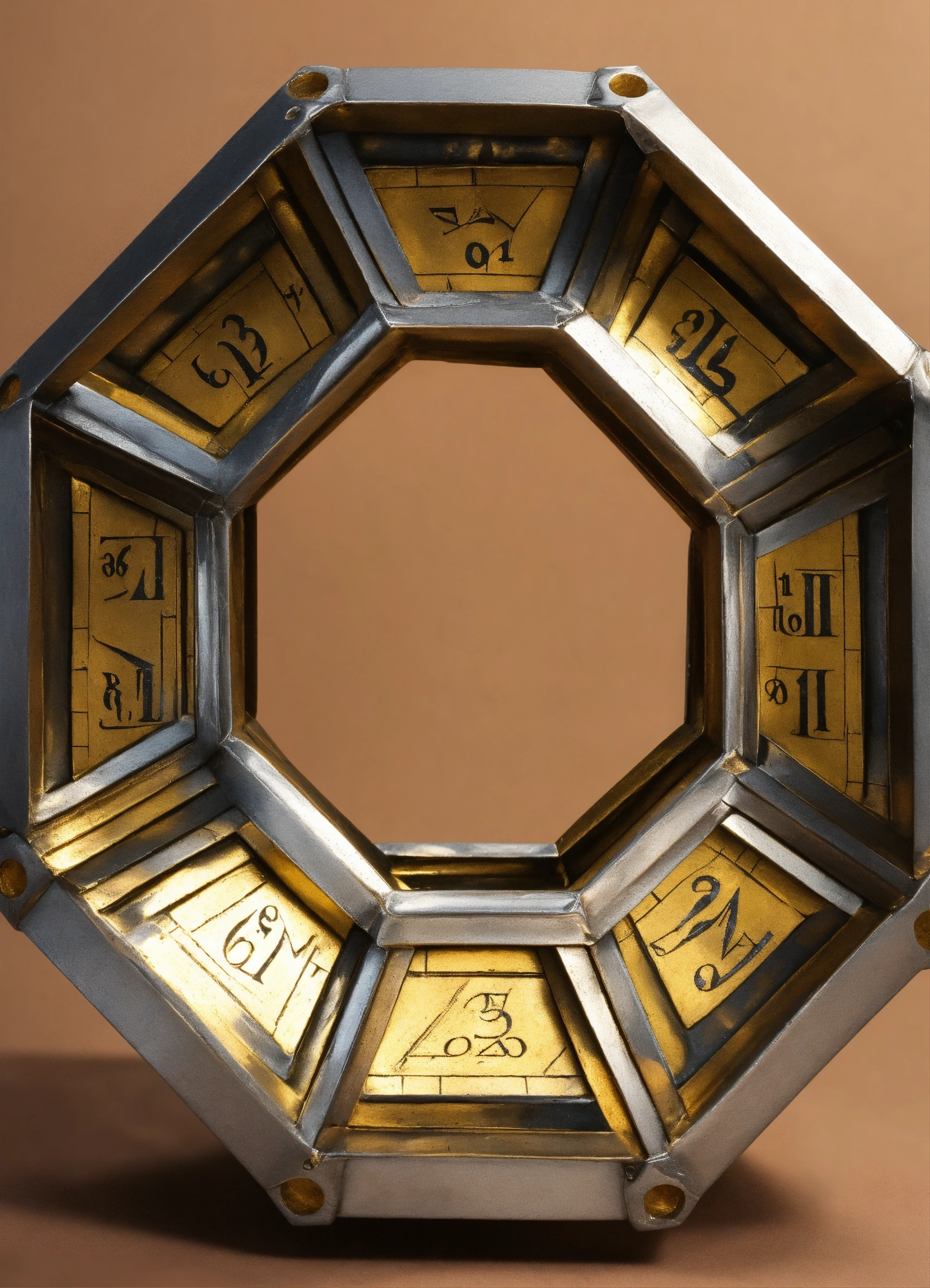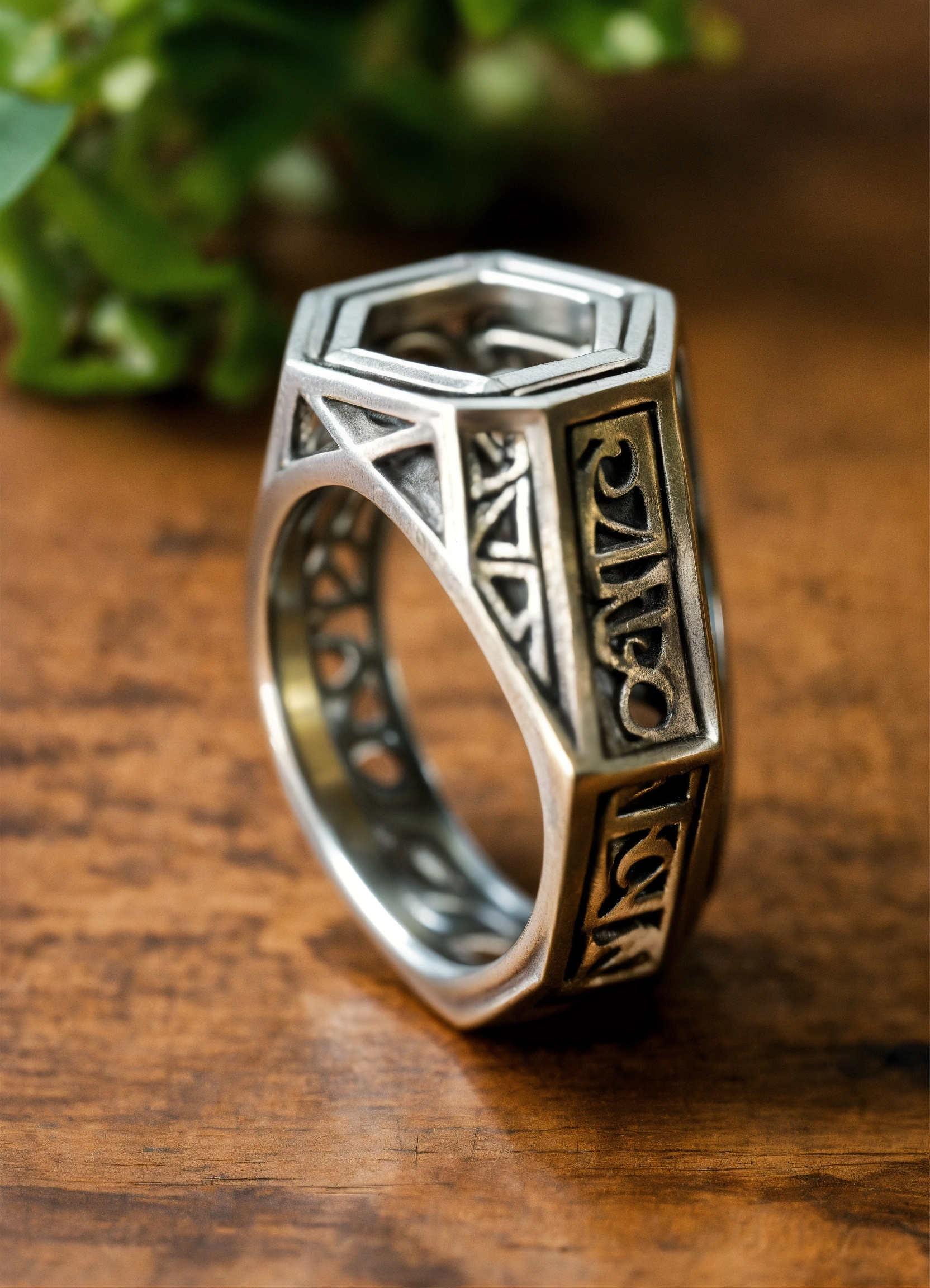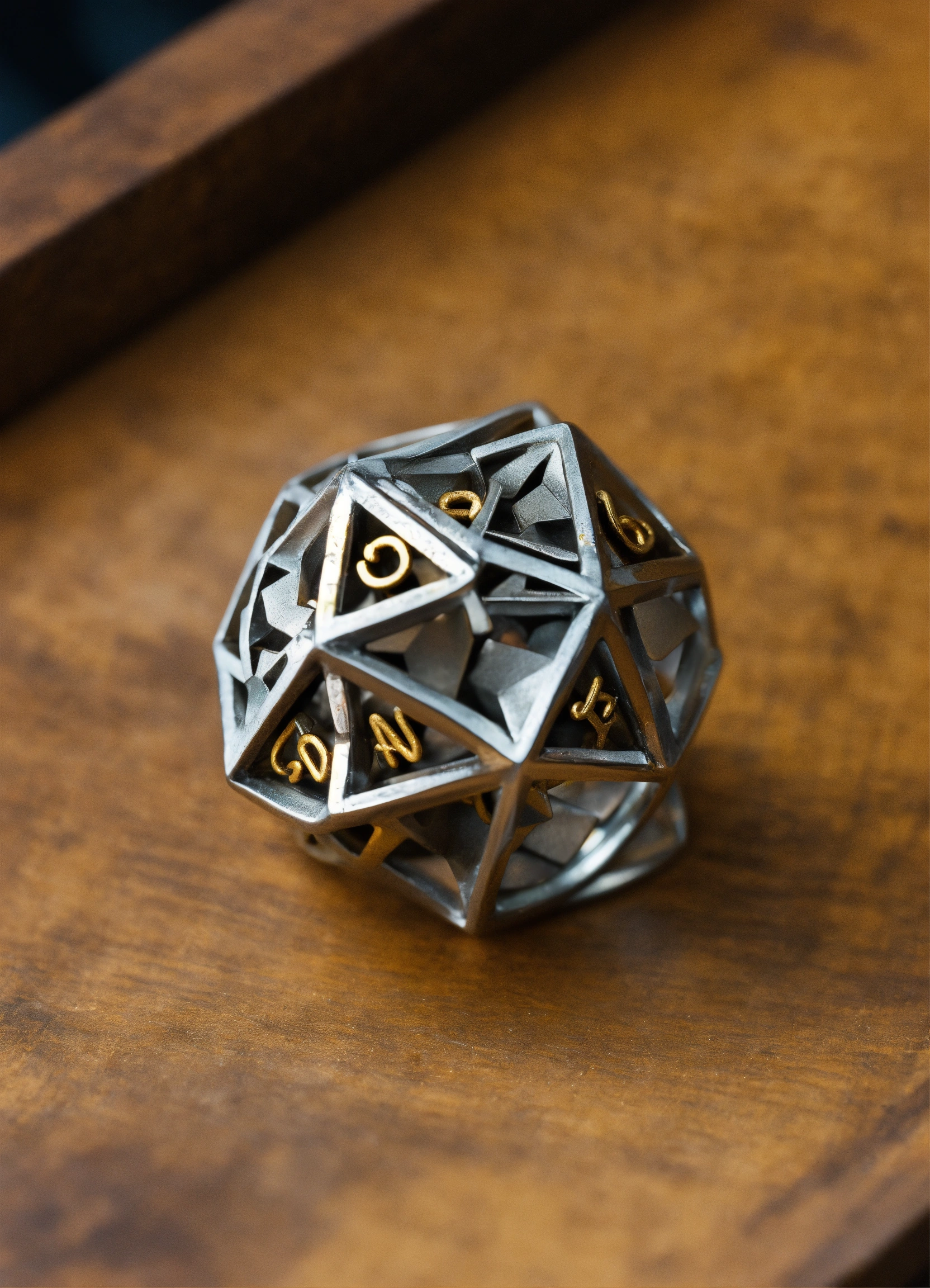 21 sided ring, solid metal, with tessellated sides, each side with a number, spinning on an inner ring