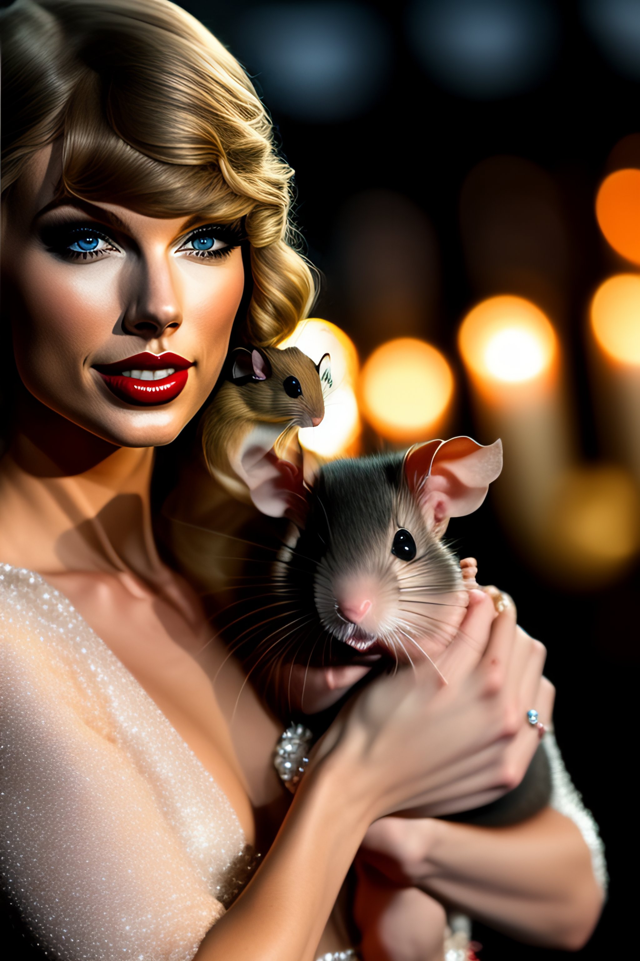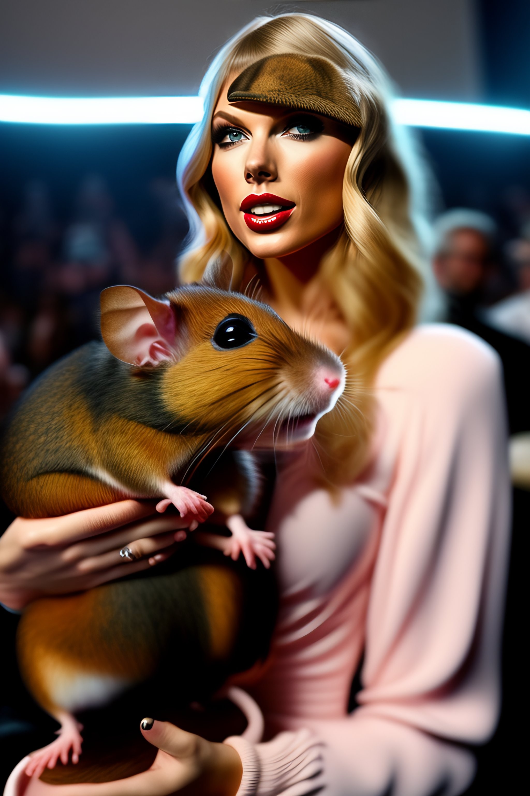 Taylor swift holding a cute little rat high quality 8k