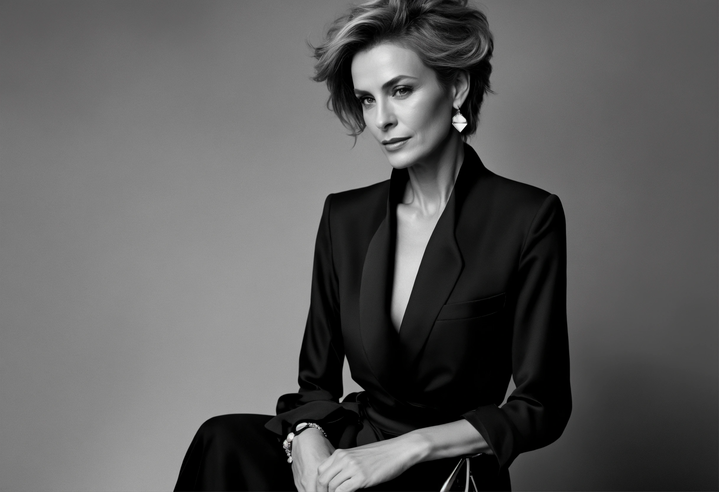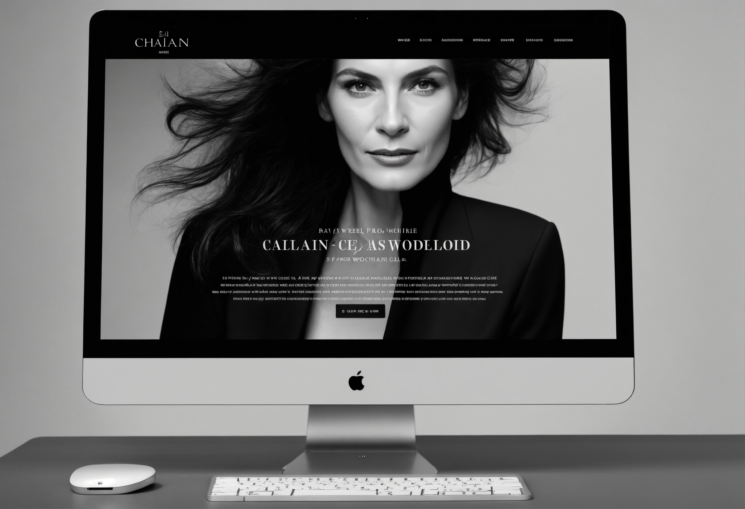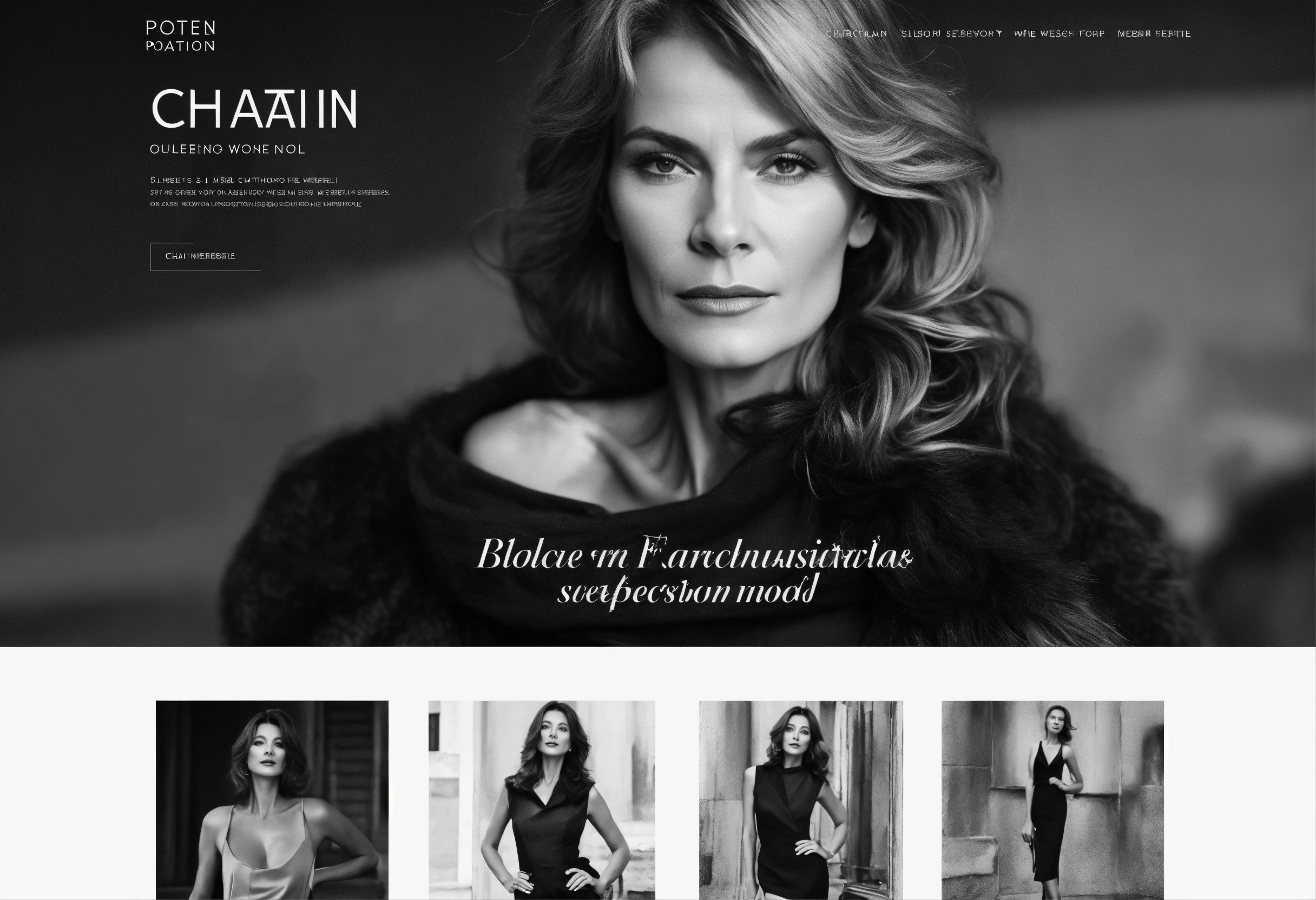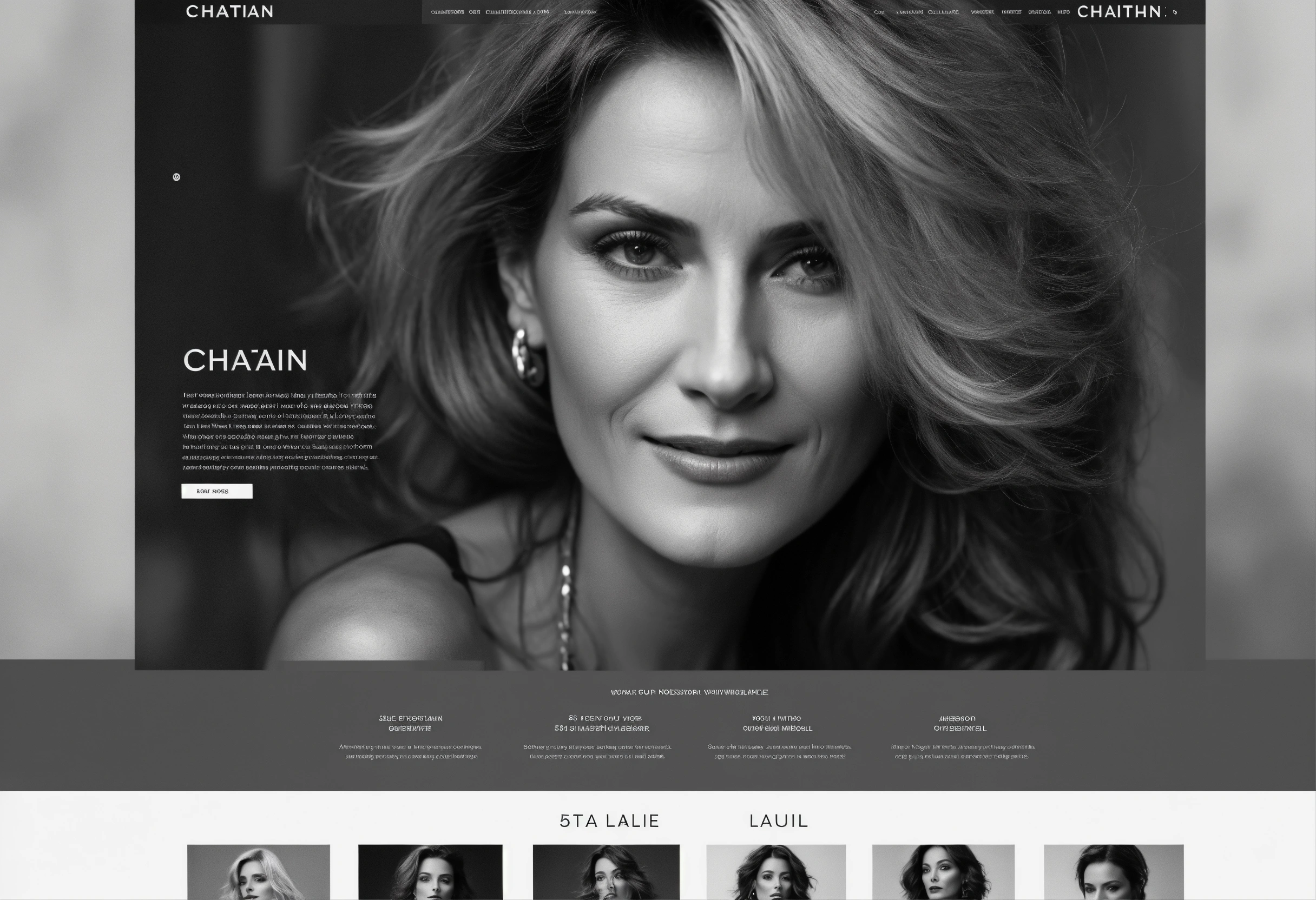 Variant, website template, online portfolio in black and white, with very classy 55-year-old french actress chatain fashion model, web design model representation