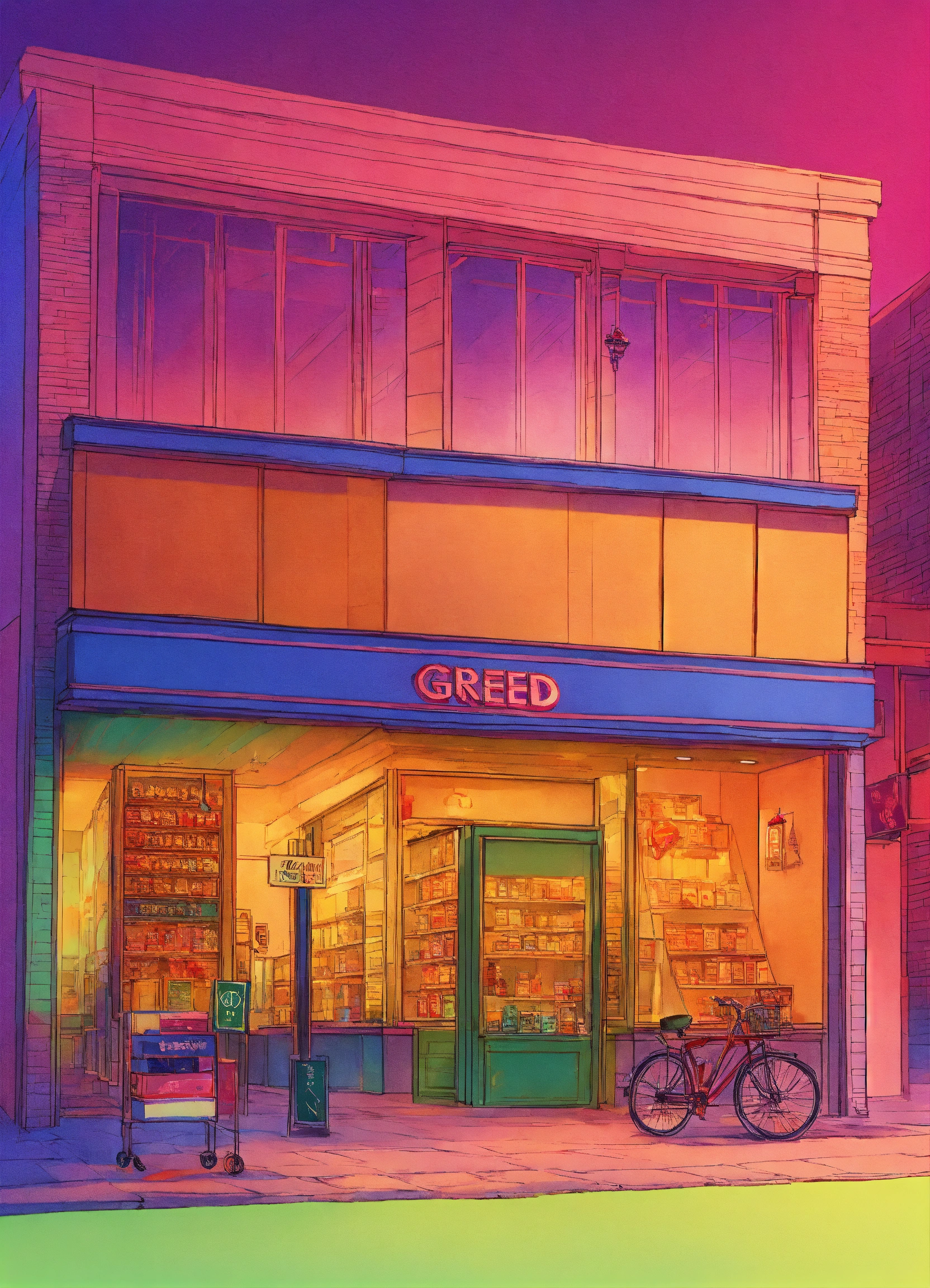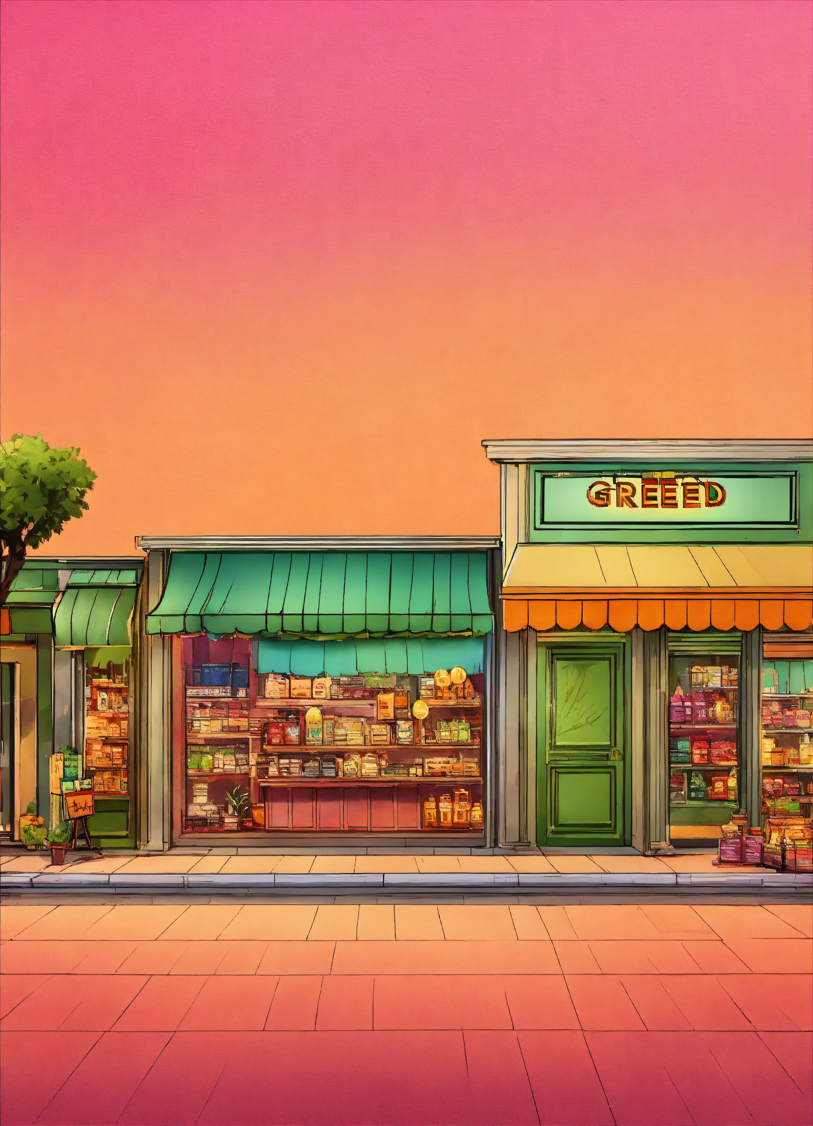 Greed shoppes with gradient background