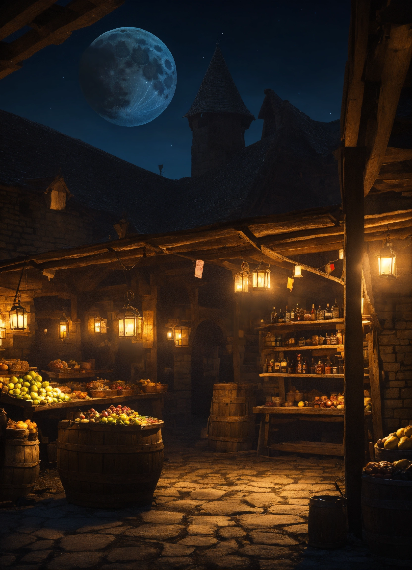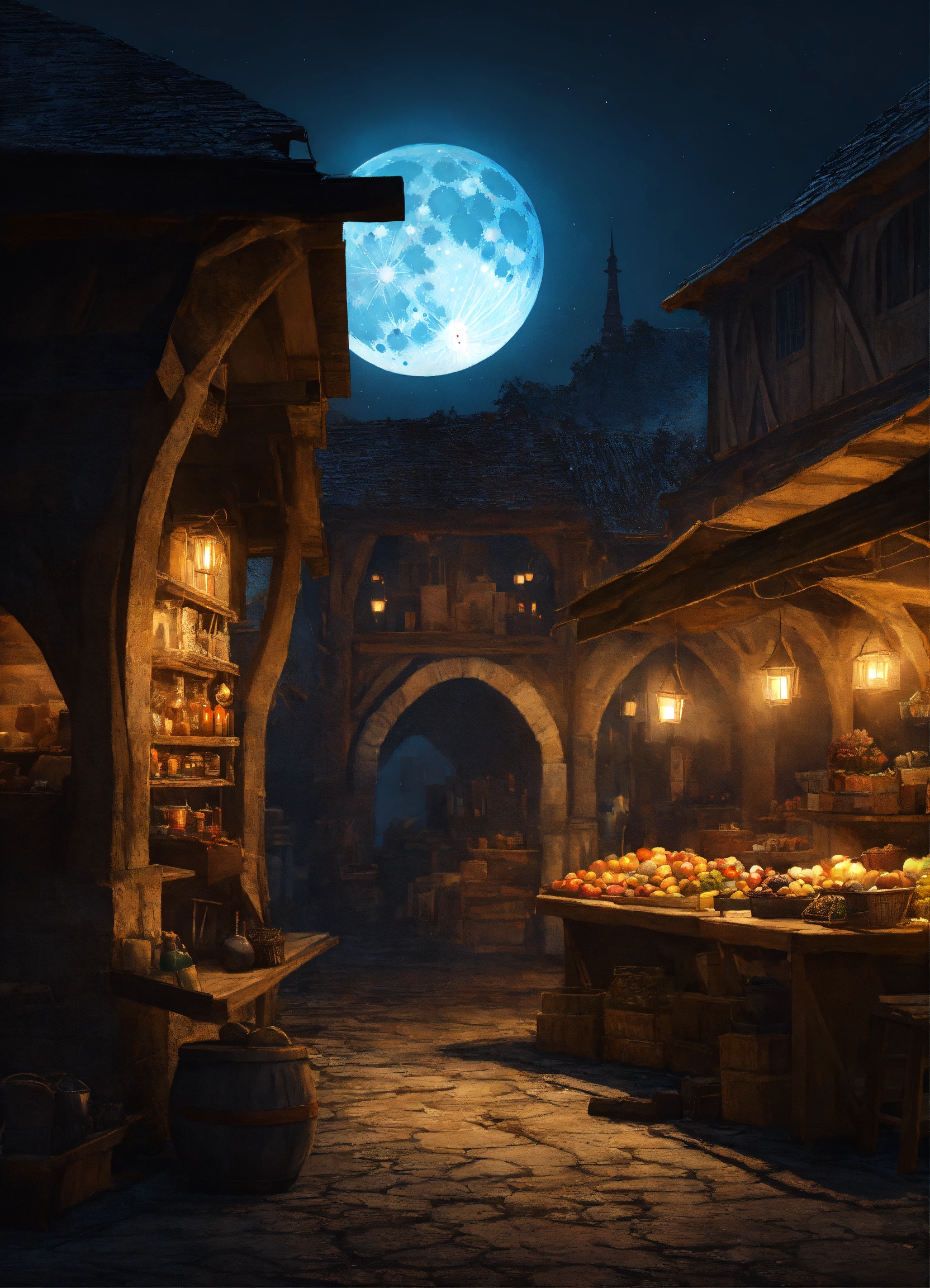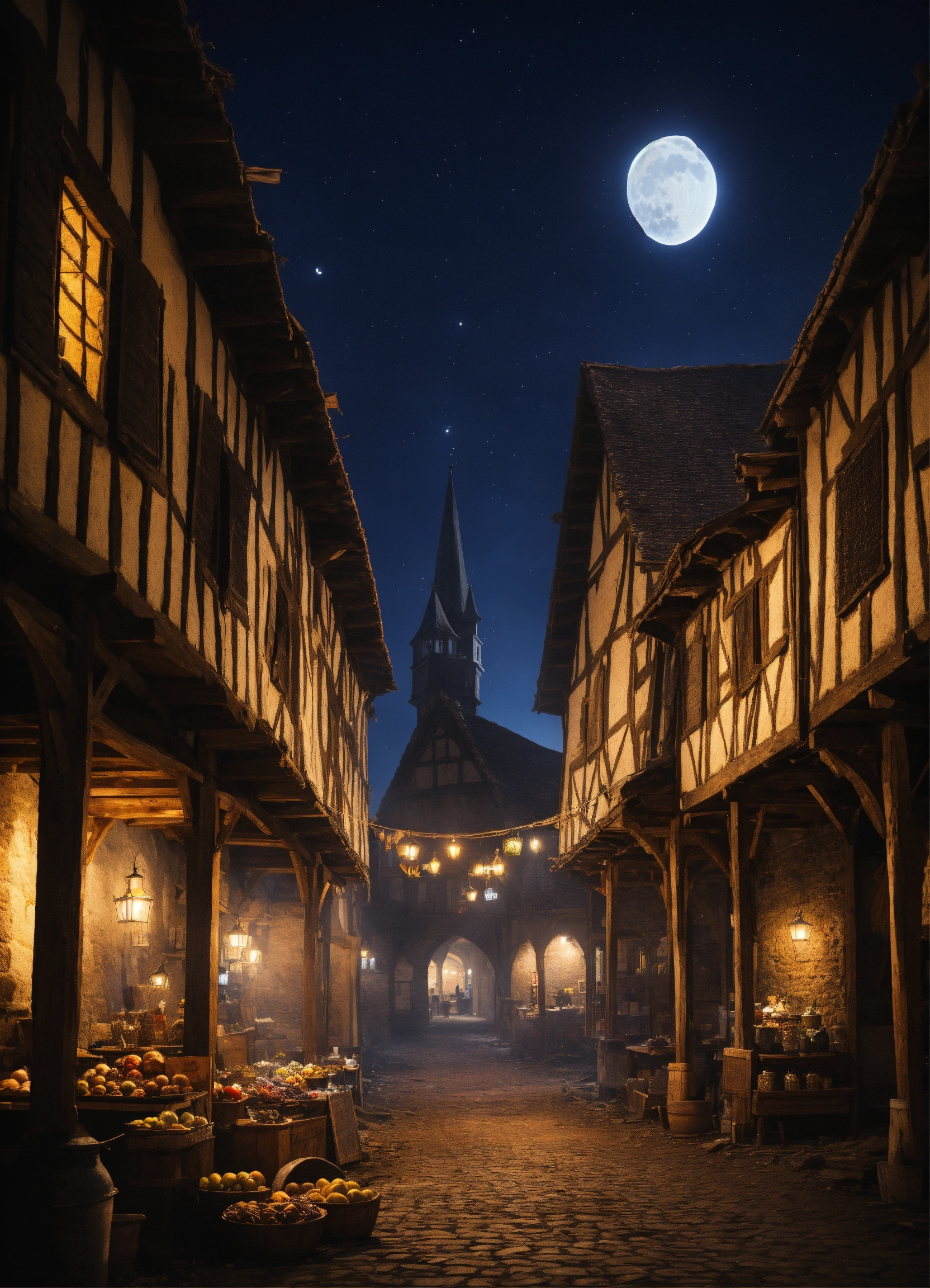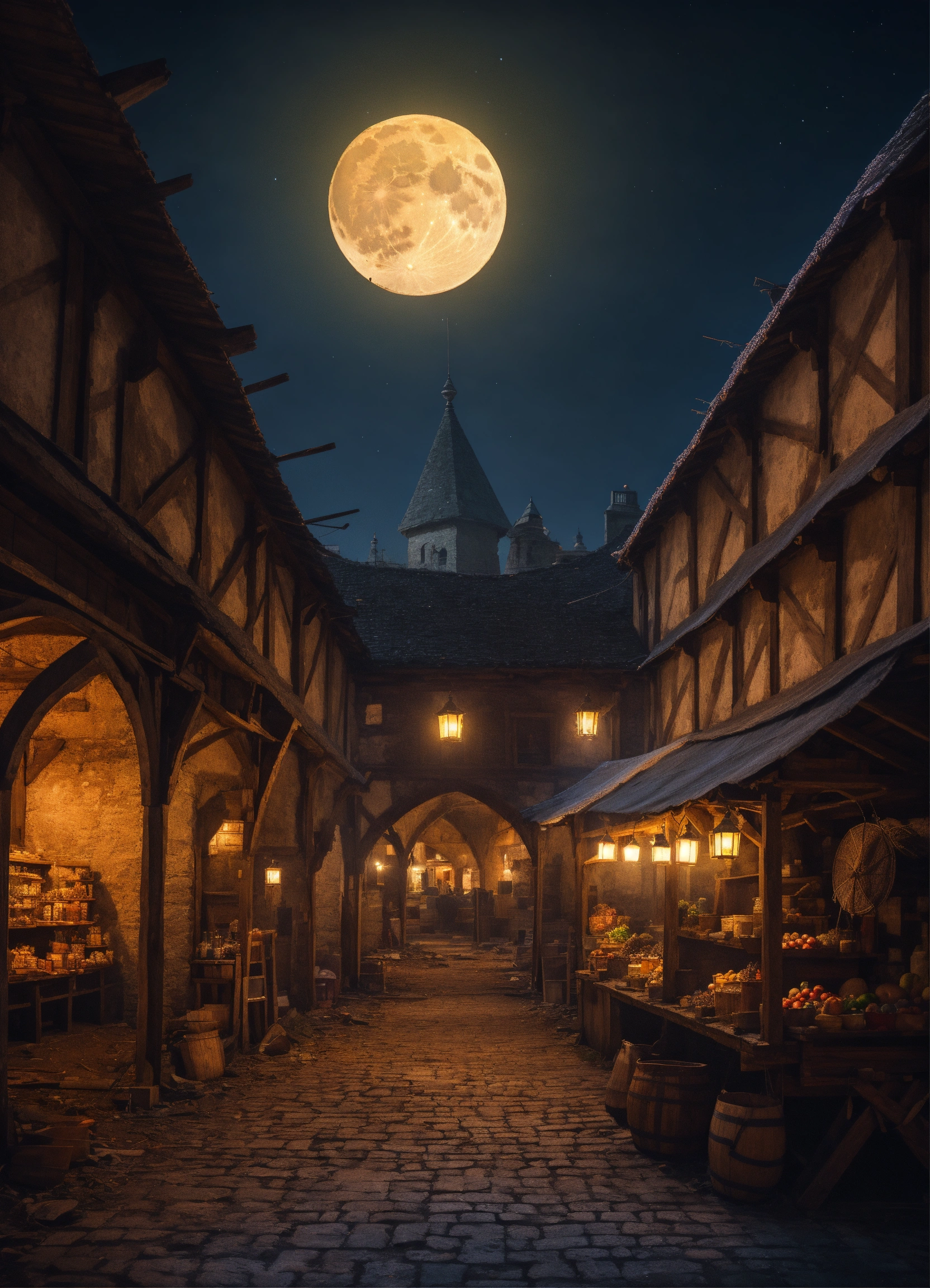 moonless medieval market at night background