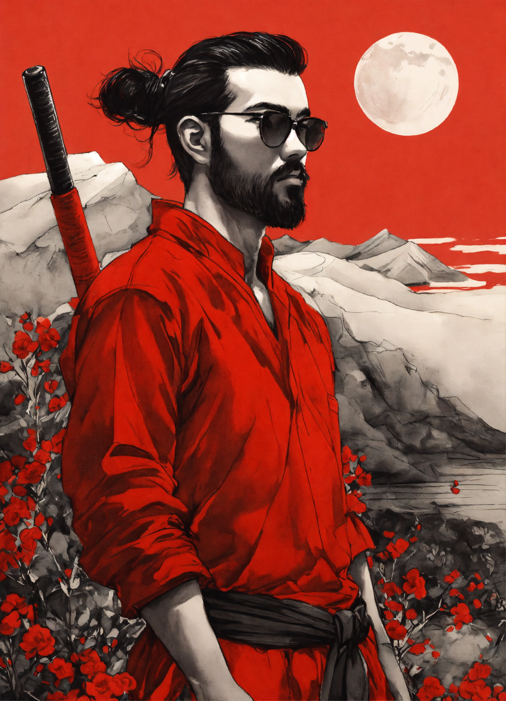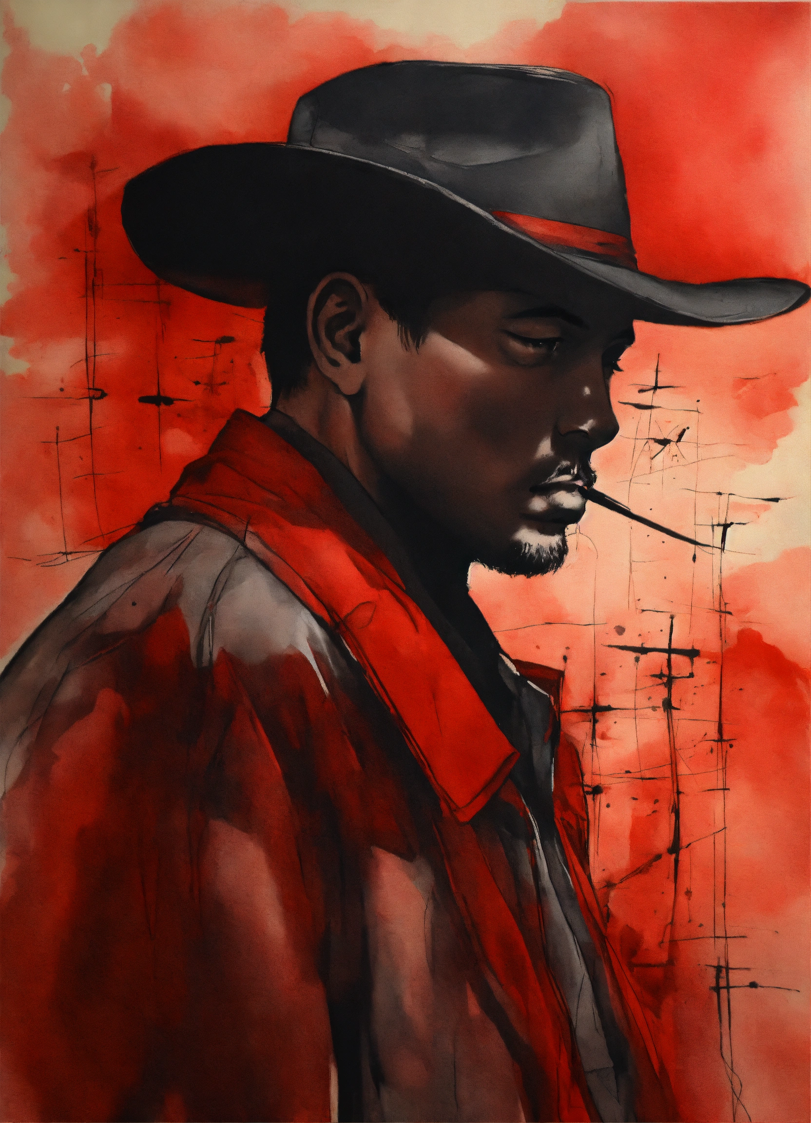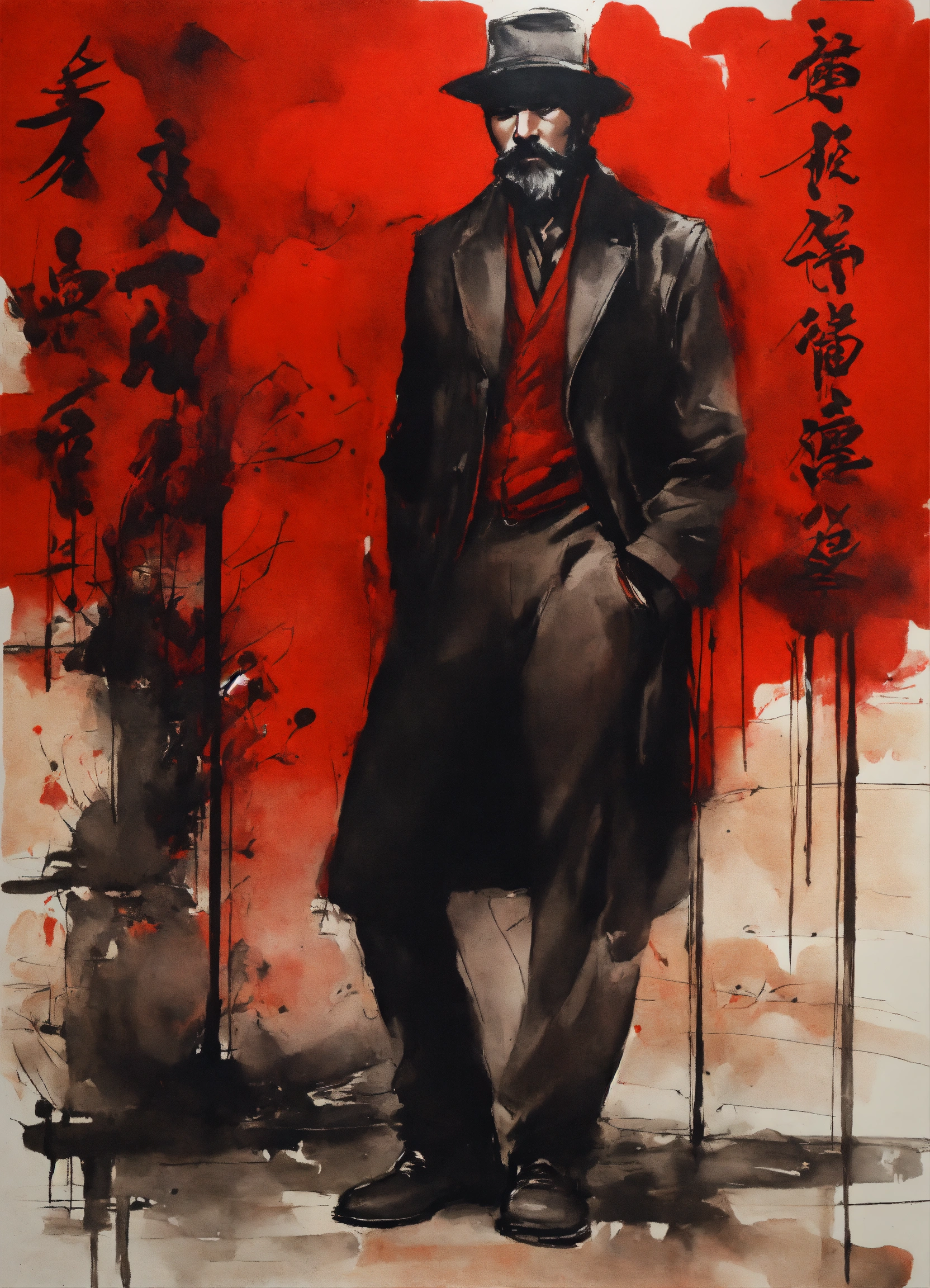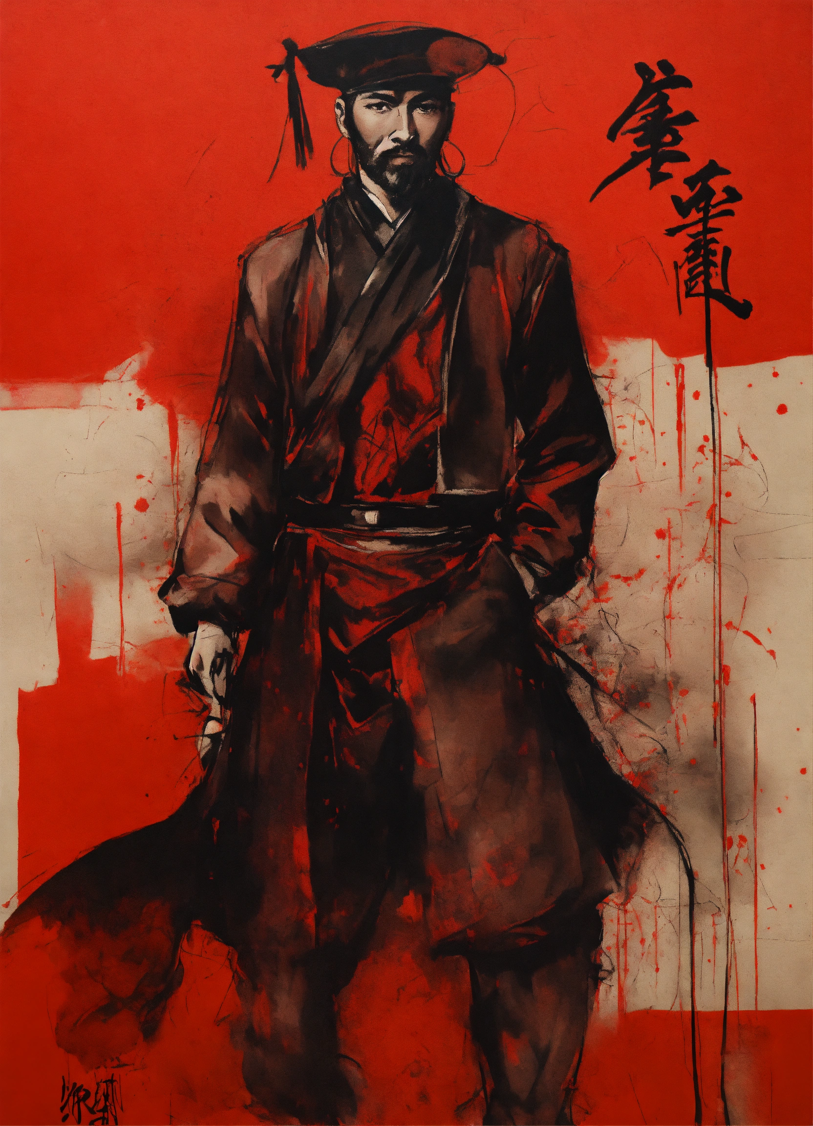 Tinta negra y roja, un hombre en estilo chino, arte en tinta de mschiffer, boceto caprichoso y aproximado, (boceto1.3)