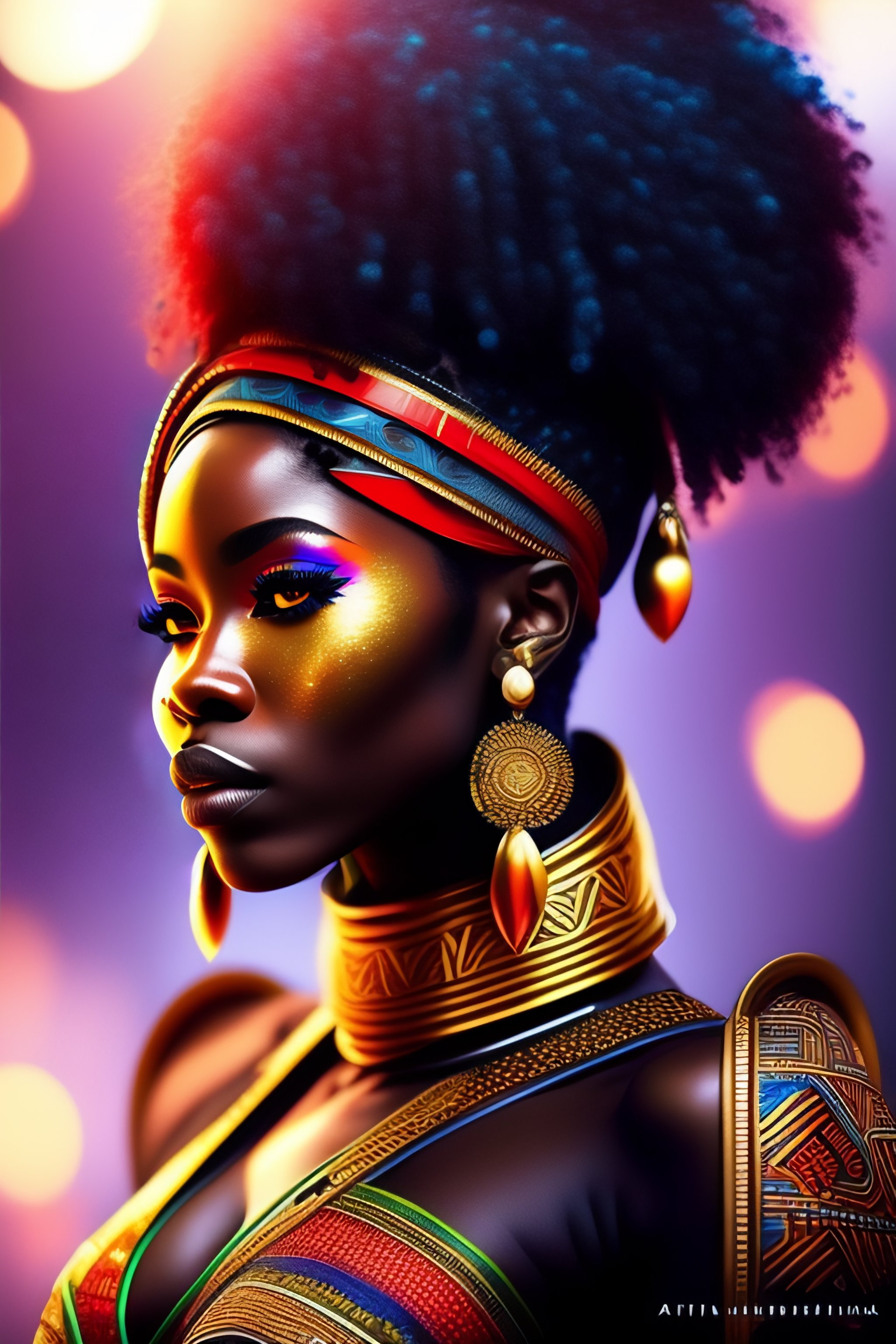 Ultra realistic african warrior fantastically detailed reflecting eyes modern anime style art massive detailed ((((((robot)))))) celestial armour, beam sword, missile, shoulder cannon, vtuber cyberpunk, {{{{{chibi}}}}}, character focus, {{small human}}, {{deformed}}, african masquerade, retro design, massai, intricate tribal adrinka patterns, heavy ankara cloth influence