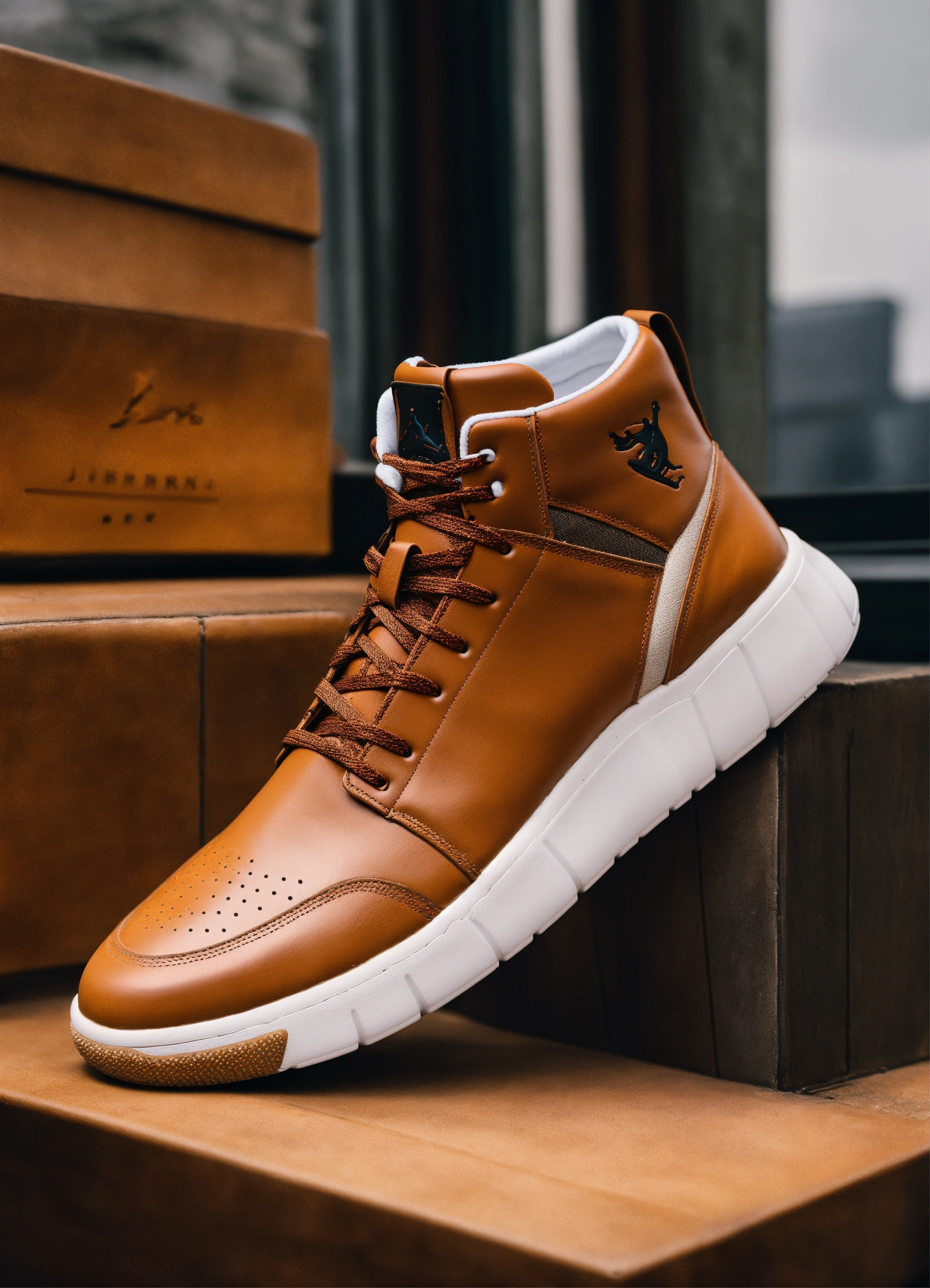 A modern and fancy sneaker with a new and comfort, chunk style, use jordan’s as reference, do gentleman concept