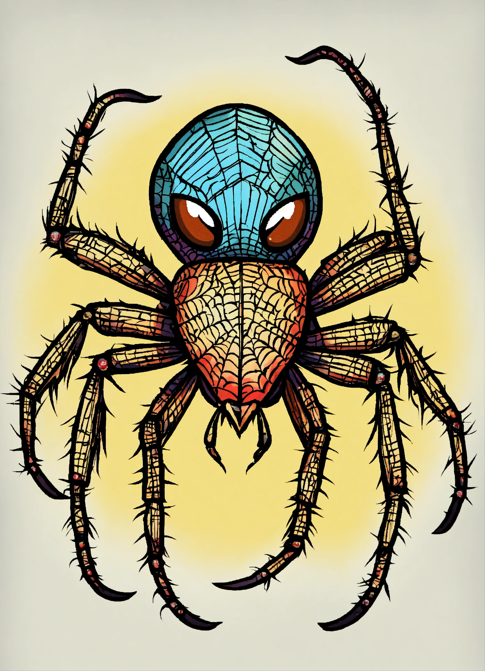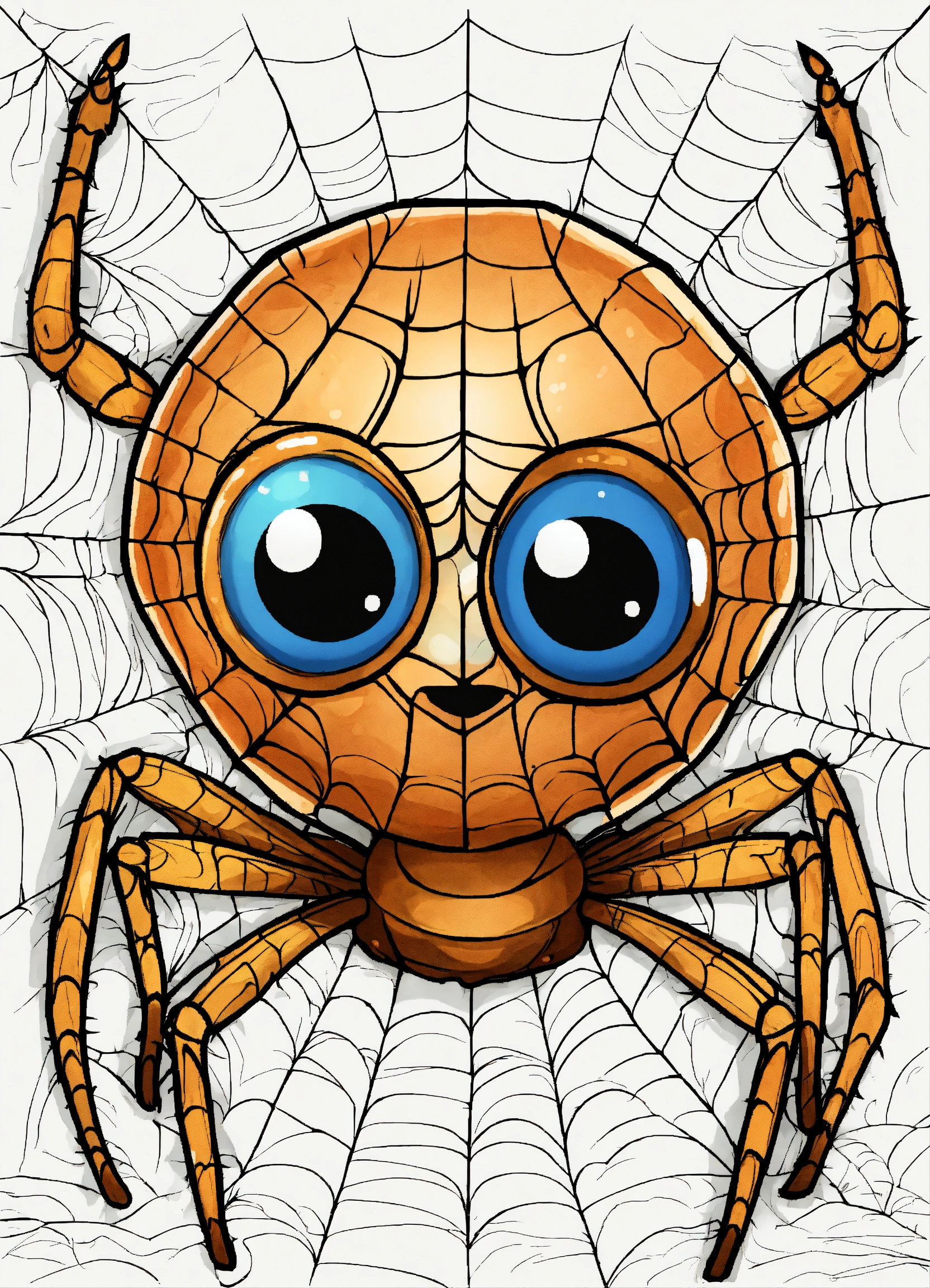 Generate a cute spider of the selve, 4k resolution, cartoon-sticker style with clear lines on a pure white background suitable for a children's coloring book.