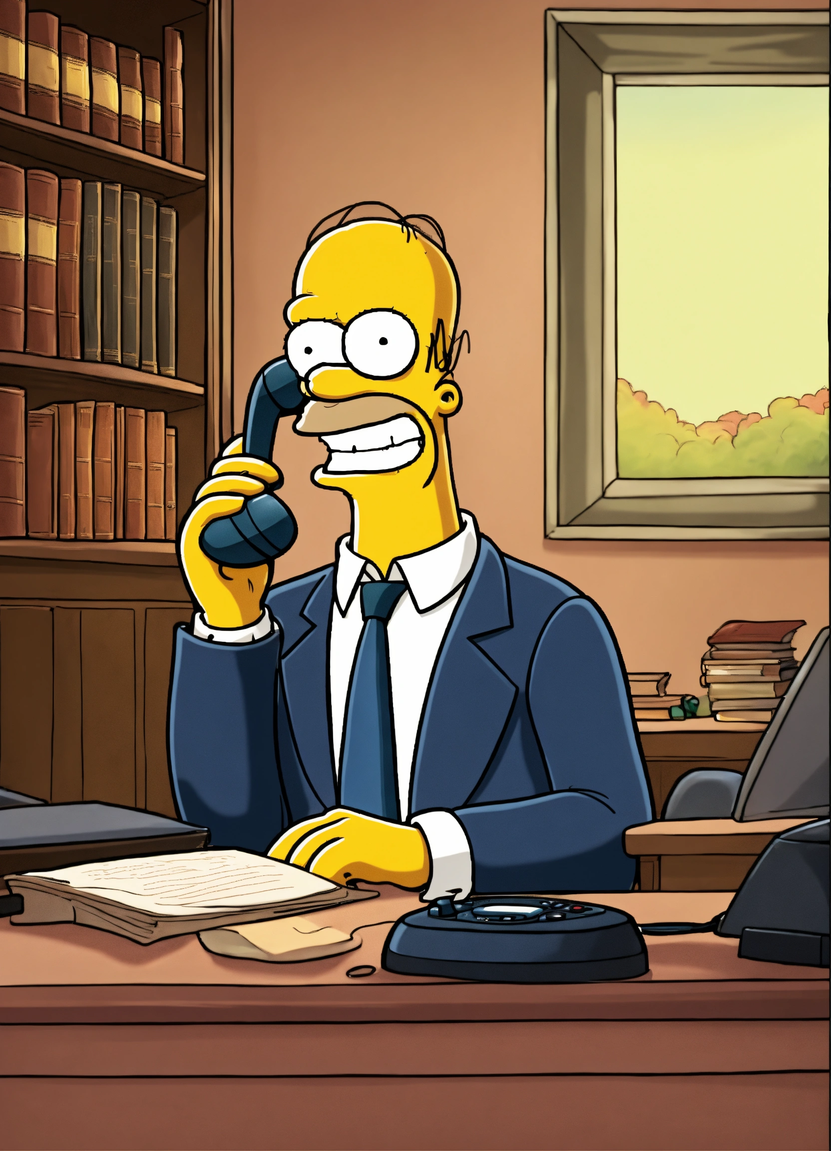 Lawyer from the simpsons cartoon laughing and talking on the phone