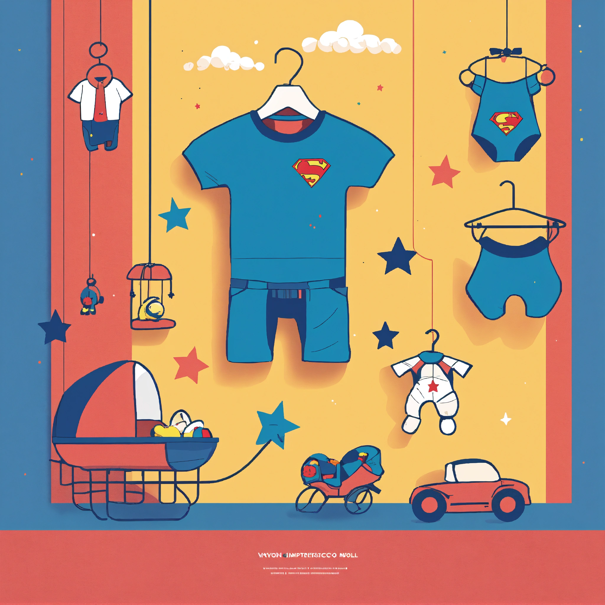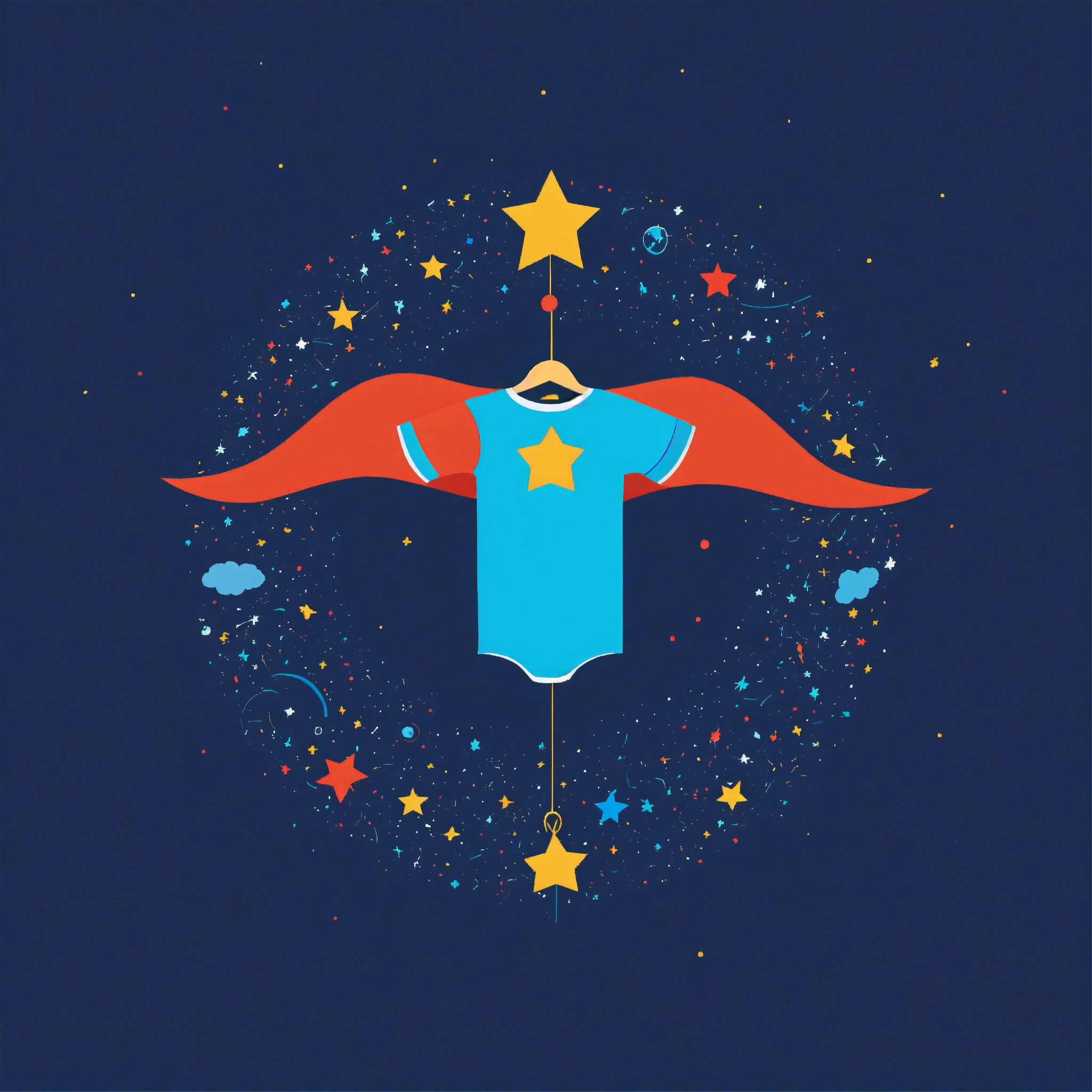 T-shirt vector illustration, centered design of a minimalist baby mobile with tiny superhero silhouettes, encouraging little ones to dream big. simplistic, centered vector illustration, solid background color.