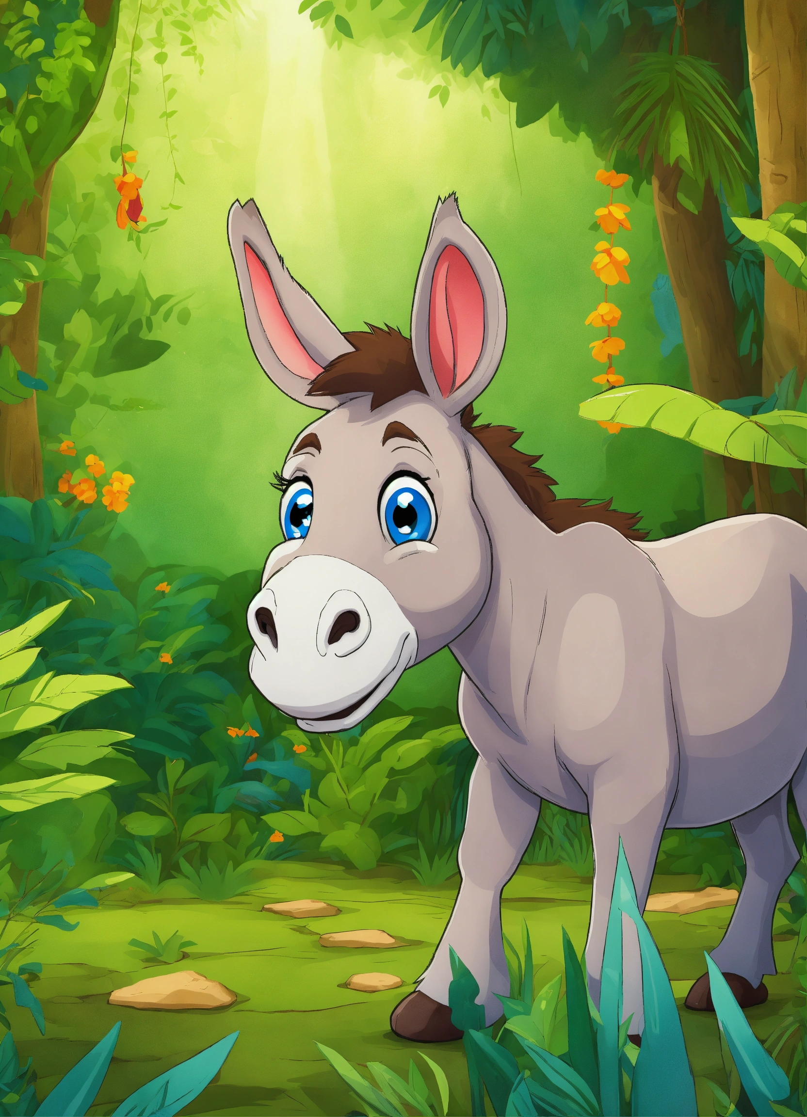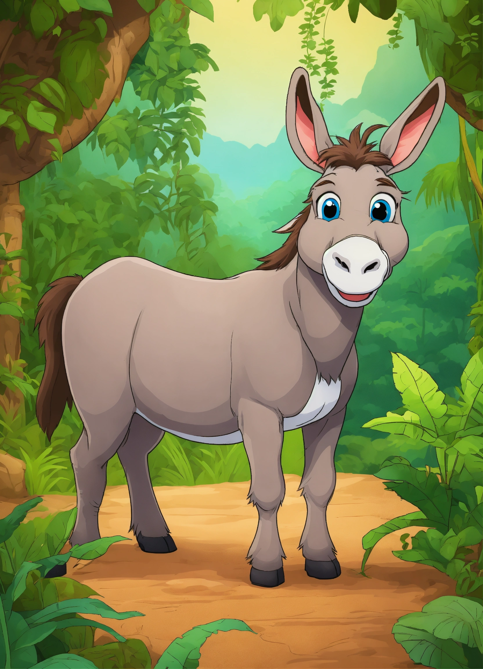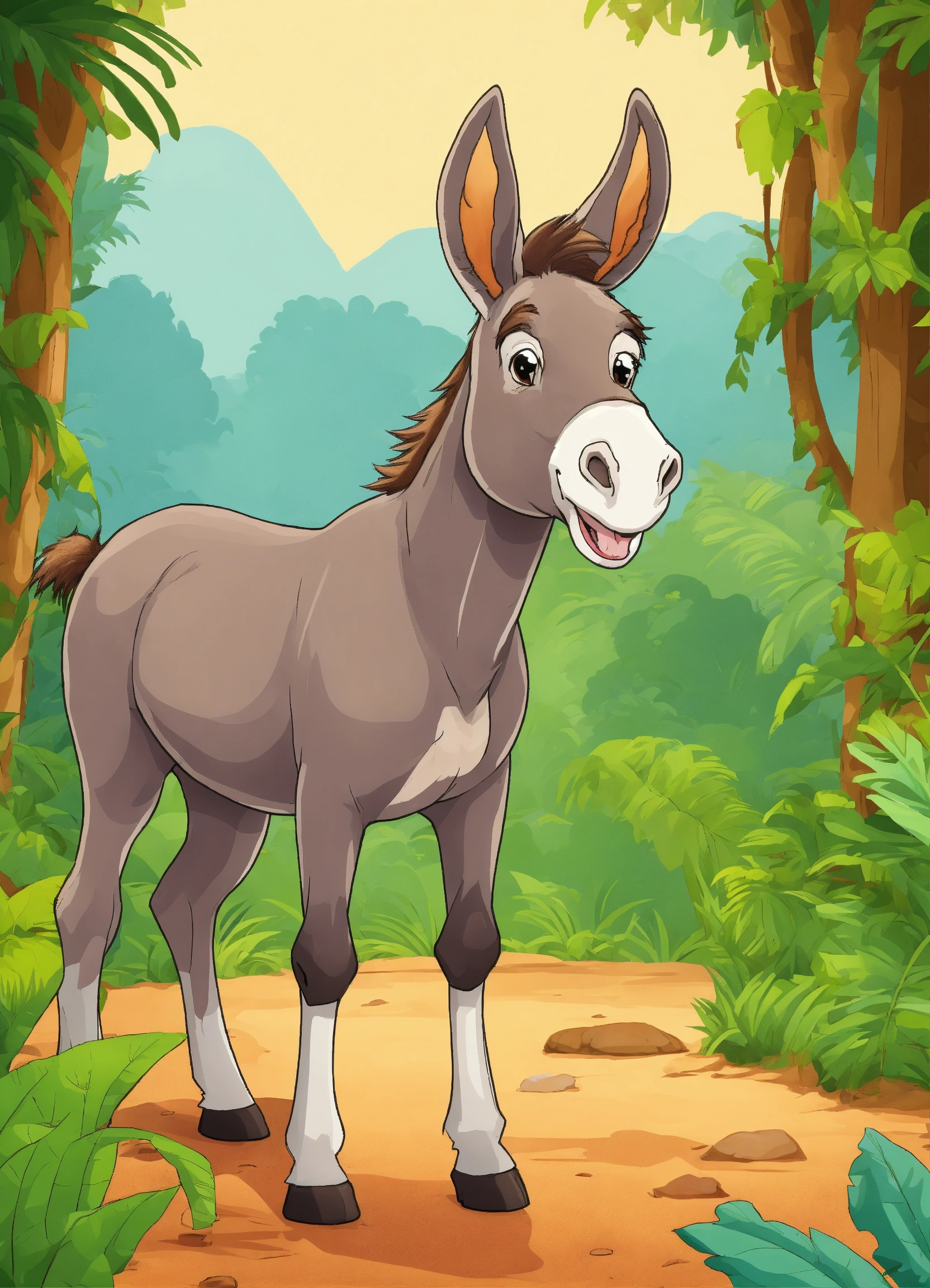 Cartoon single donkey watching happily in jungle