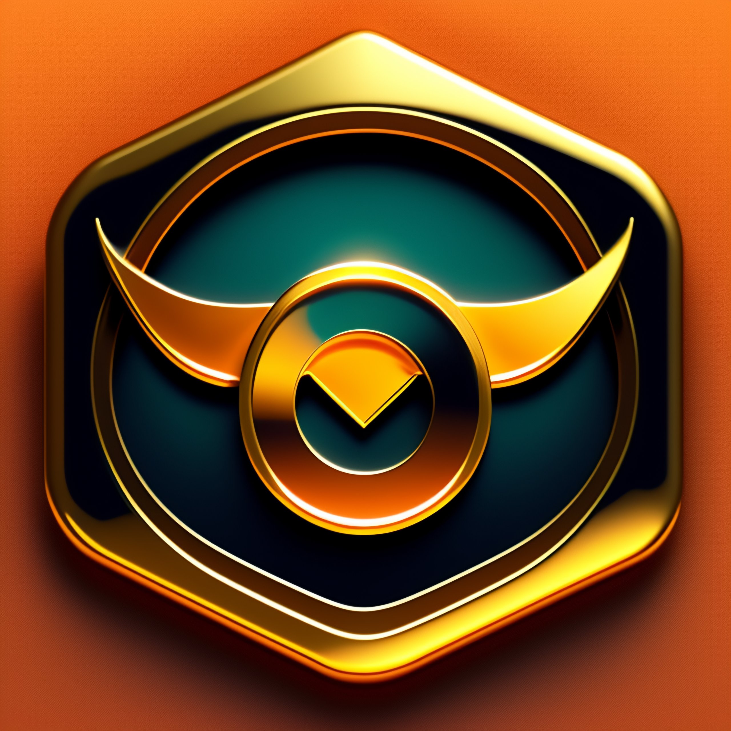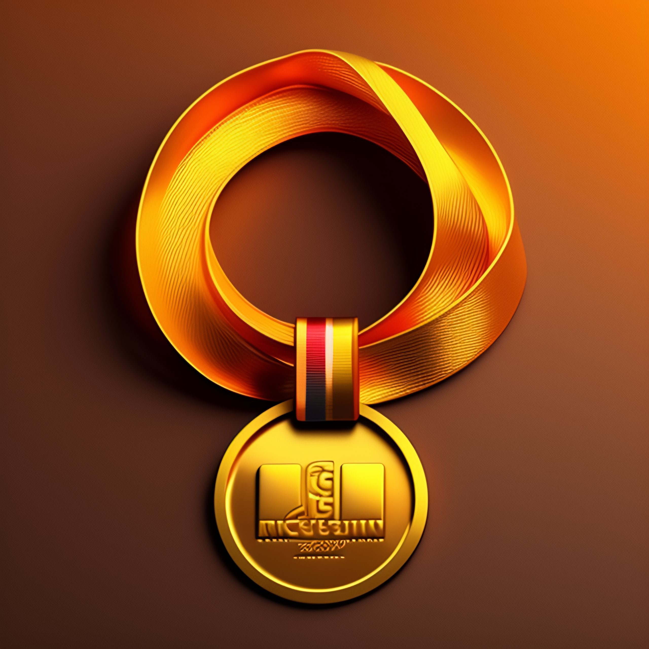 An gold medal recognition with ribbon, orange color tones background, stylized digital illustration video game icon artstation