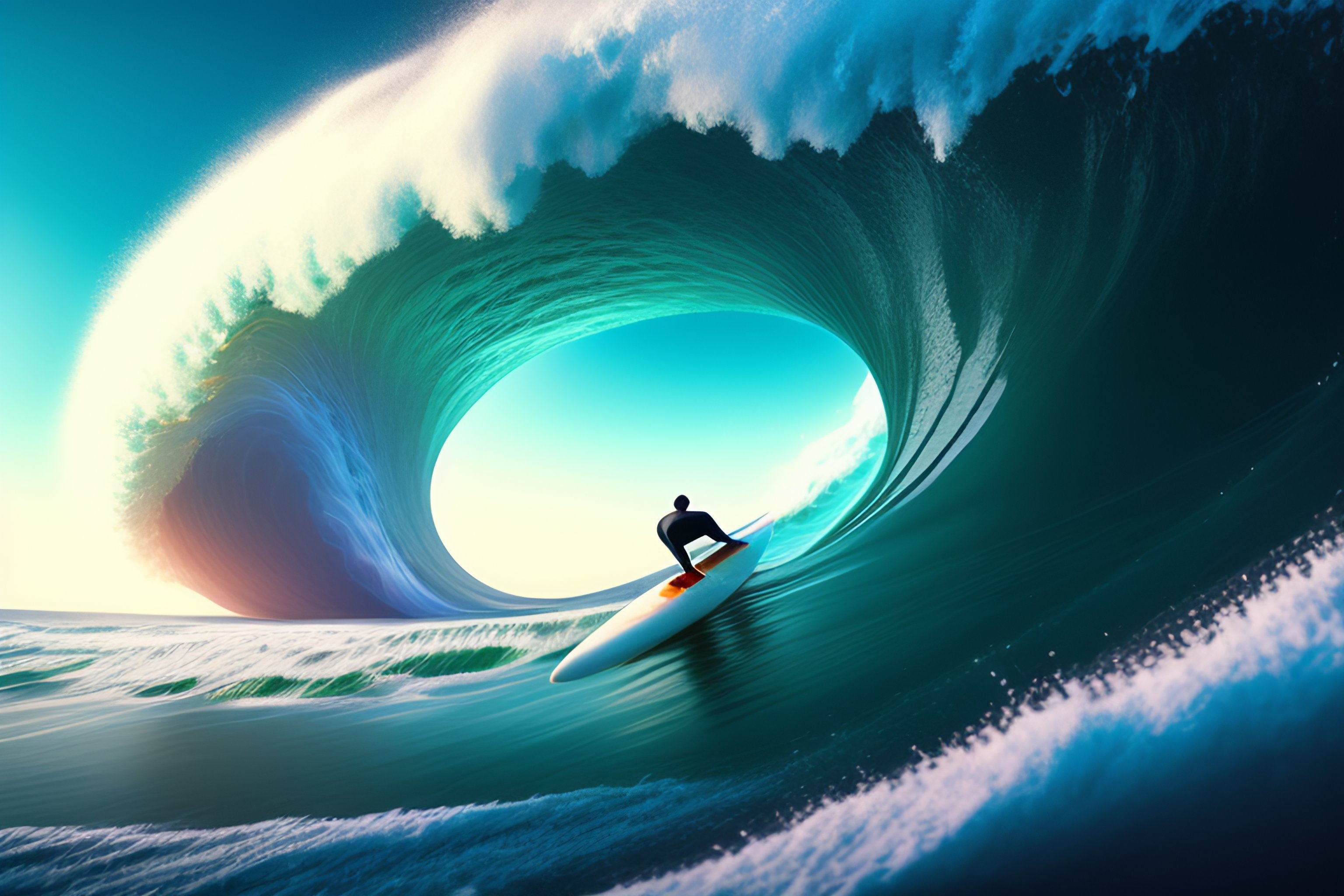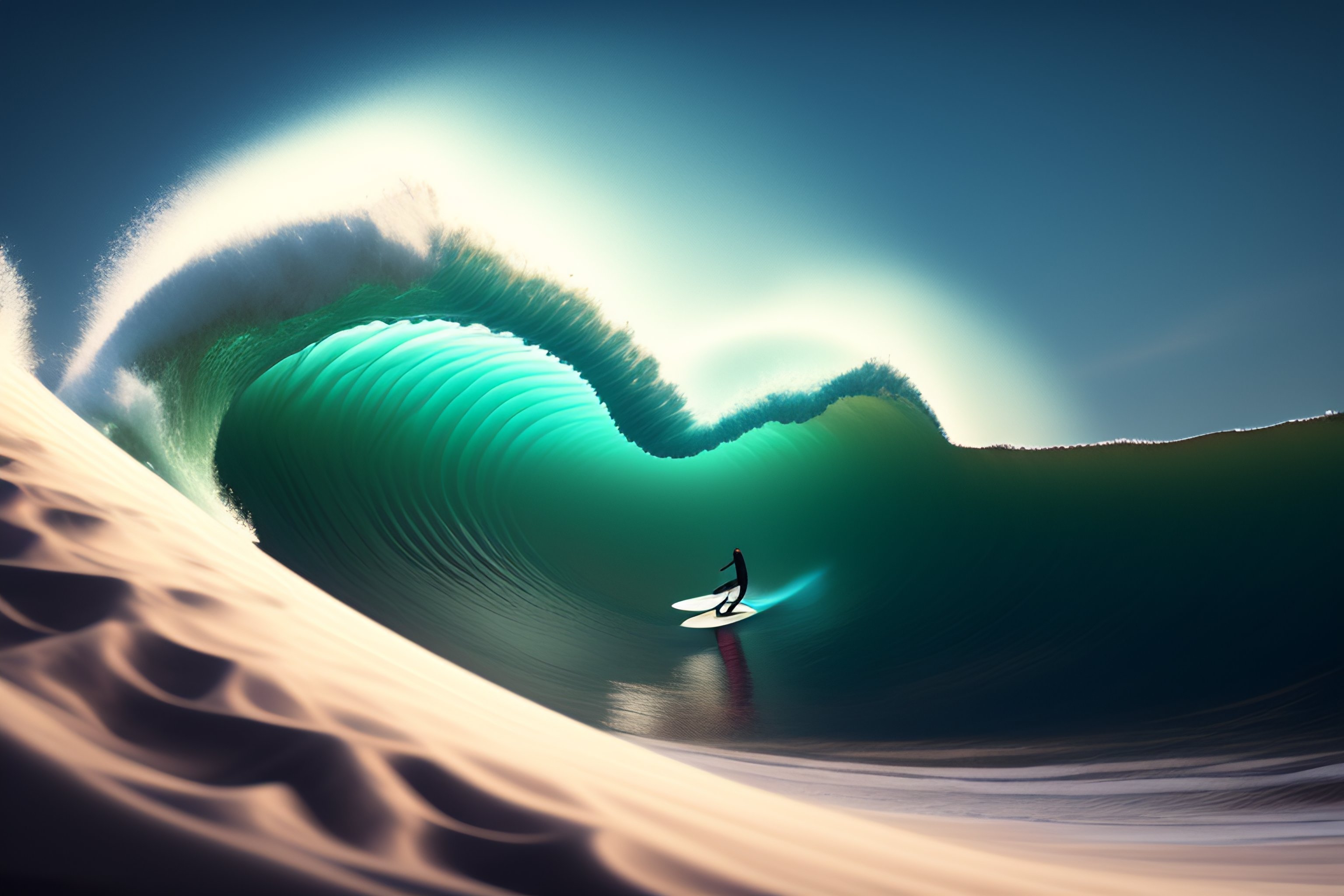 A surrealist depiction of a web developer surfing on a giant code wave, rendered in the style of stefan gierowski or seb mckinnon. the image is full of imaginative, otherworldly elements, with the code wave taking on a life of its own and the developer seemingly suspended in a dreamlike state. the overall effect is one of mystery and wonder, inviting the viewer to marvel at the limitless potential of coding.