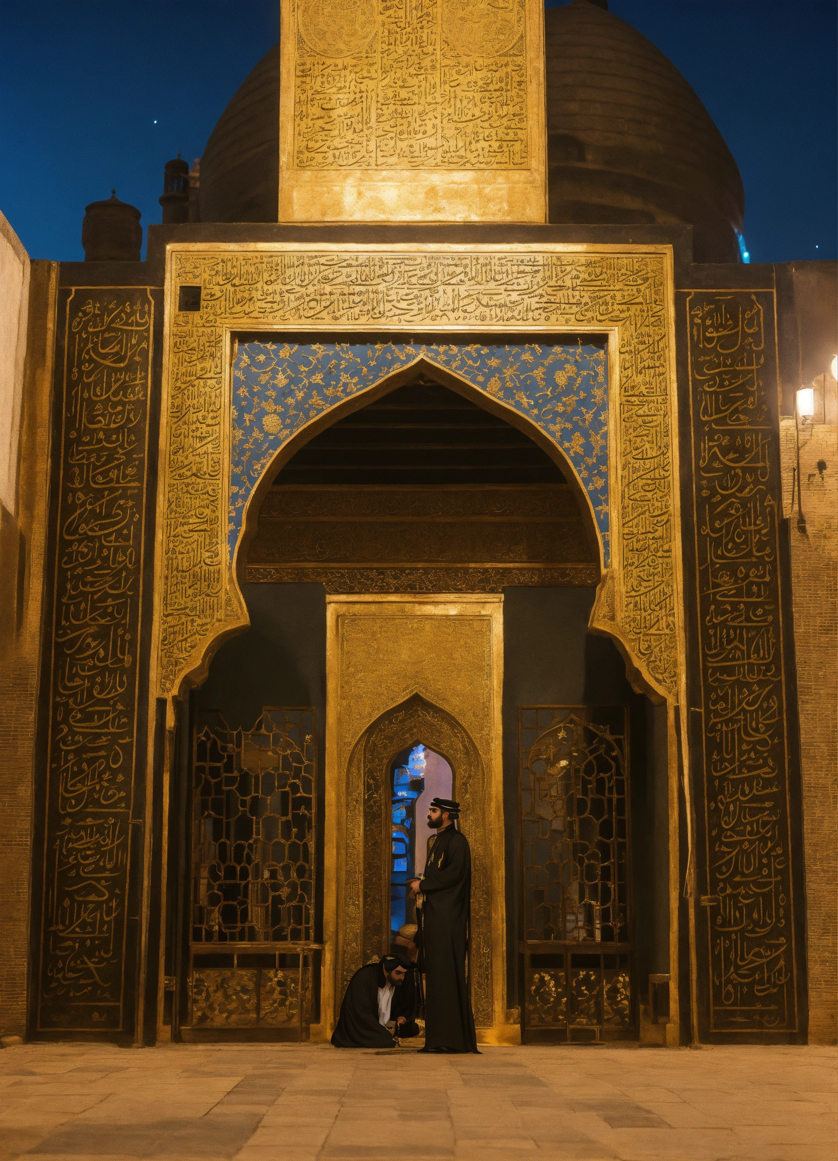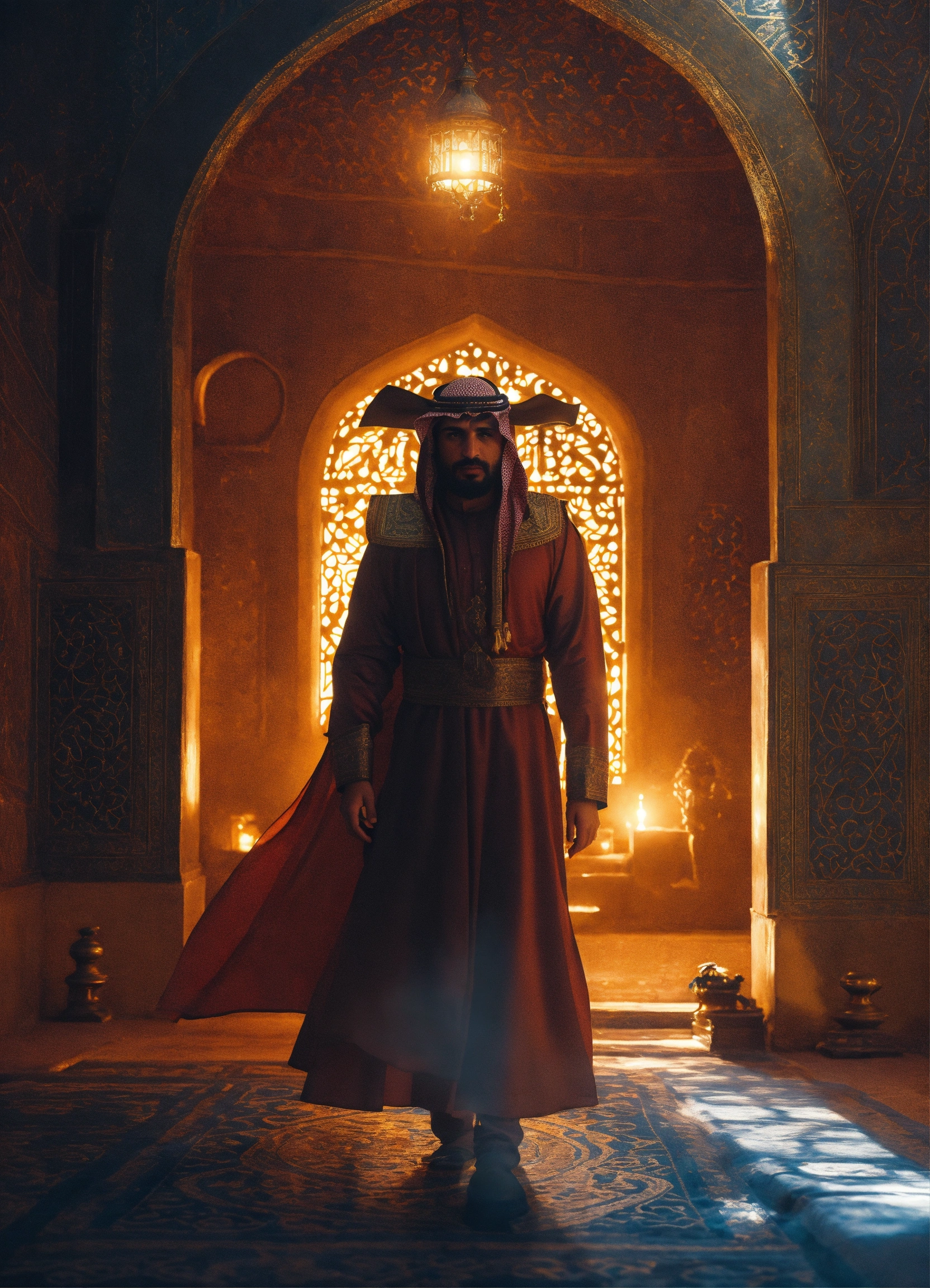 شخصية تقليدية يرتدي الزي العماني التقليدي الكمة العمانية والخنجر وخلفة مظاهر احتفال بالعيد الوطني العماني 53 والقلاع والحصون والانارات في الشوارع بالوان العلم الابيض والاحمر والاخضر والعاب نارية بالوان العلم الابيض والاخضر والاحمر وشباب عمانيين وسيارات بارقام عمانية في الشوارع مسرورة
