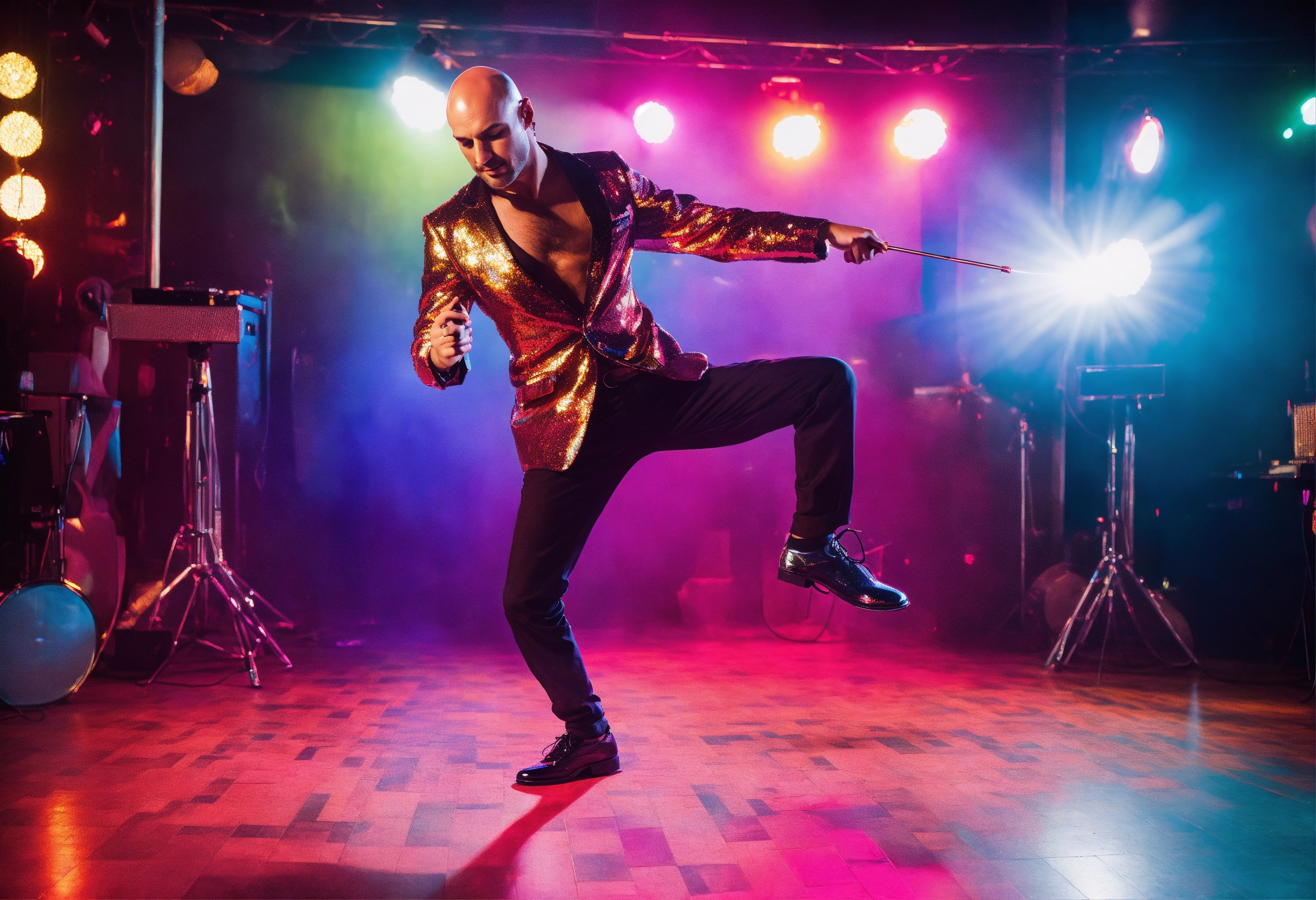 Man, style disco dancer, twirling, bald