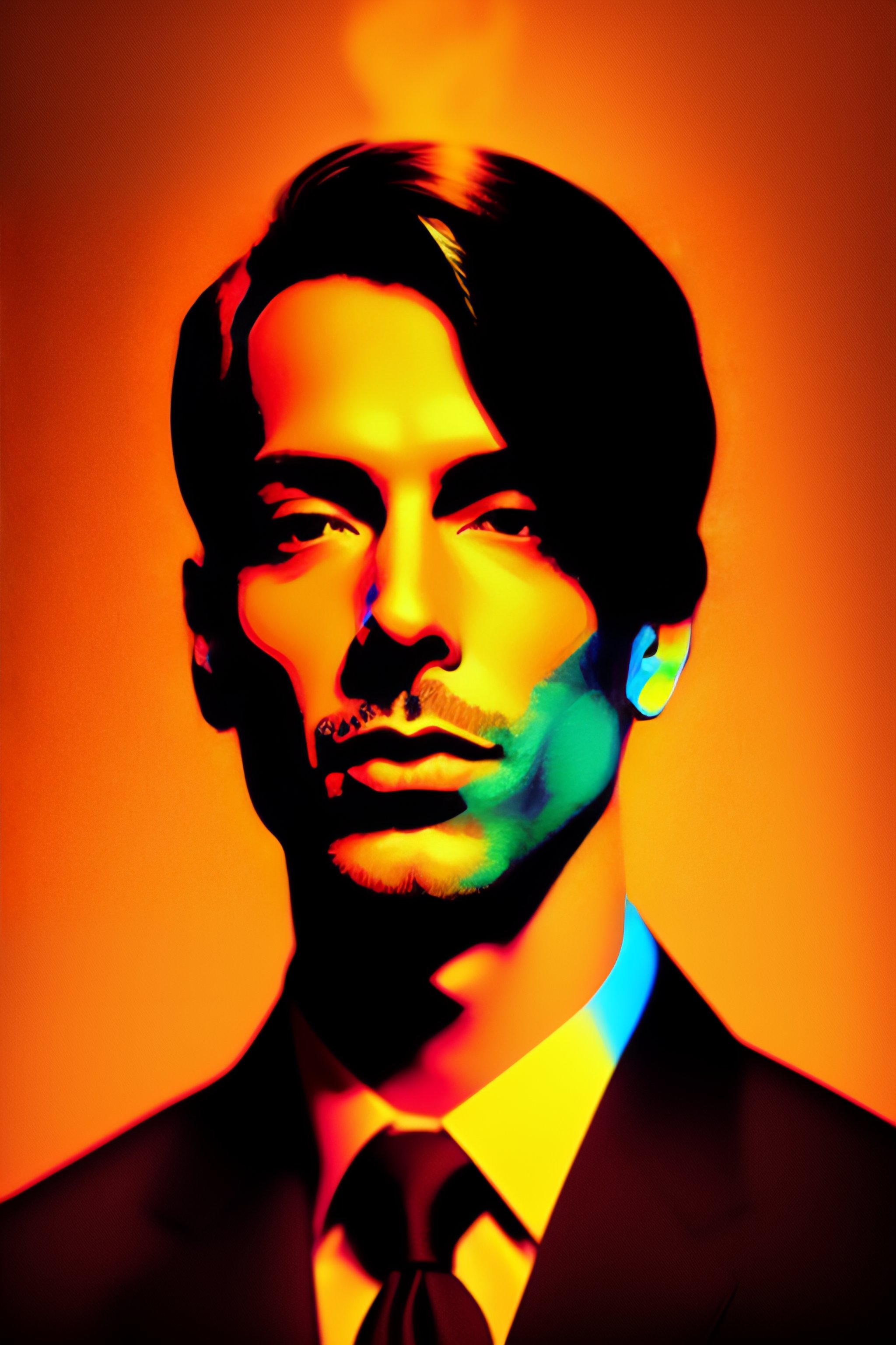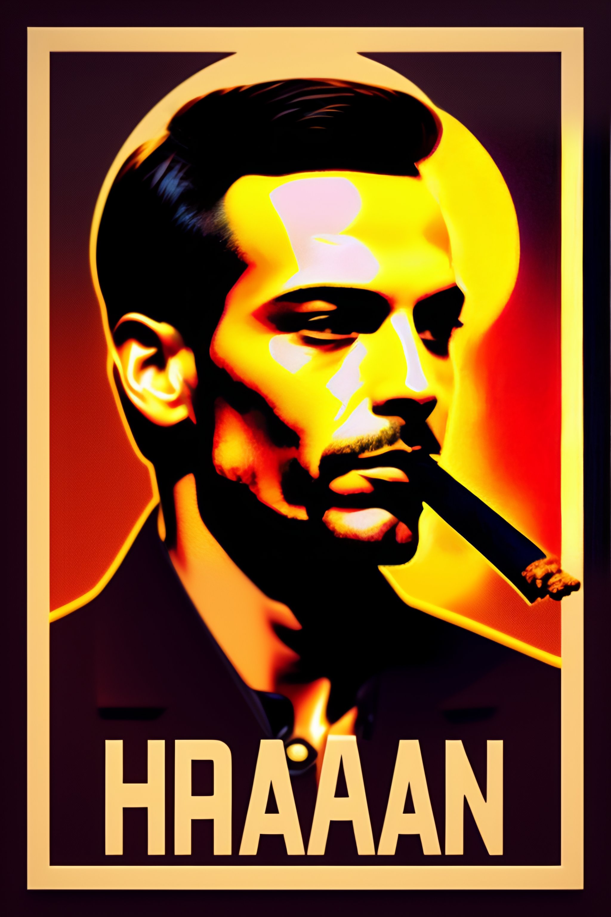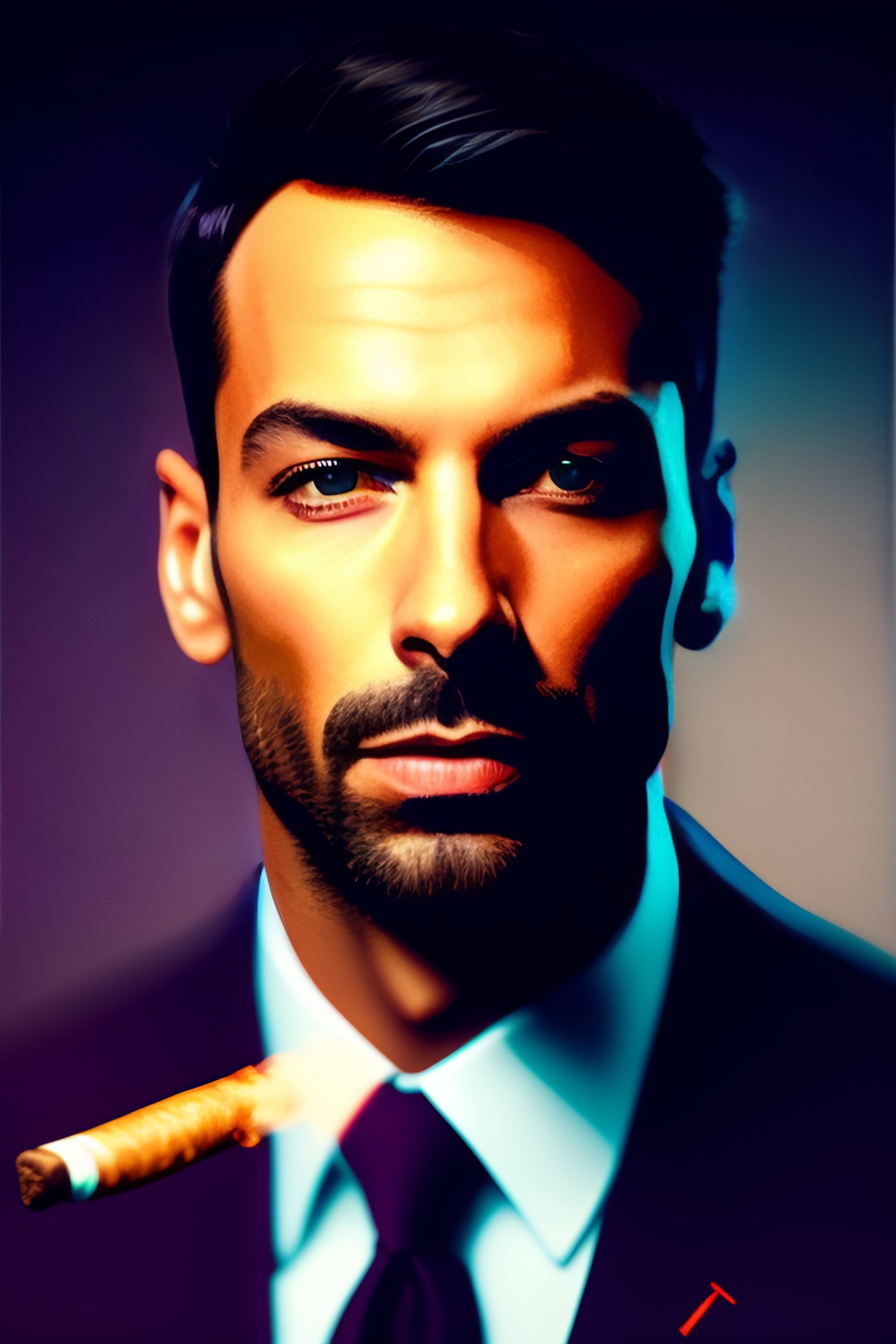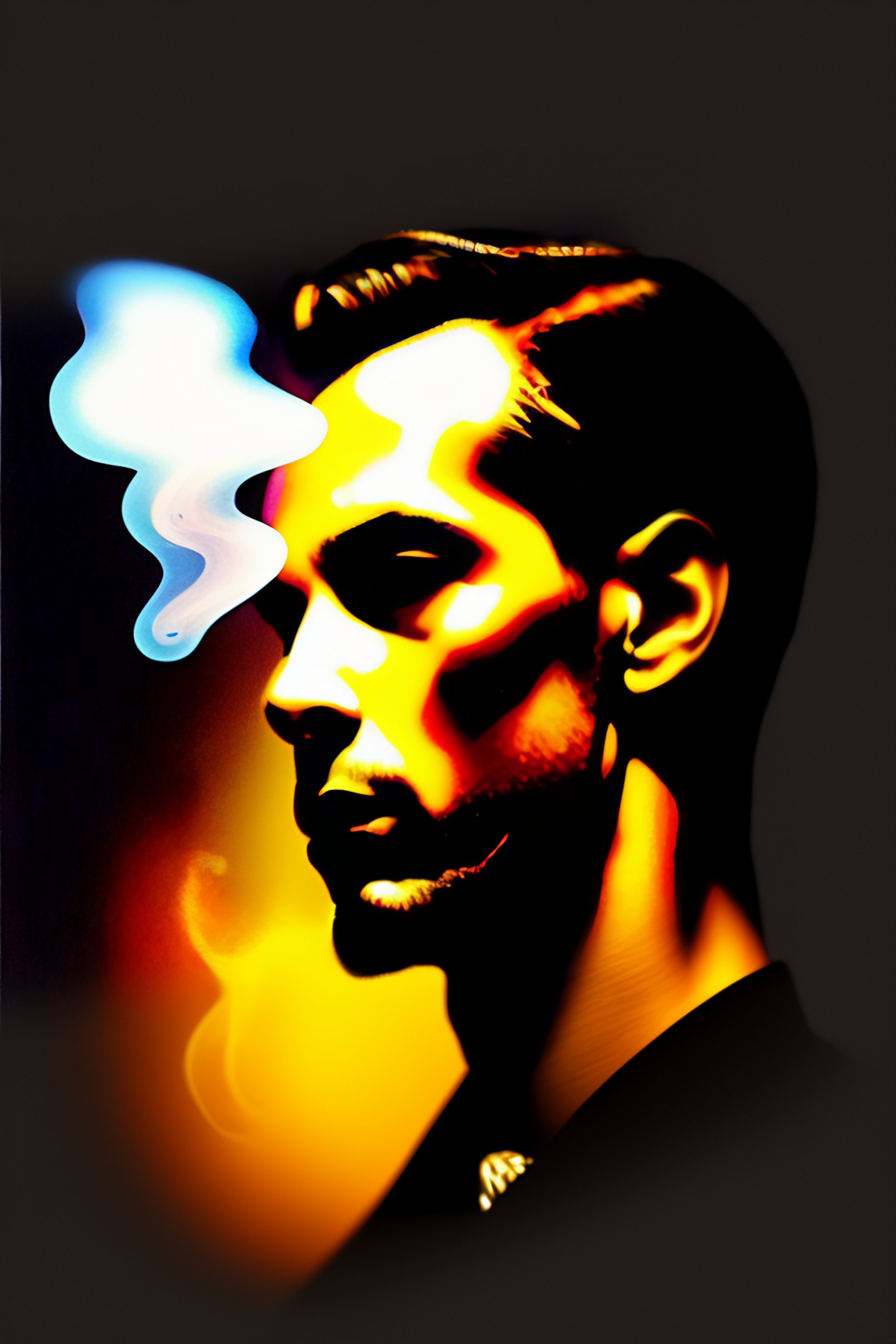 A transparent silhouette of andrew tate face smoking a cigar with a matrix icon behind