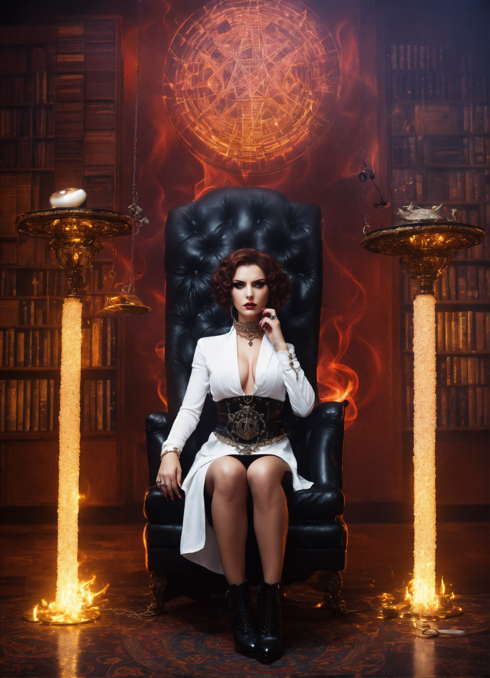 Beautiful extremely breathtaking hypnotic evil, "potent genius intellect" dominating woman, wearing holographic "white cotton arm warmers with occult black magic leather" and entrancing high heeled boots, evil diabolical satanic demonic occult powerful wicked witch corporate hypnotherapist casting a powerful hypnotizing spell with her doom gaze endora medusa eyes, working in the corporate office, becoming mindless with her powerful mind numbing words and pendant, you feel her power she exerts on your thoughts and mind, the most powerful person in the corporate office, all obey her deeply hypnotizing suggestions helpless under her extremely powerful spell, corporate office takeover is inevitable if looking into her mind controlling eyes and full shimmering lips, she swings her hypnotic pendant as you fall under her evil black widow mind control spell so easily, mesmerizing jewelry on her fingers