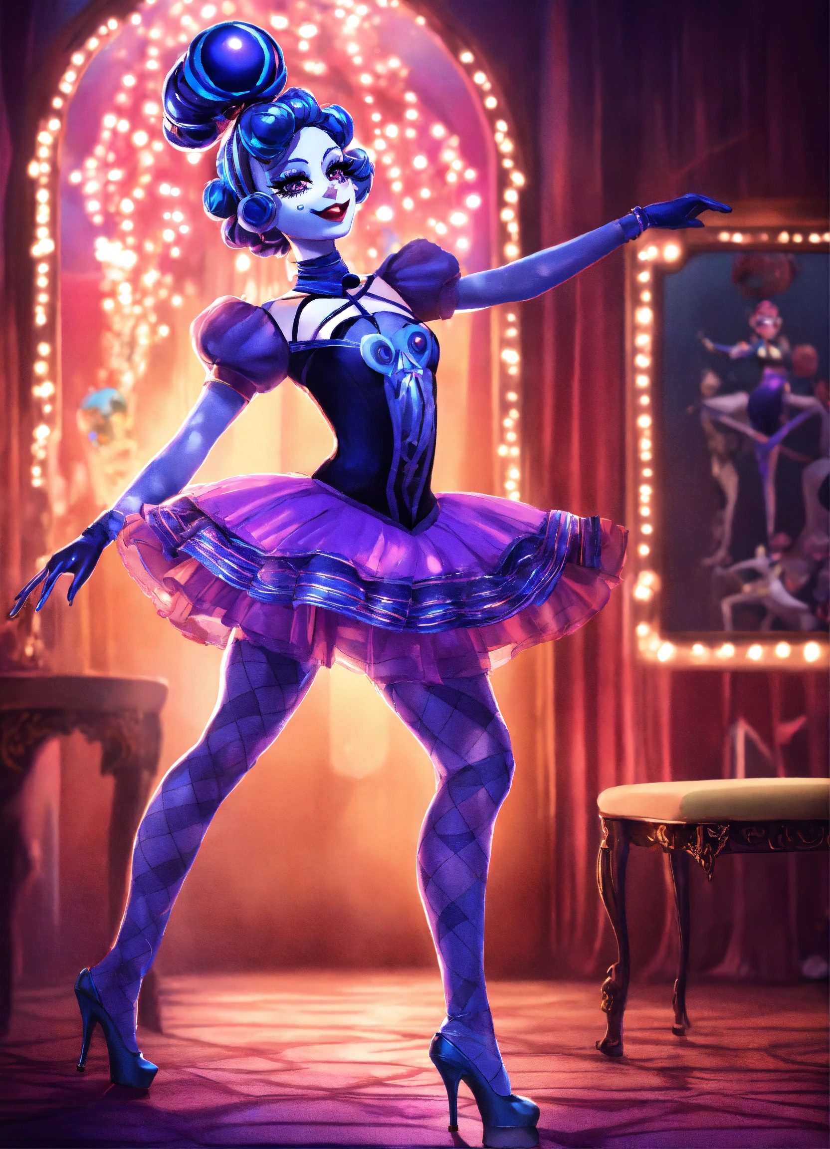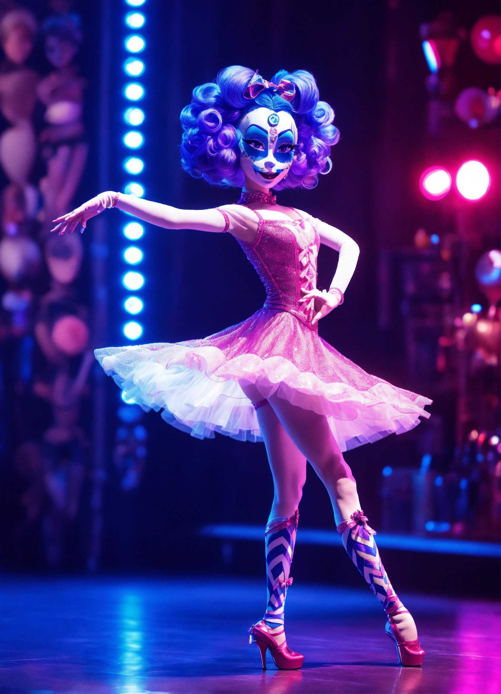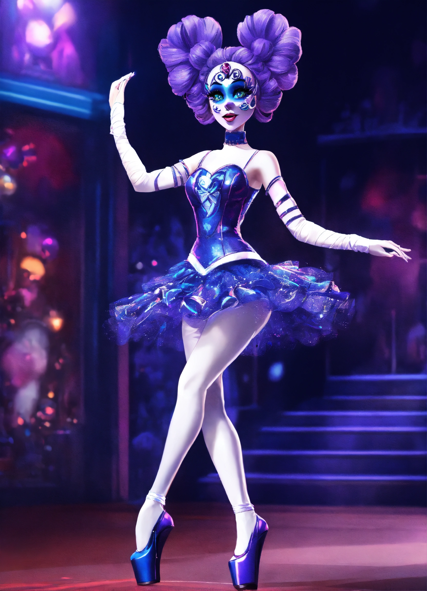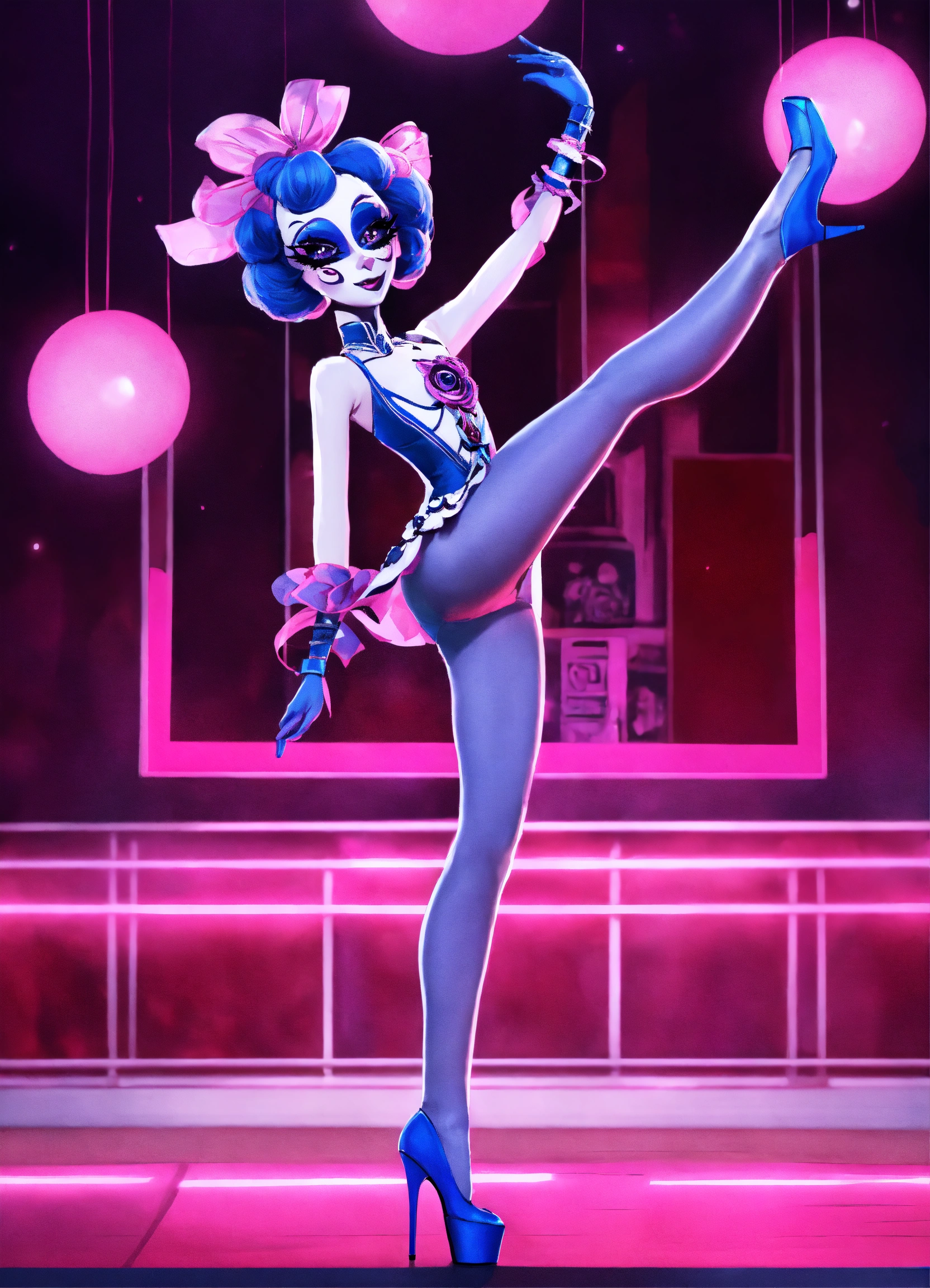Ballora from sister location full body long eyelashes platform high heels doing ballet