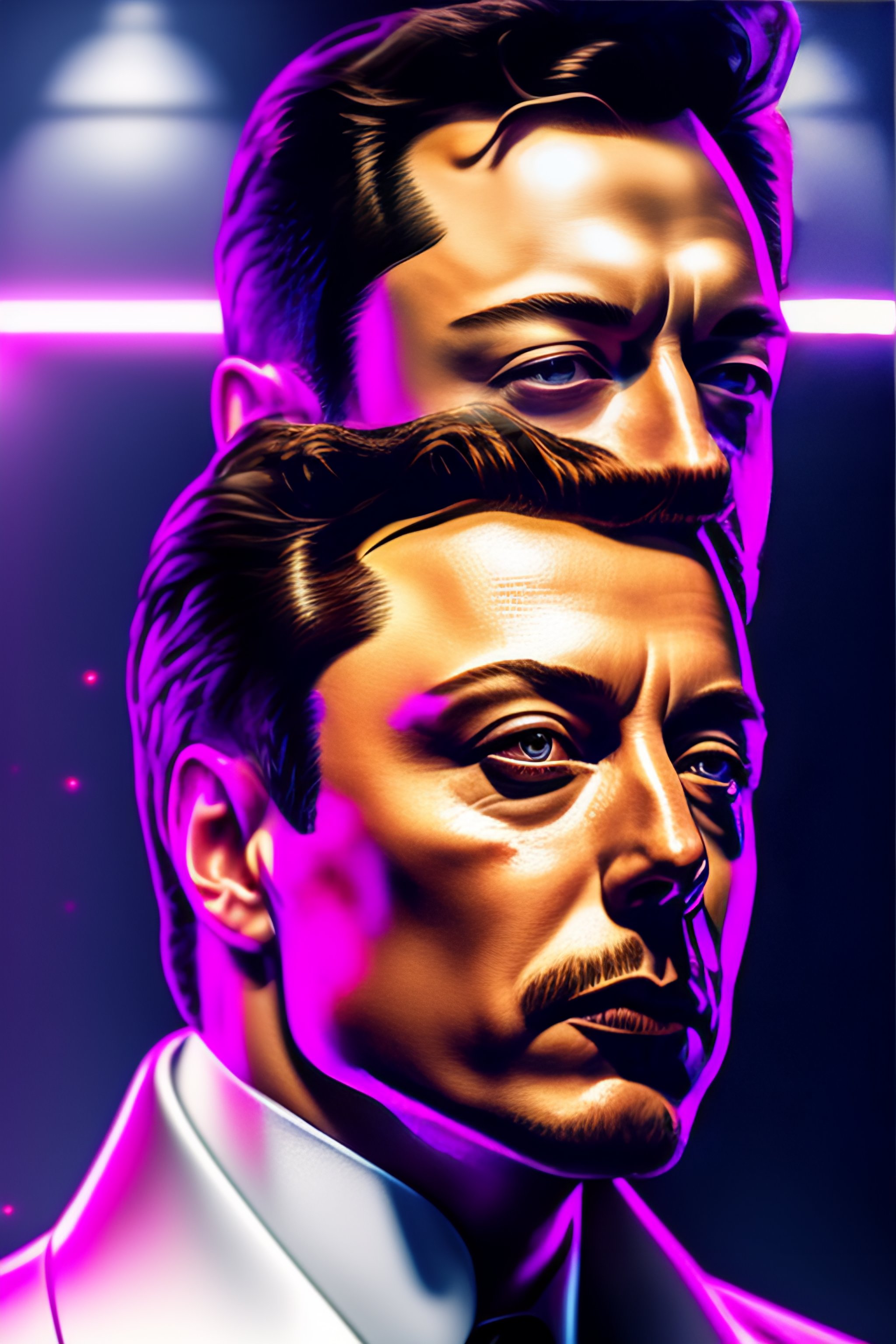 Portrait of elon musk as a super villain, villainic stare, looking at you, symmetric, digital illustration portrait design, detailed, cinematic lighting, wide angle action dynamic portrait