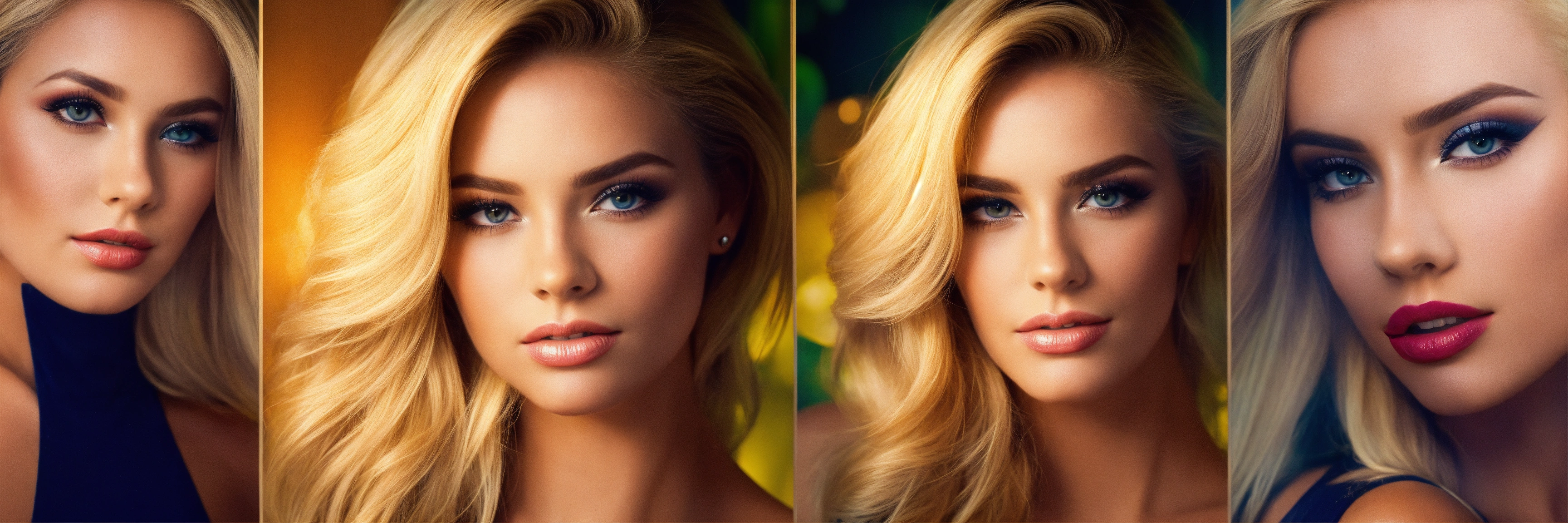 Three hot blonde faces with different vibrant makeup seeking companionship in a luxurious hotel room