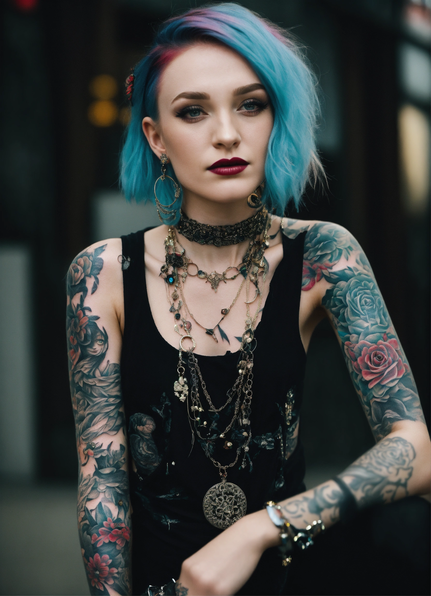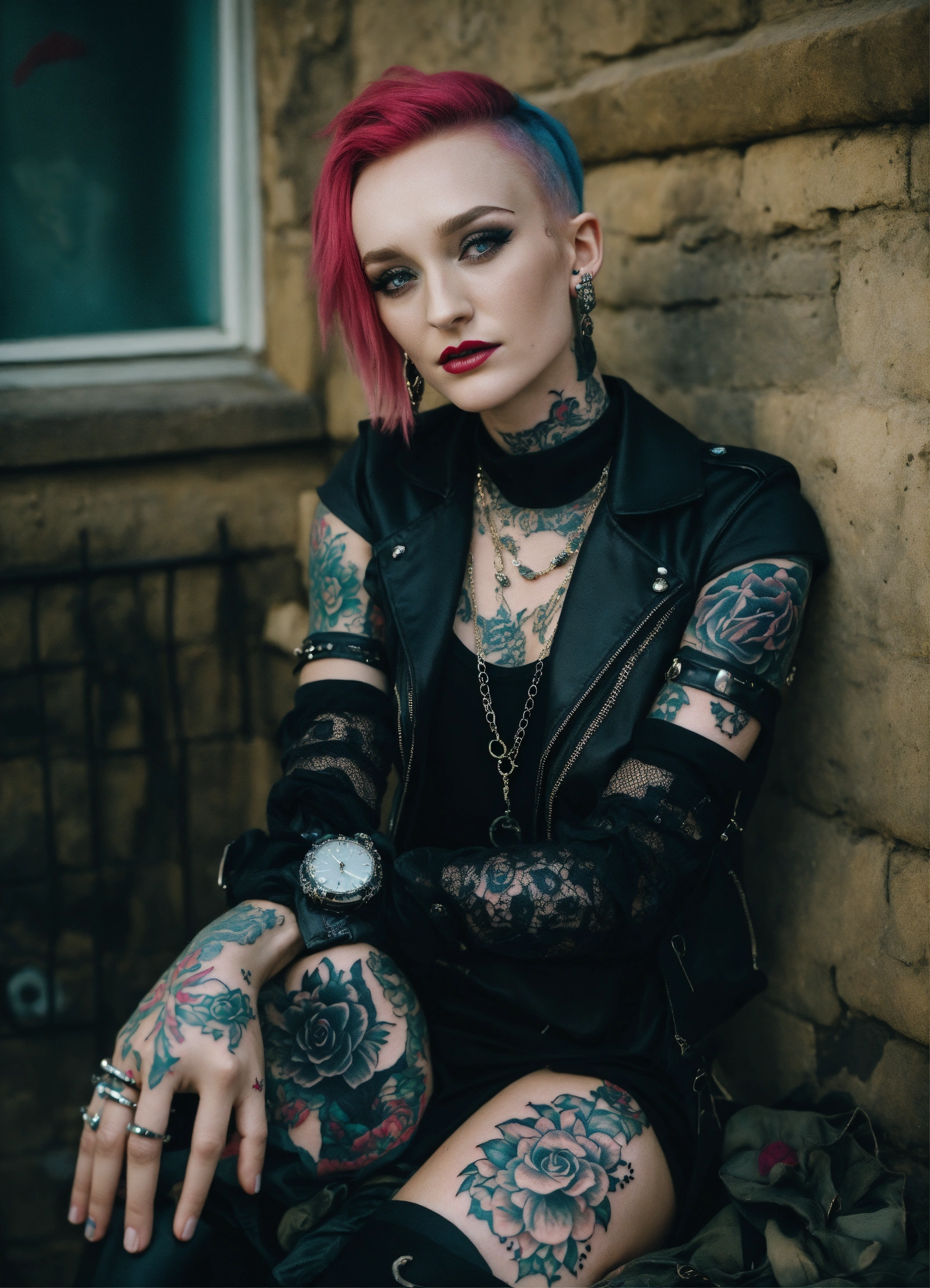 Soairse ronan goth punk multiple piercing tattoos sleeves full body